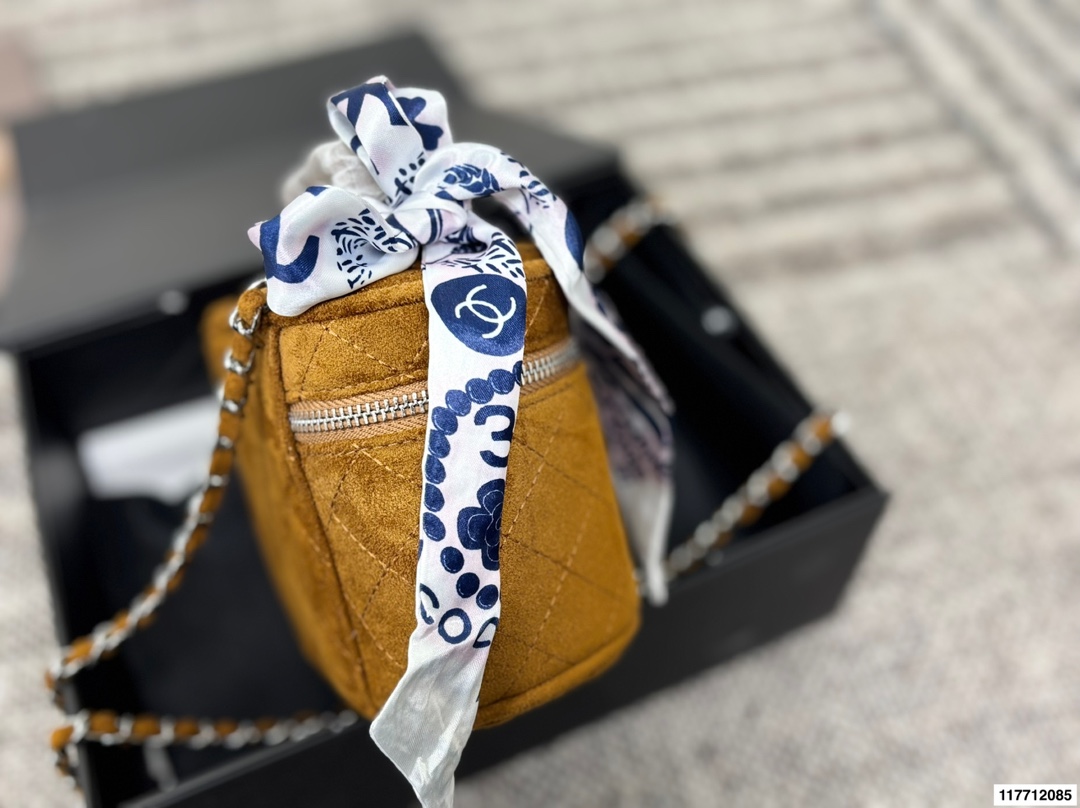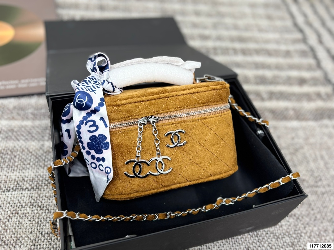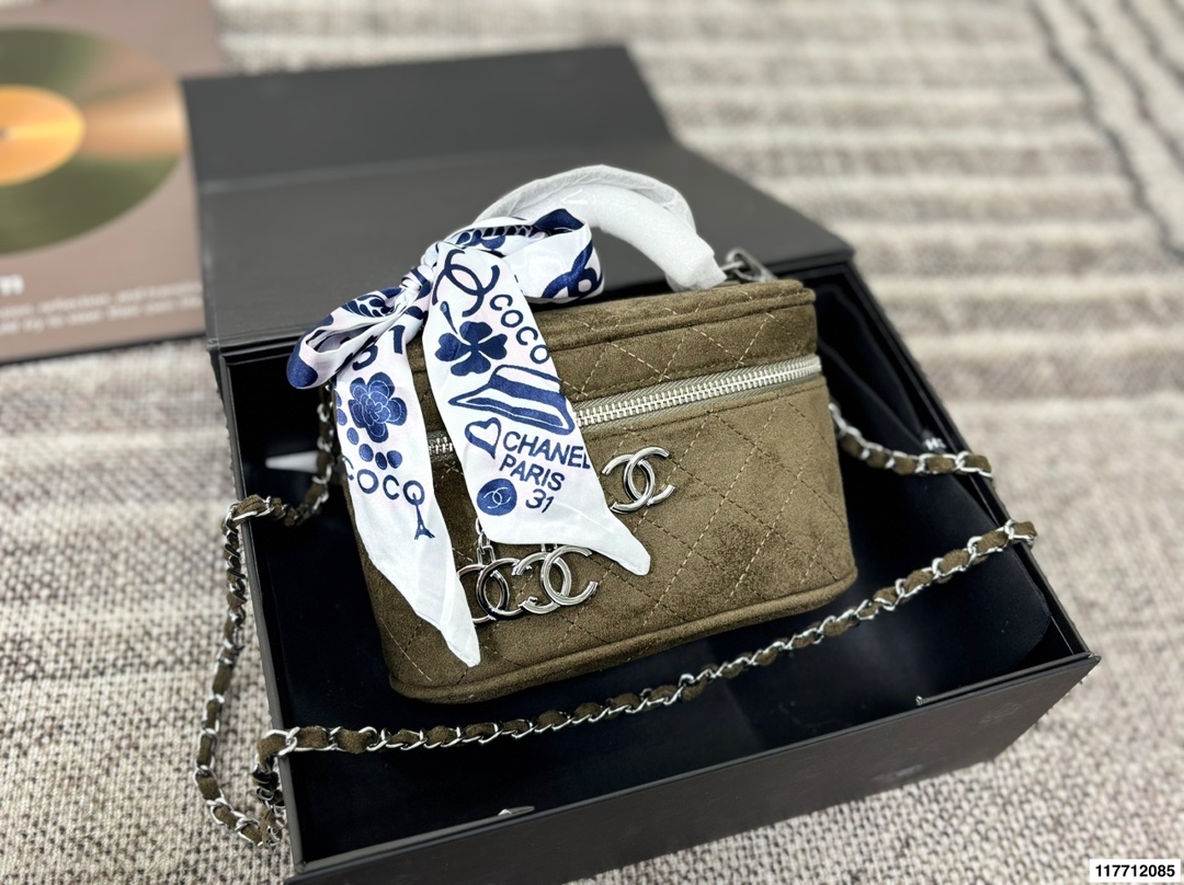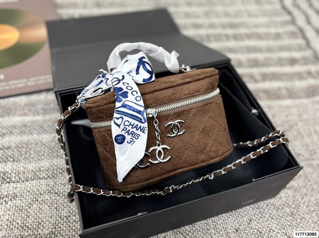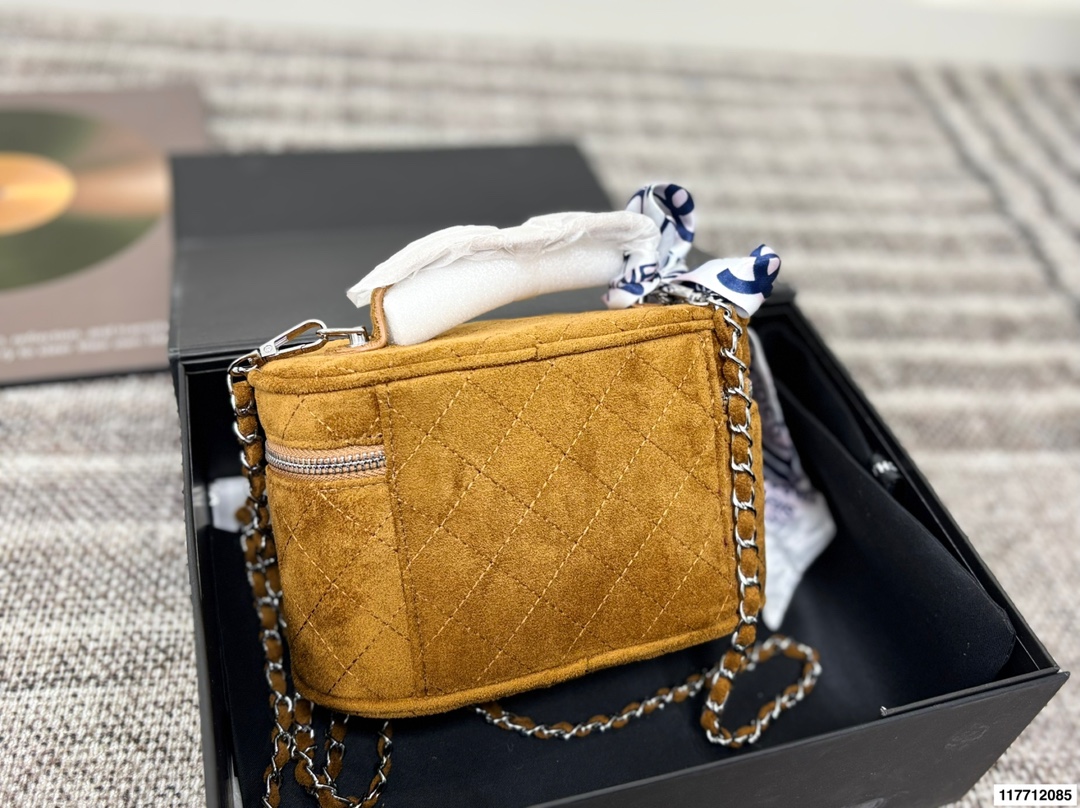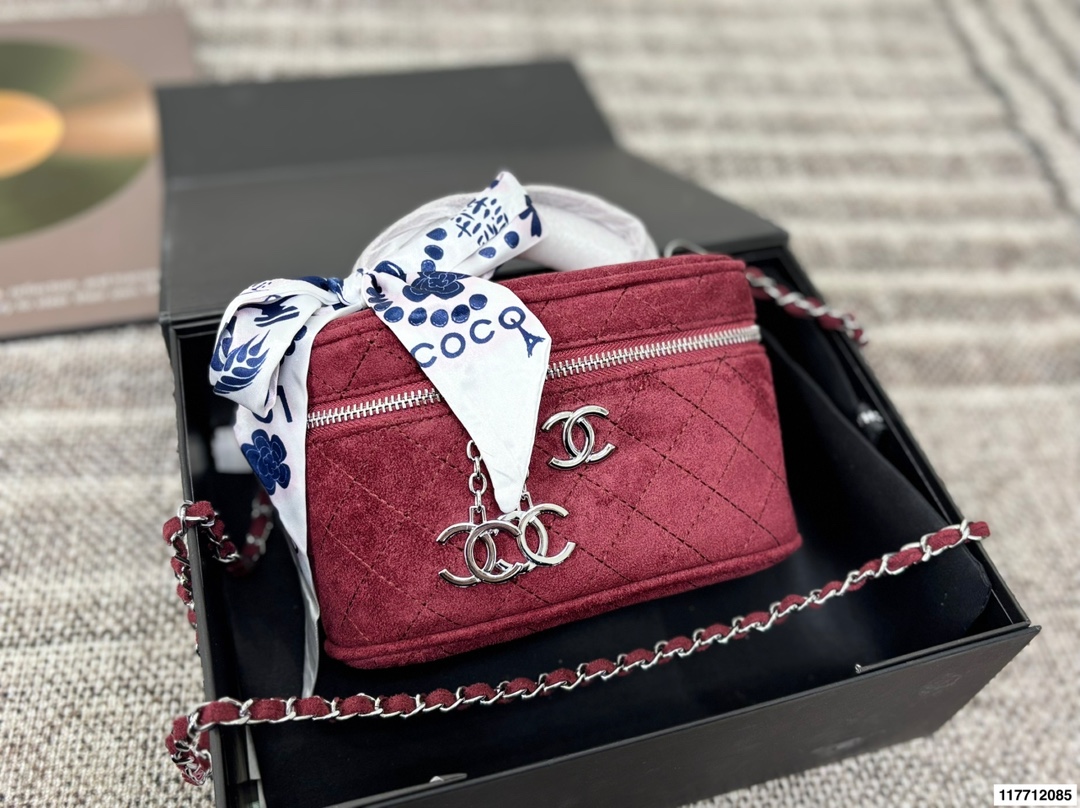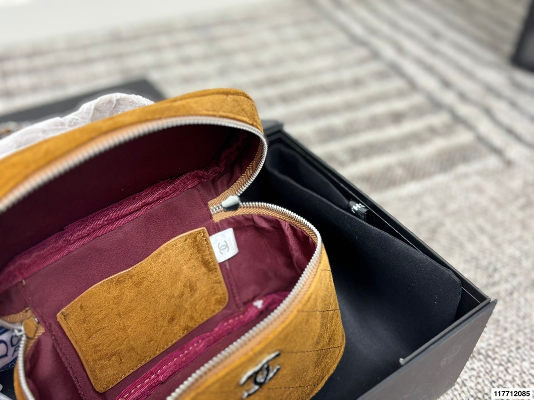 Chanel 25C Suede Vanity Case Diamond Quilted Suede Top Handle Mini Cosmetic Bag