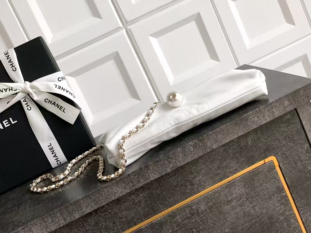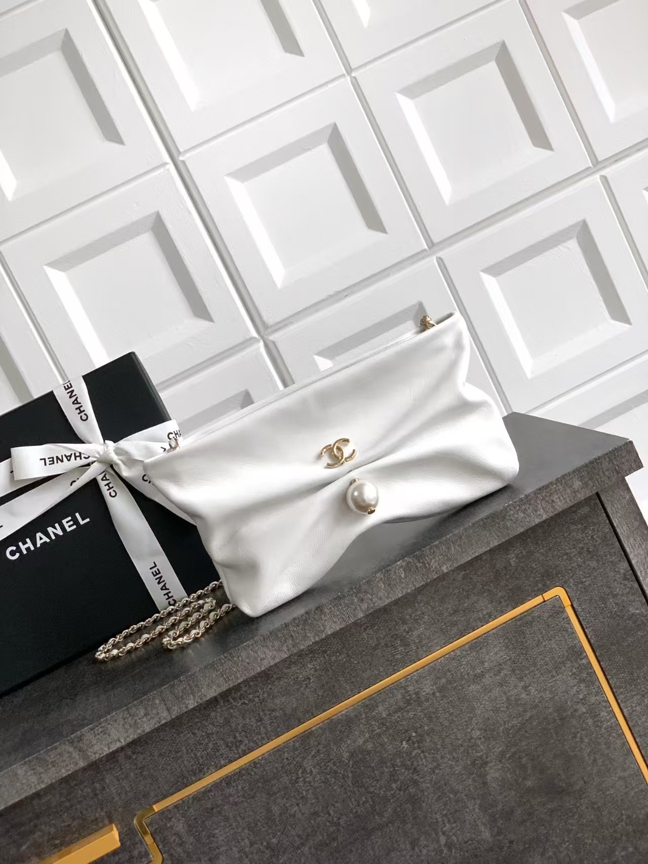 Chanel Pearl Ruched Clutch Lambskin Pearl Accent Chain Bag /10A