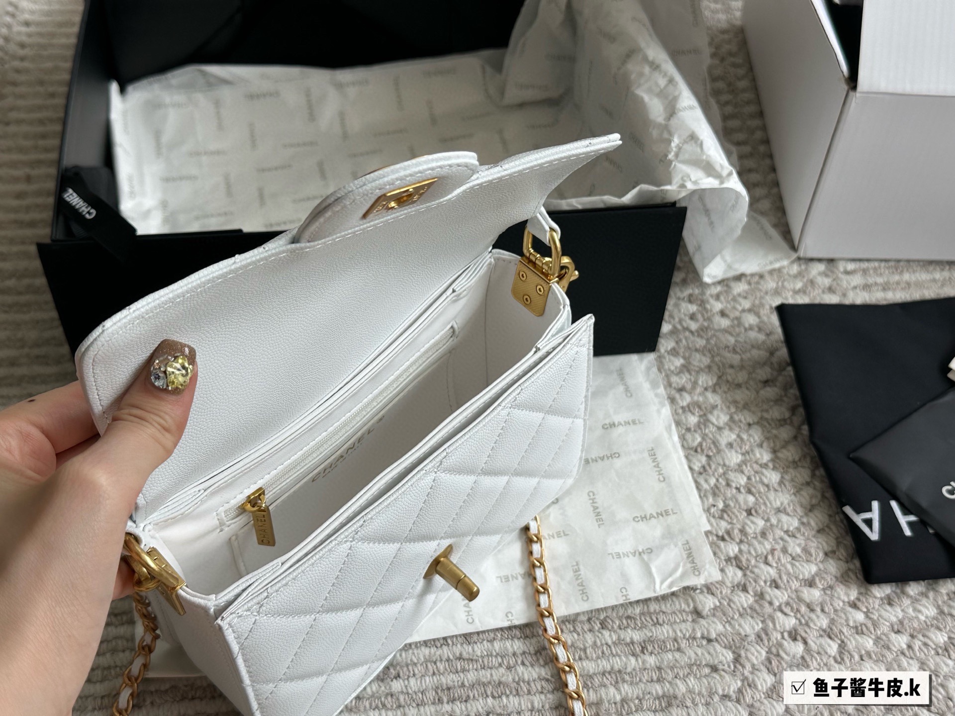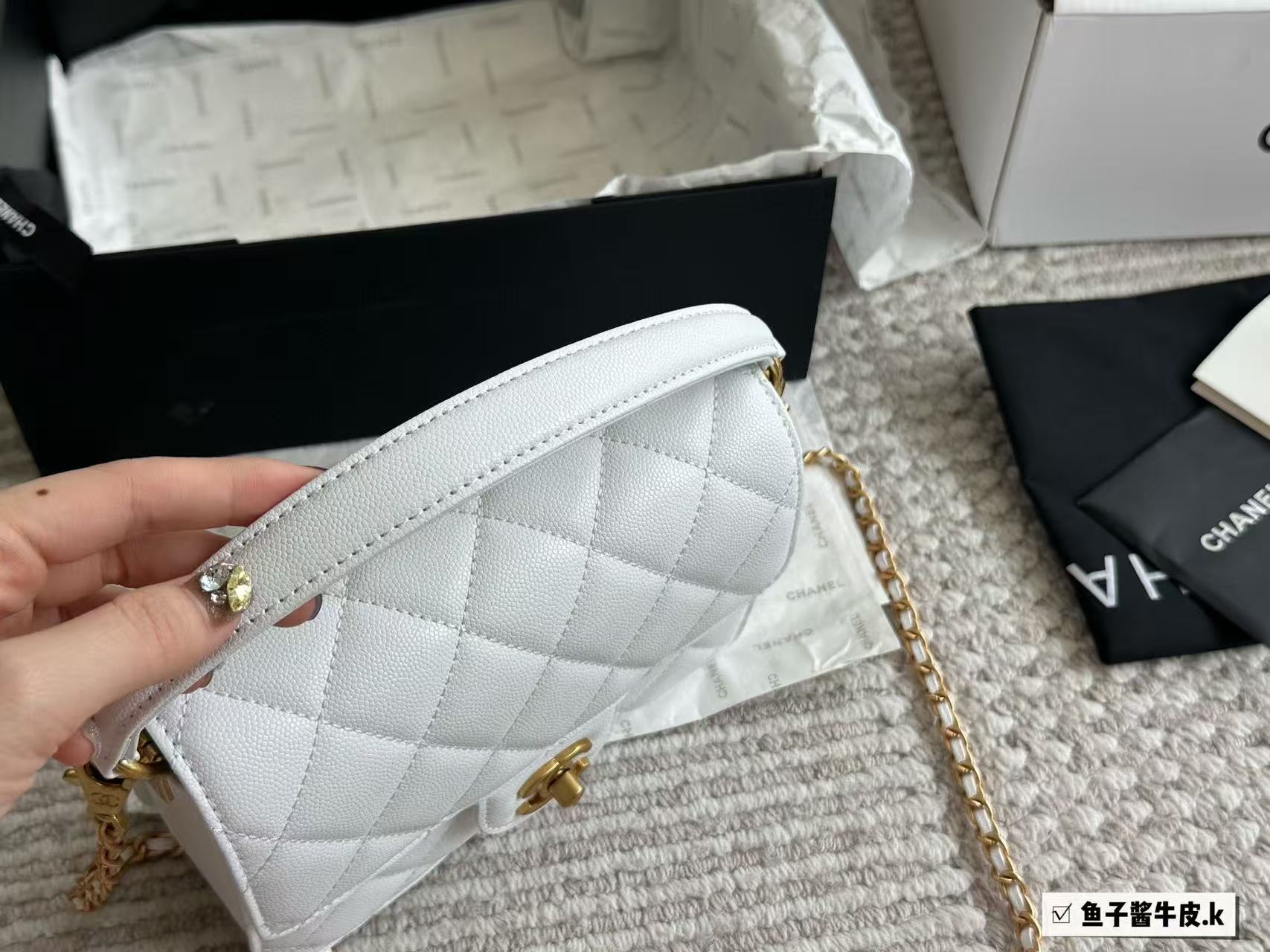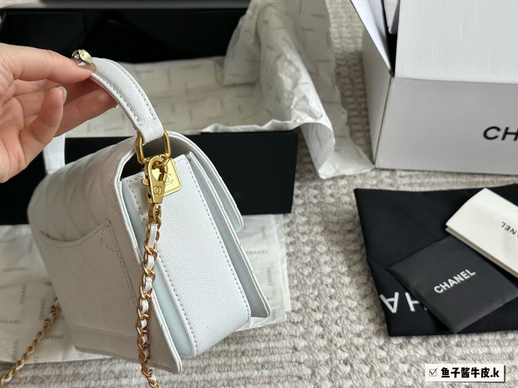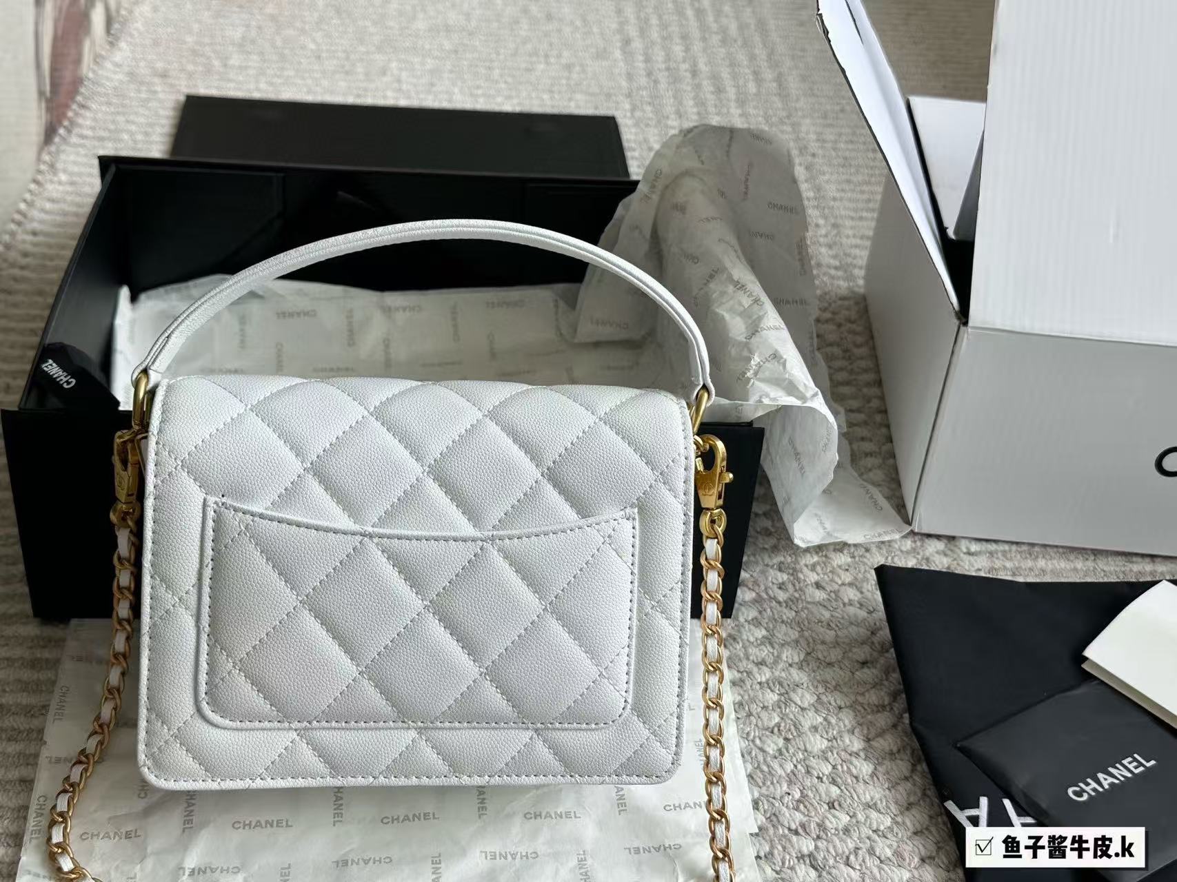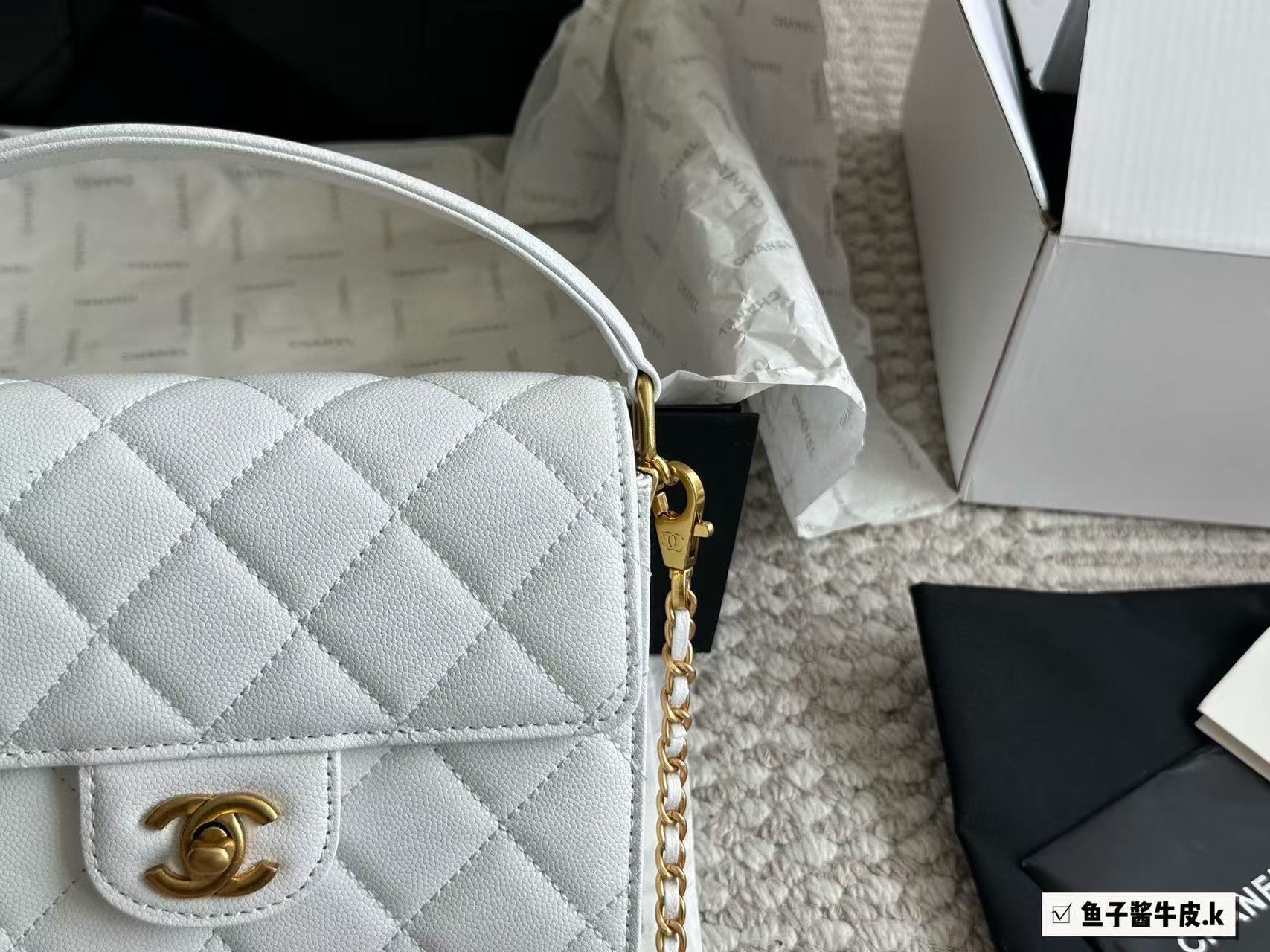 Chanel White Caviar Leather Trend CC Top Handle Bag