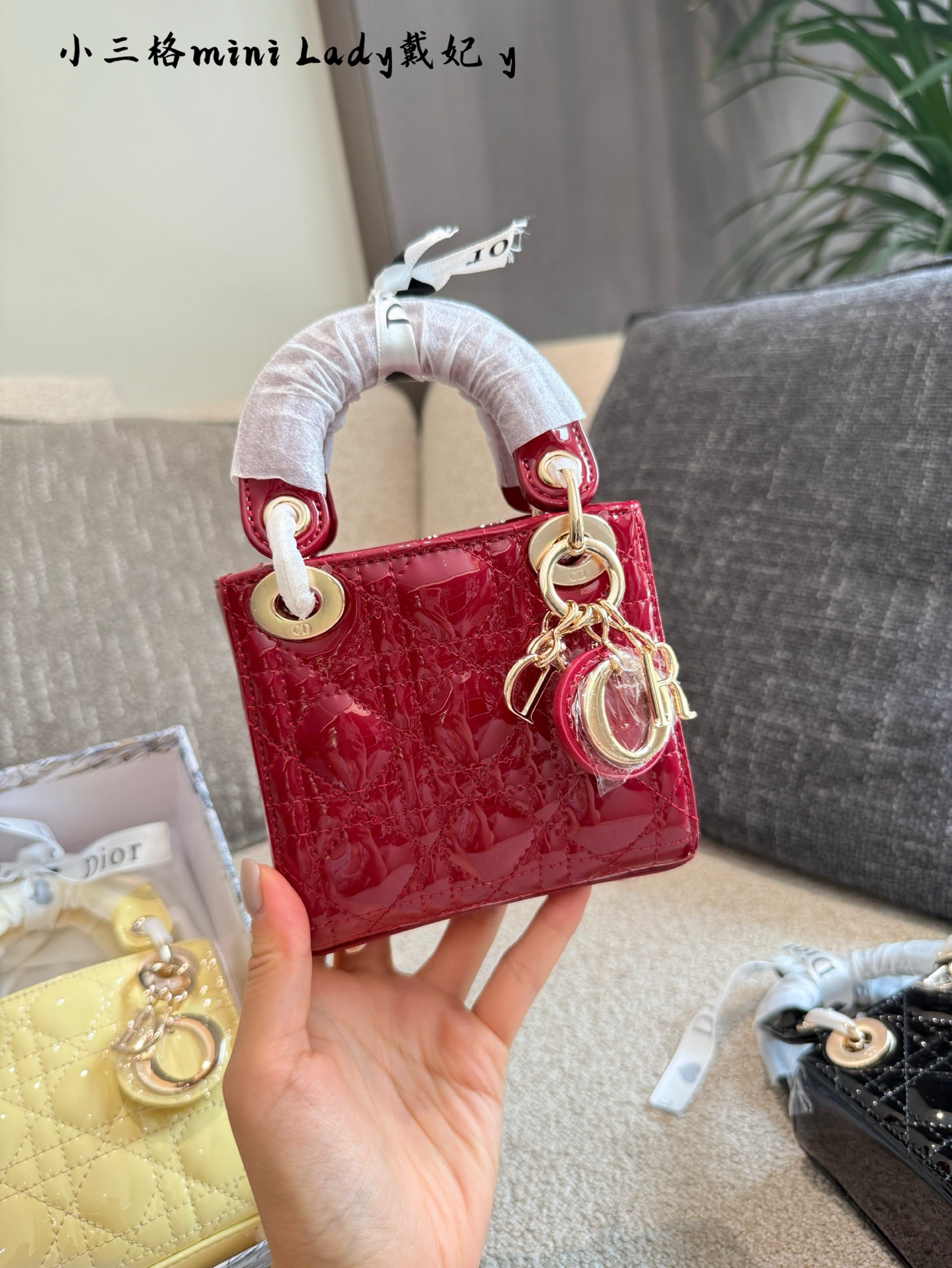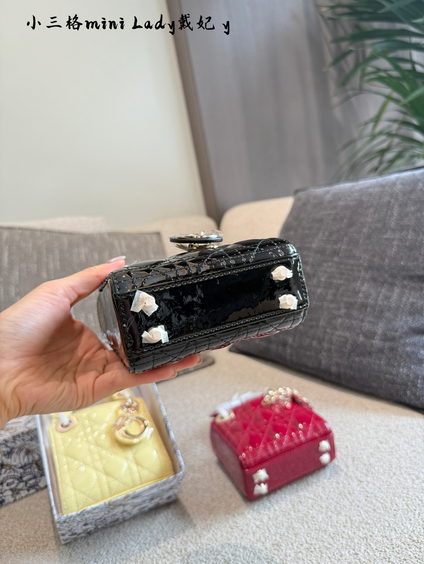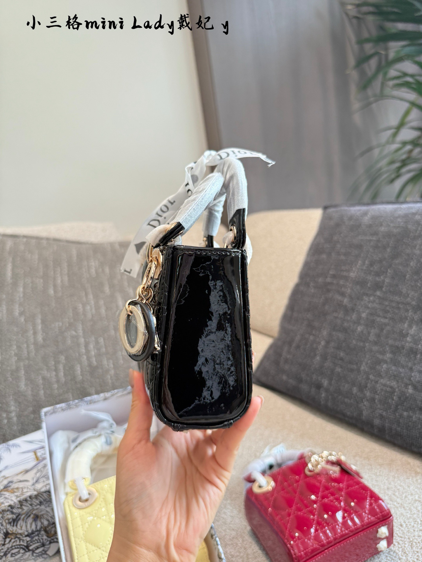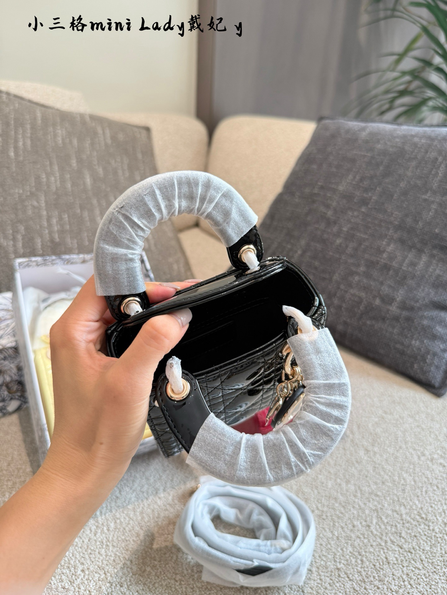 Dior Sup Mini Lady Dior Lacquered Patent Leather Cannage Gold Hardware Handle Bag