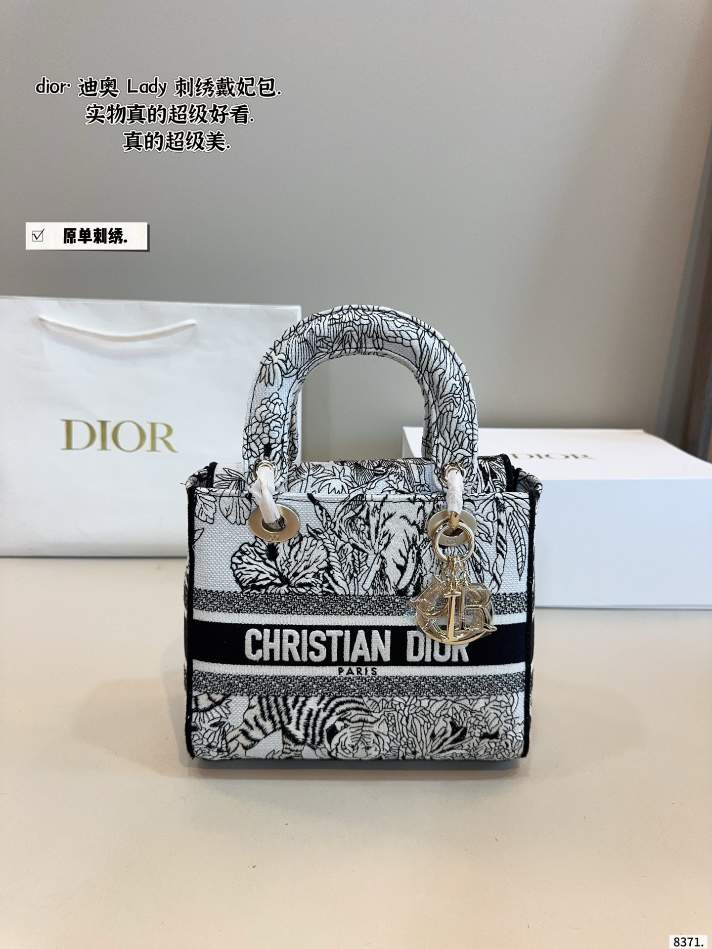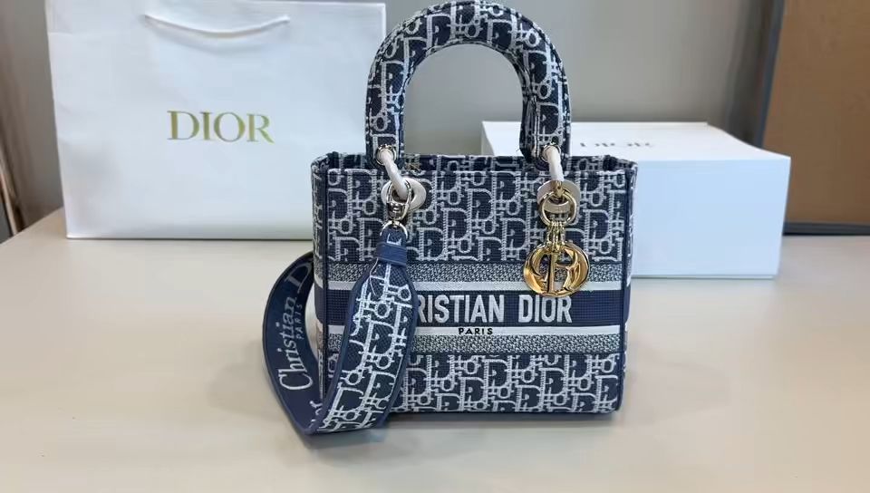 Dior Lady Dior Oblique Jacquard Embroidery Handle Bag/ Collection