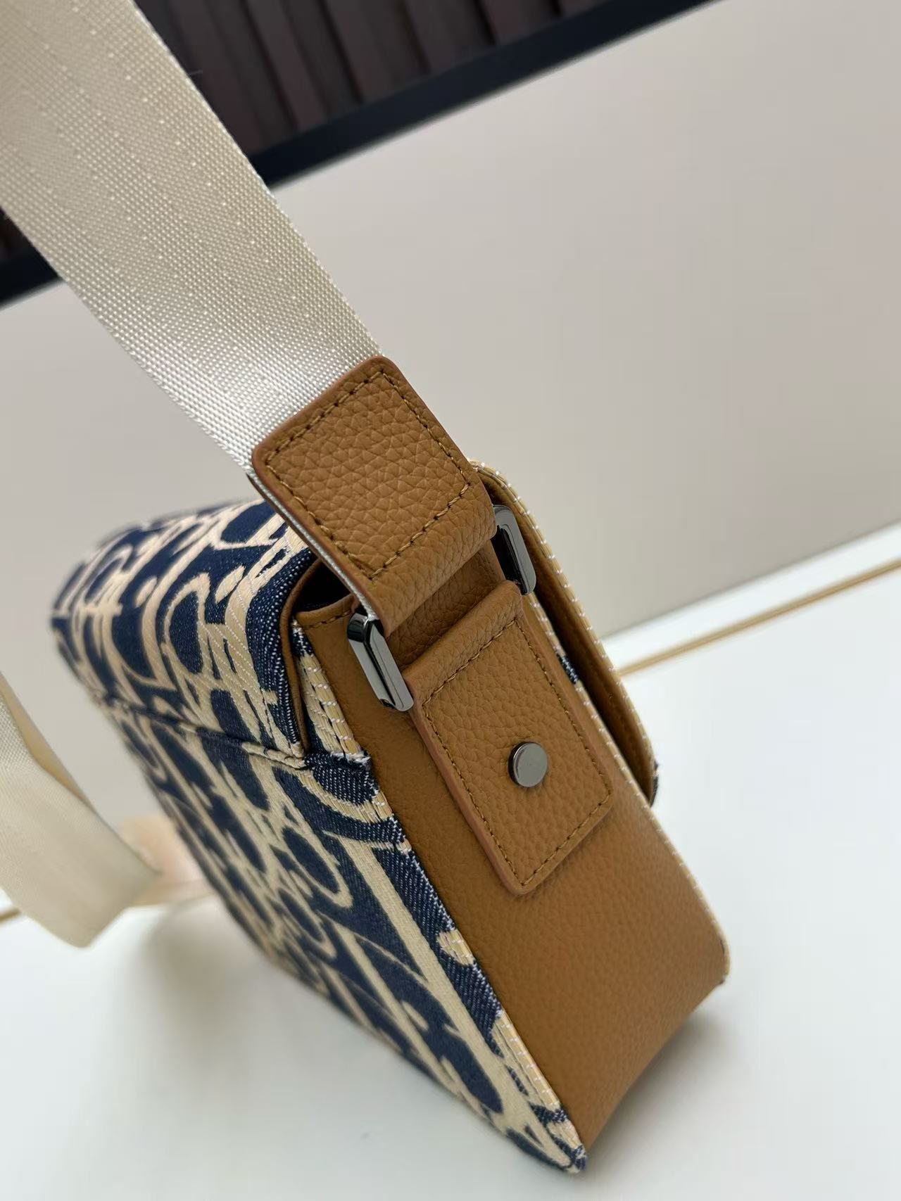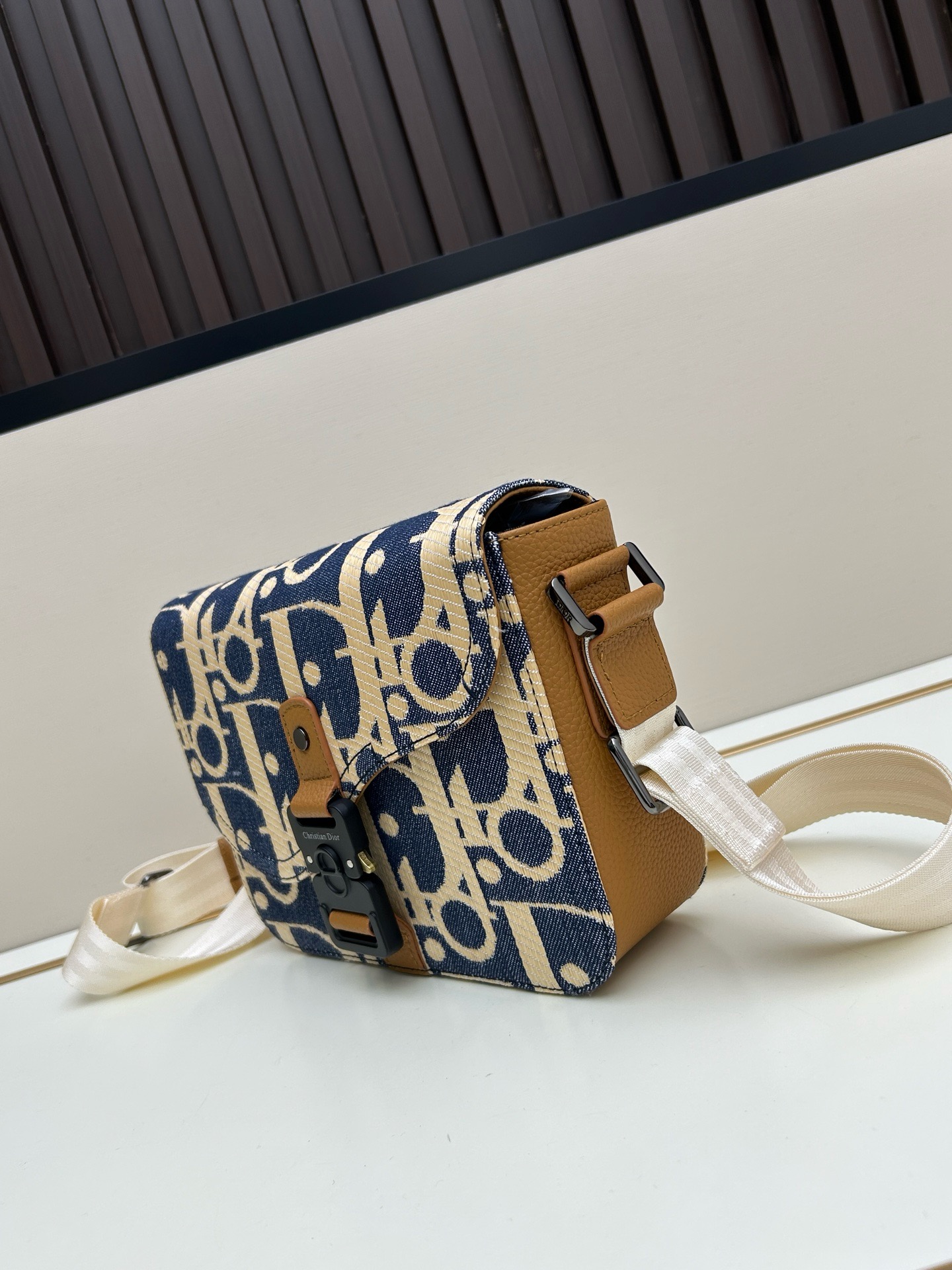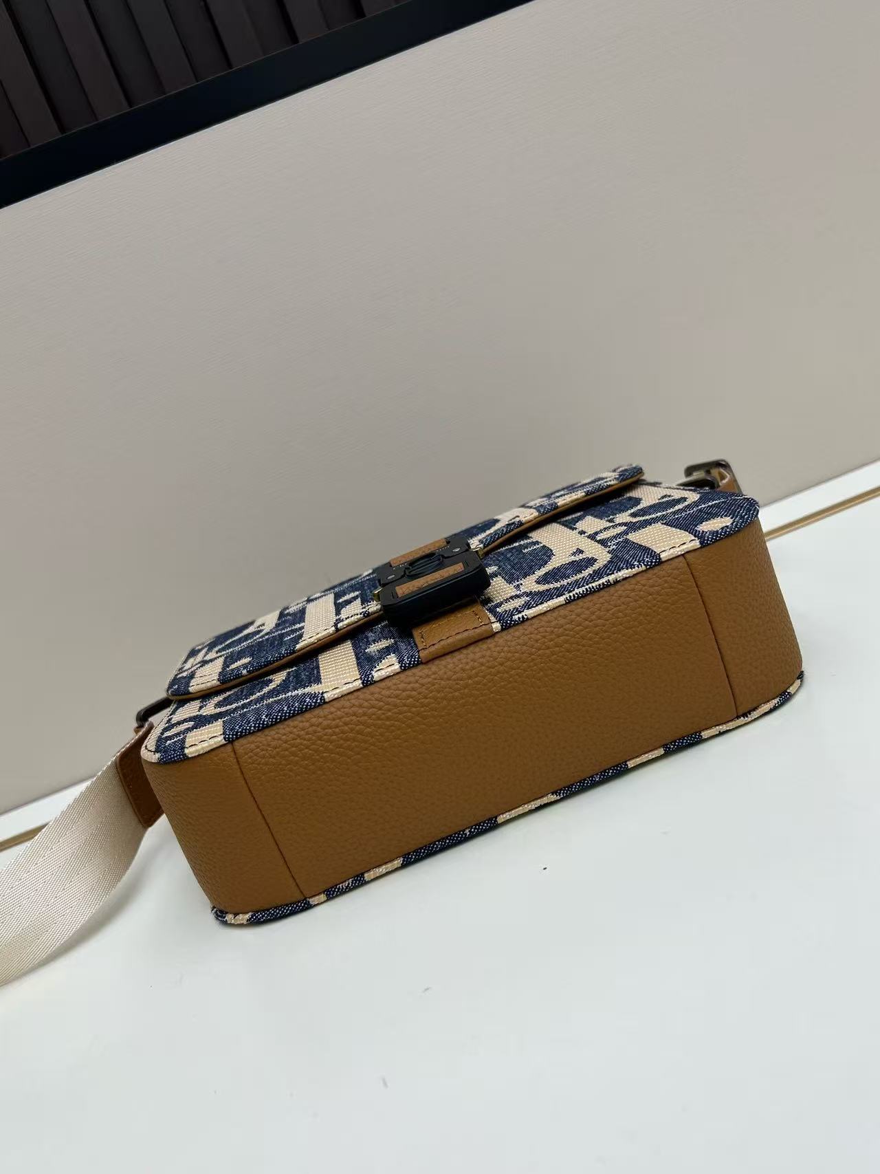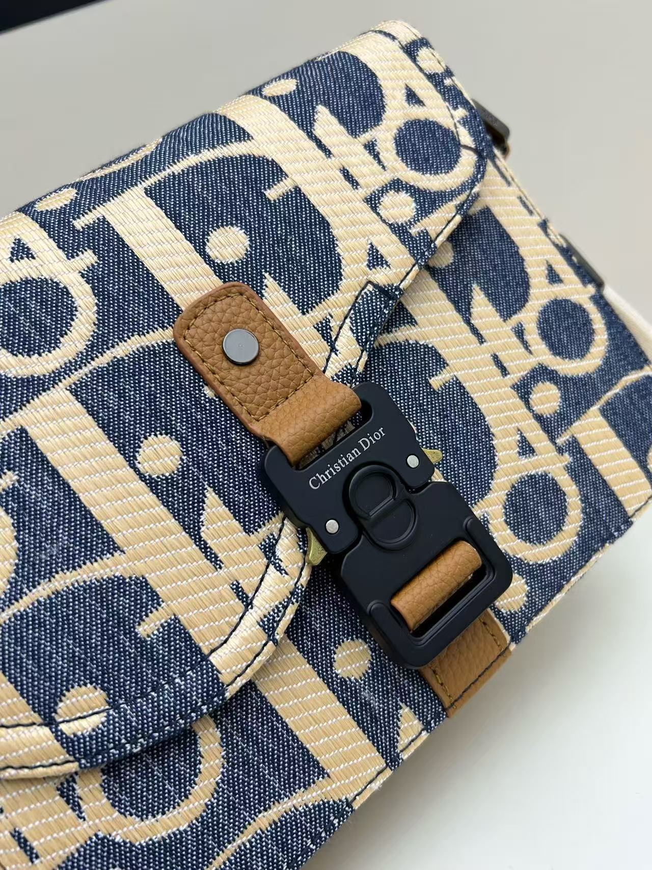 Dior Saddle Denim Blue Oblique Jacquard Leather Buckle Messenger Bag