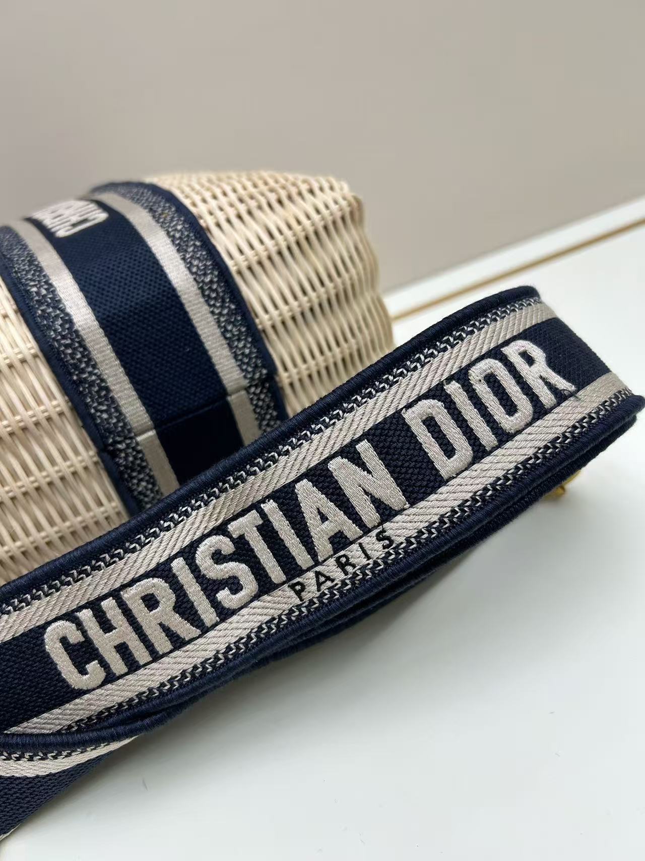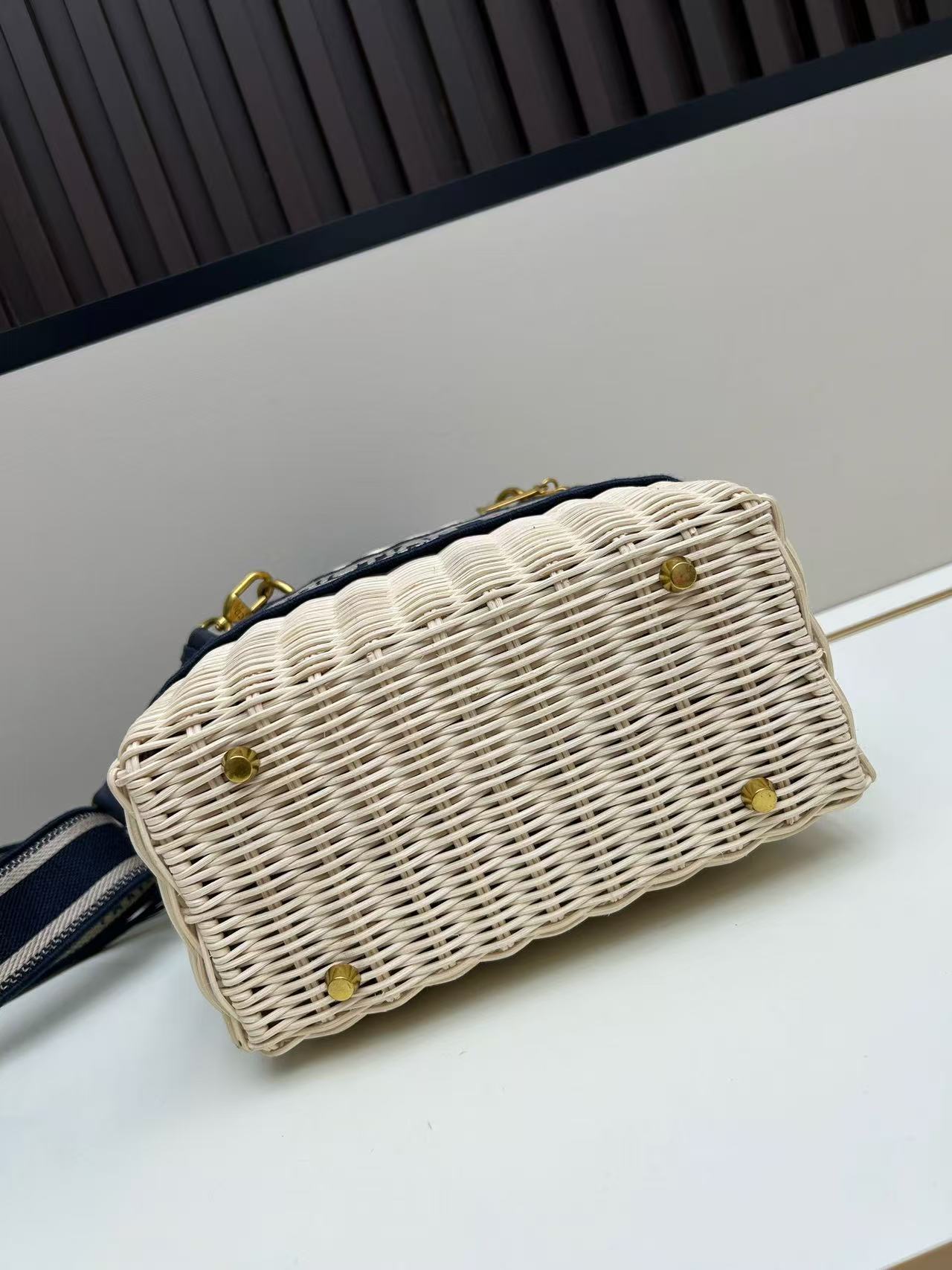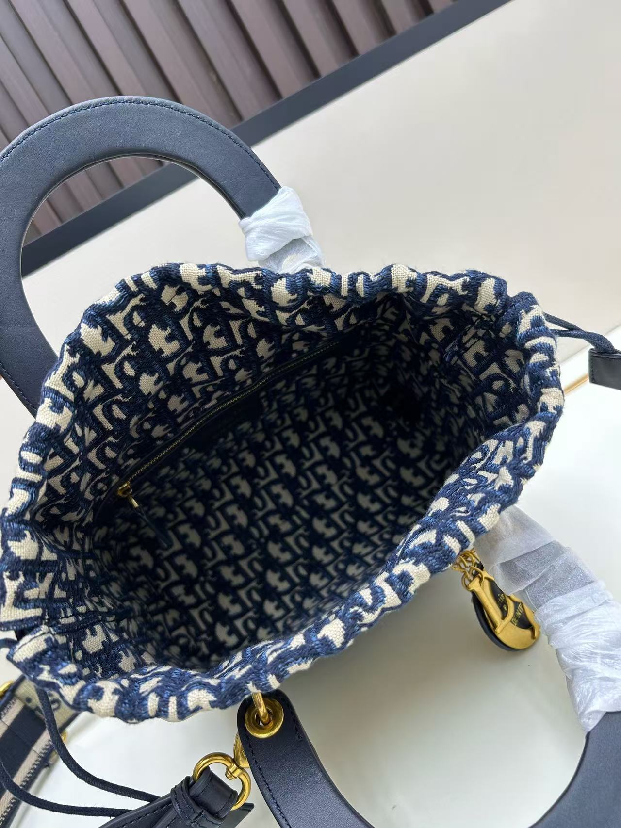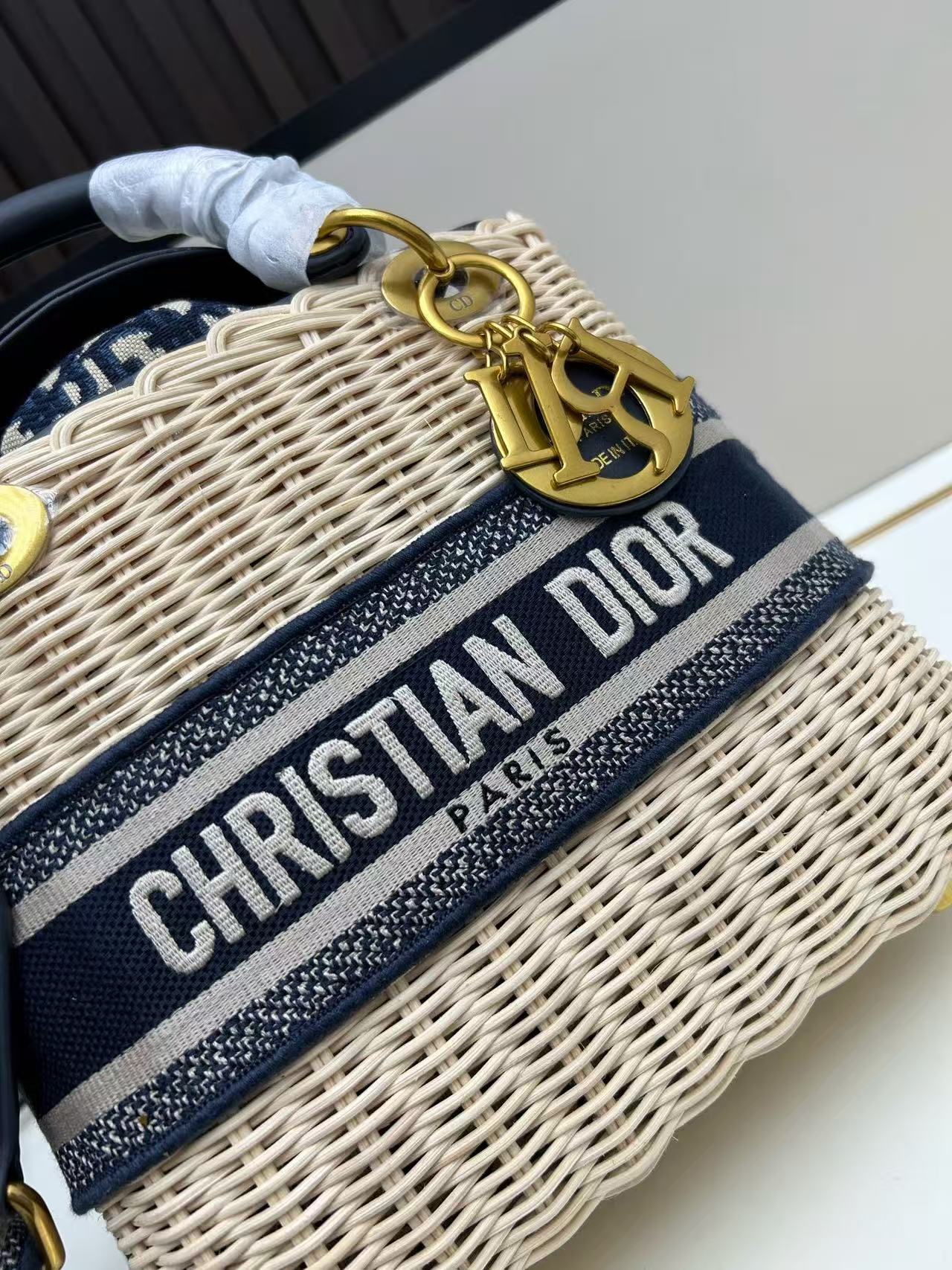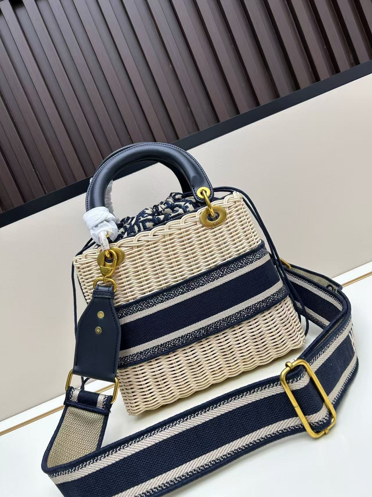 Dior Medium Lady Dior Oblique Wicker With Leather Top Handles Bag