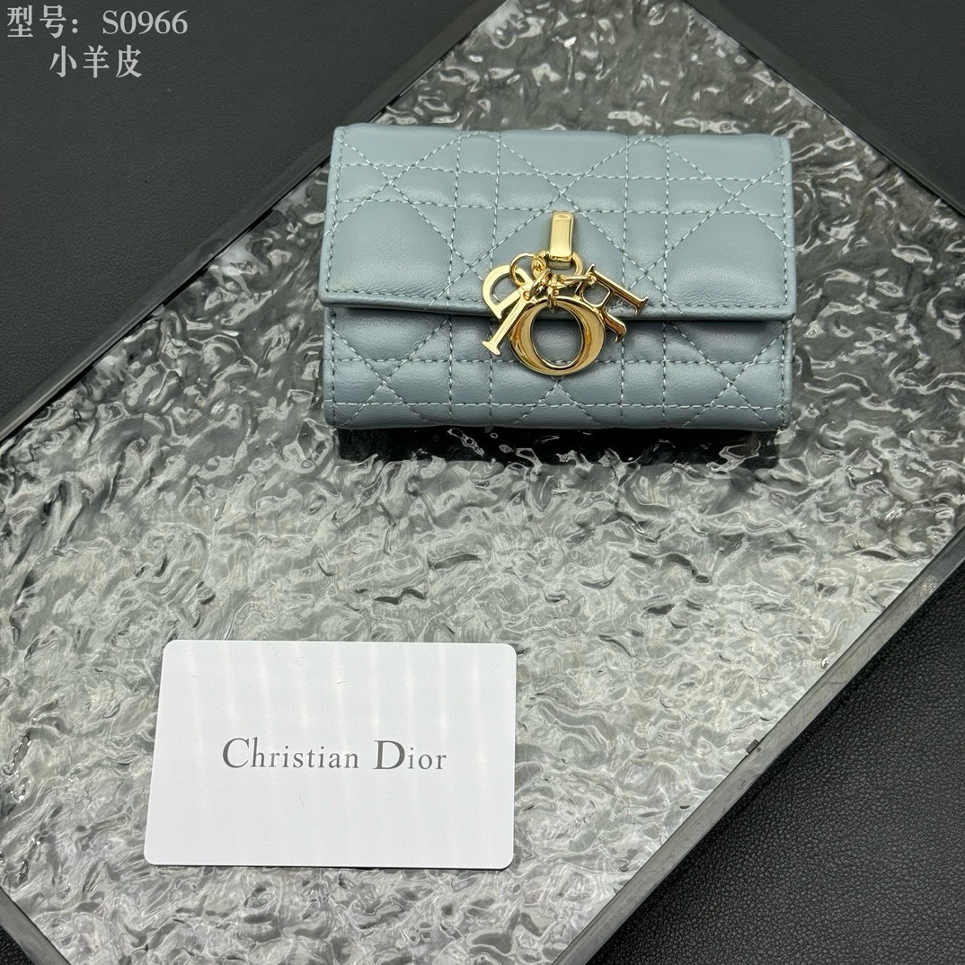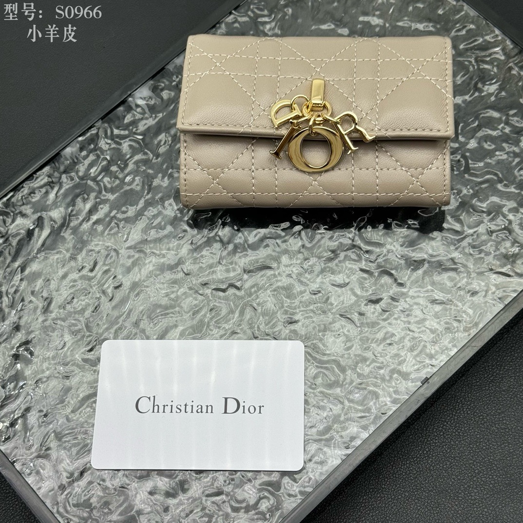 Dior Lady Dior Lambskin Cannage Gold D Charm Bifold Wallet