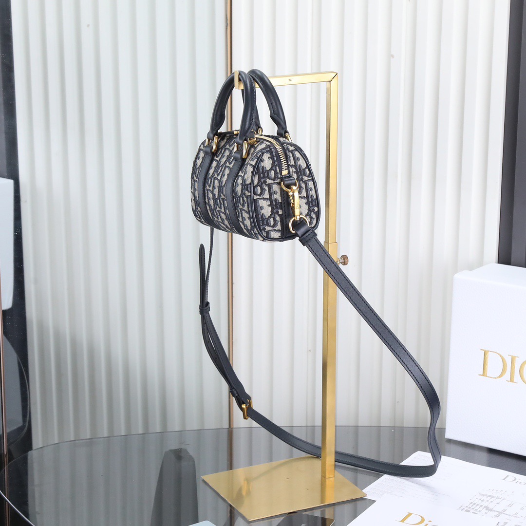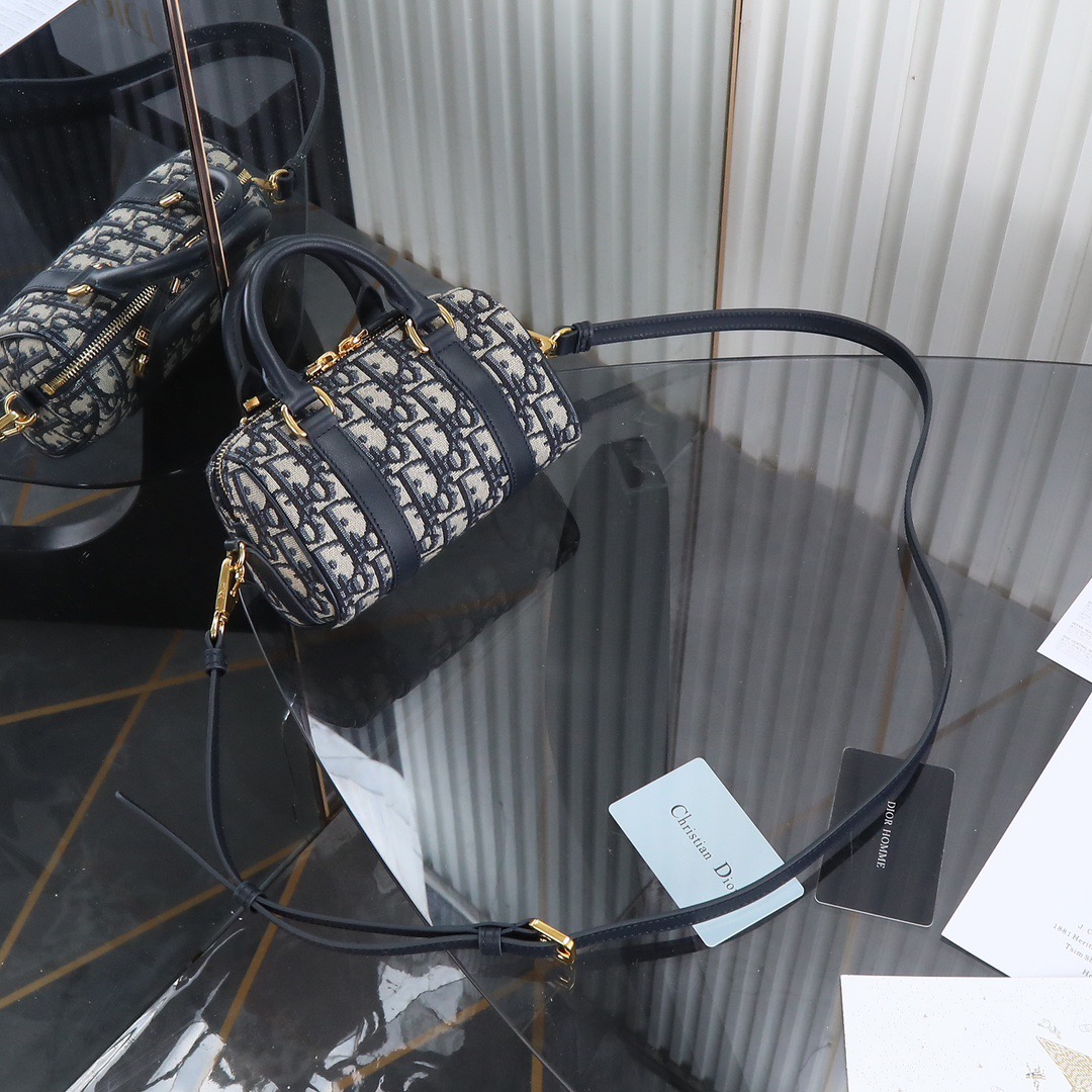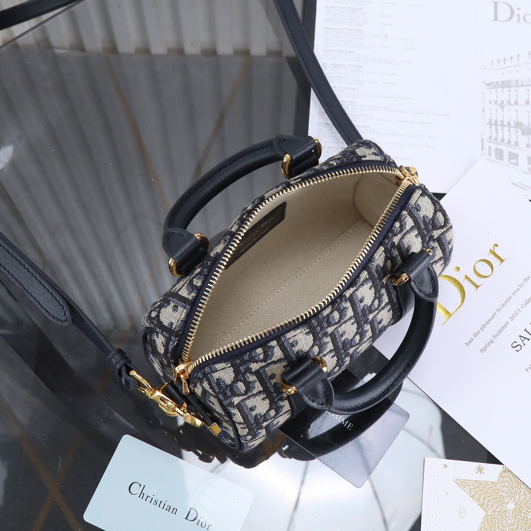 Dior Groove Navy Oblique Jacquard Embroidery Mini Boston Bag