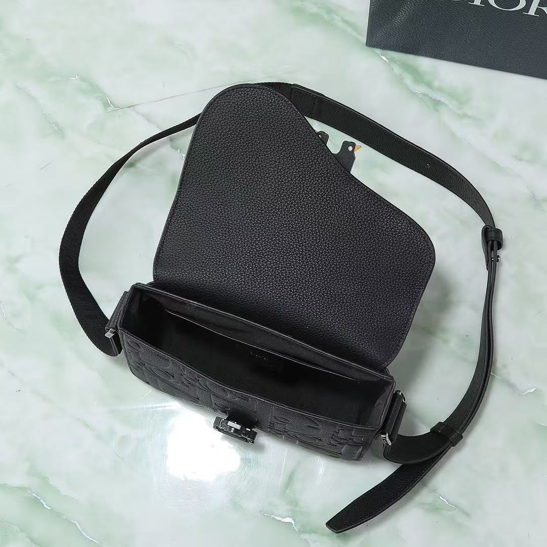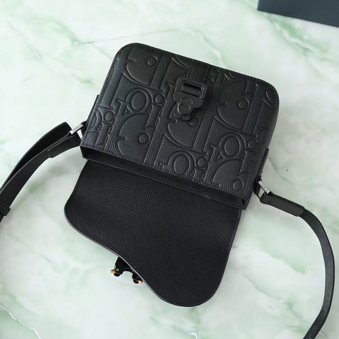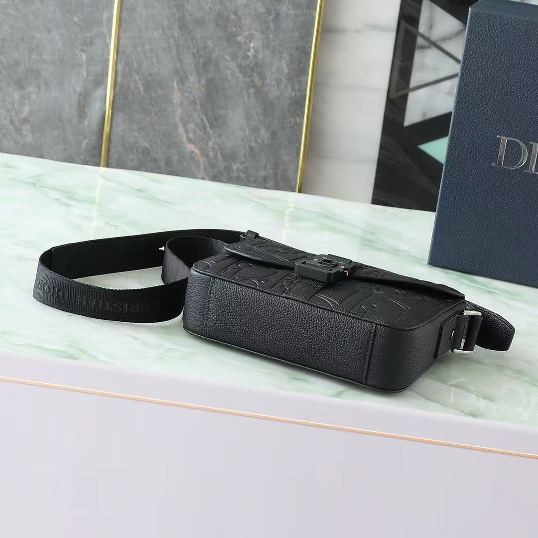 Dior Black Oblique Gravity Embossed Leather with Industrial CD Buckle Crossbody Bags