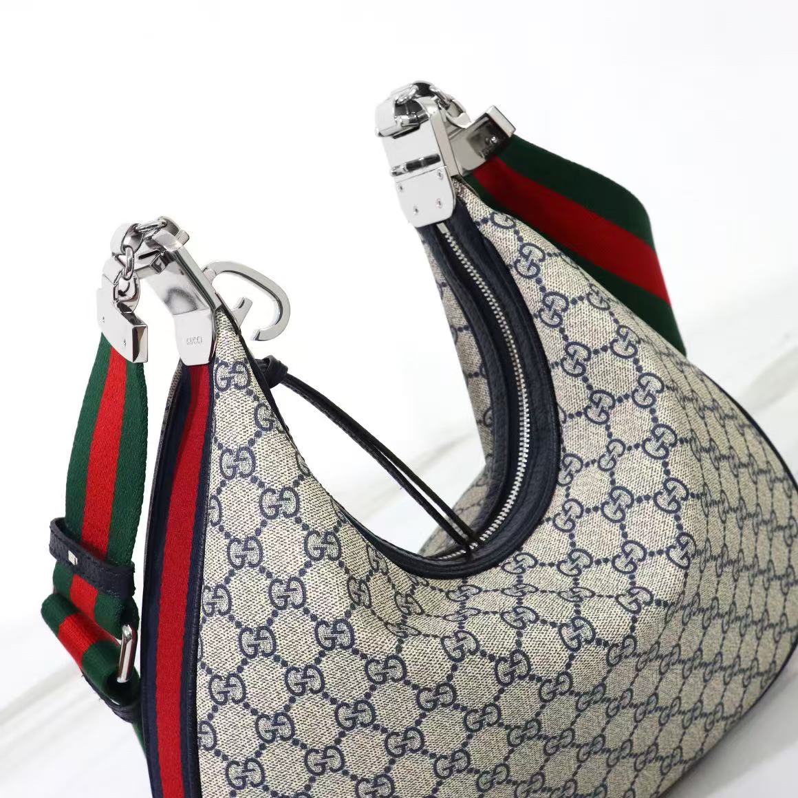 GUCCI Ophidia Monogram Middle Web Bucket Bag