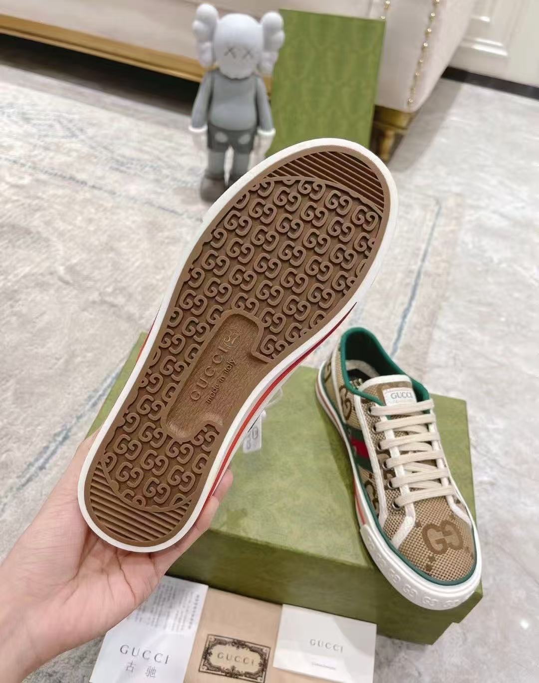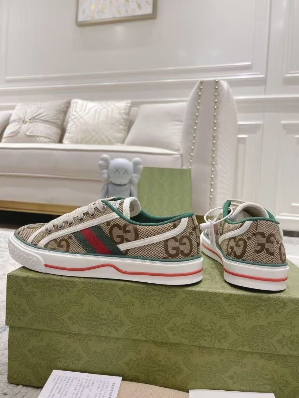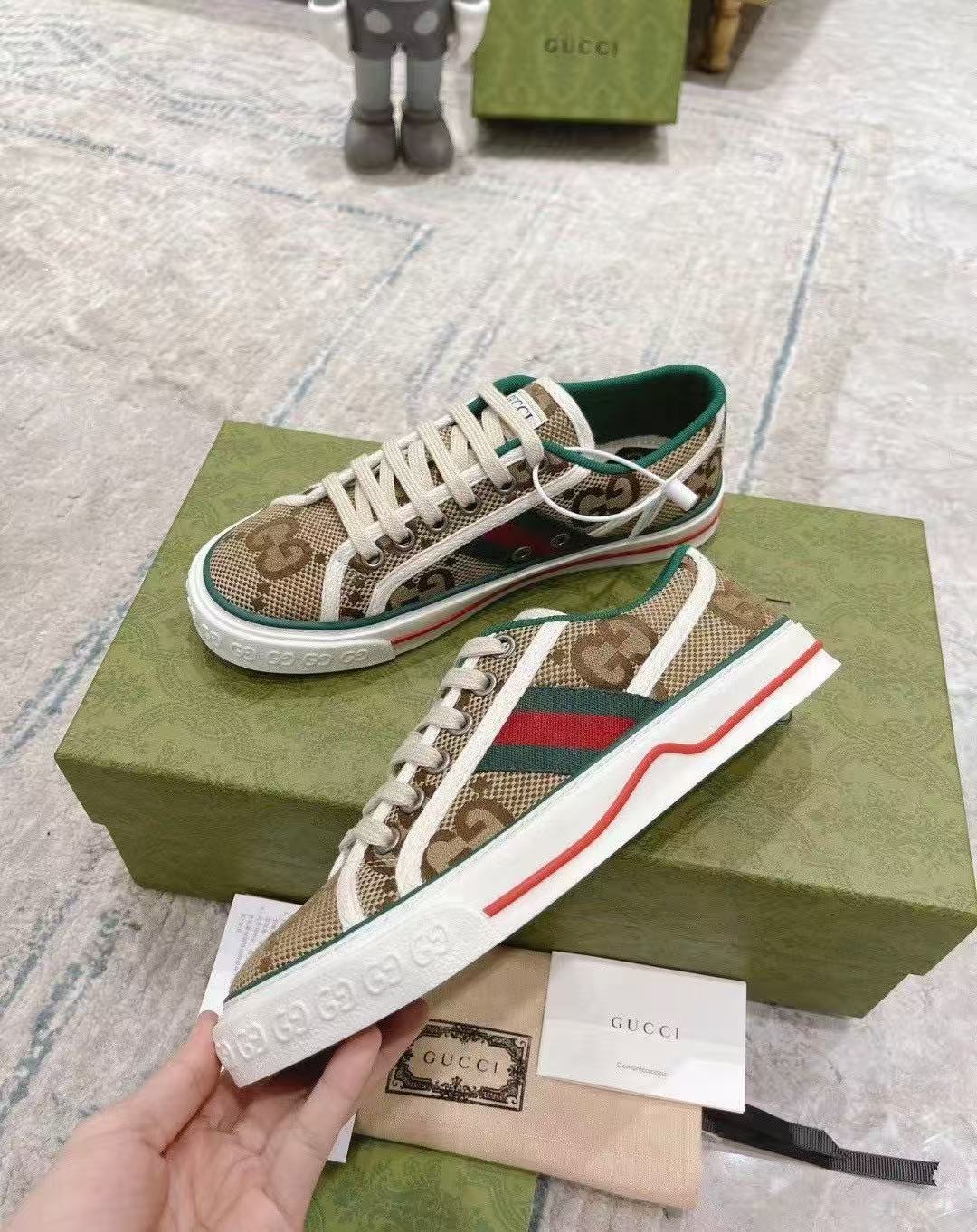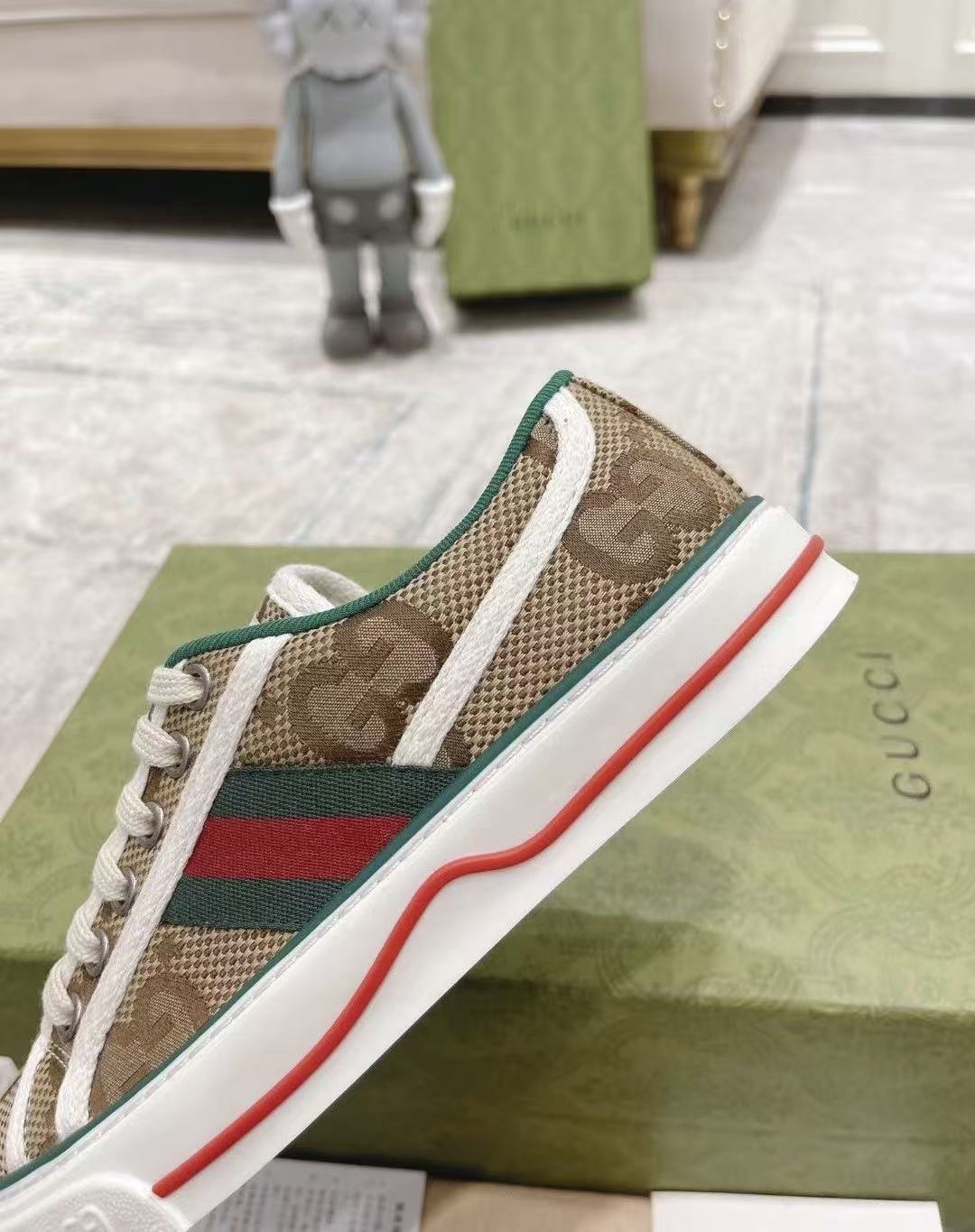 Gucci Tennis 1997 Beige GG Monogram Web Stripe Low Top Canvas Sneakers