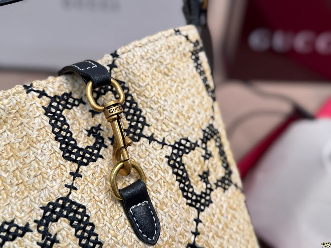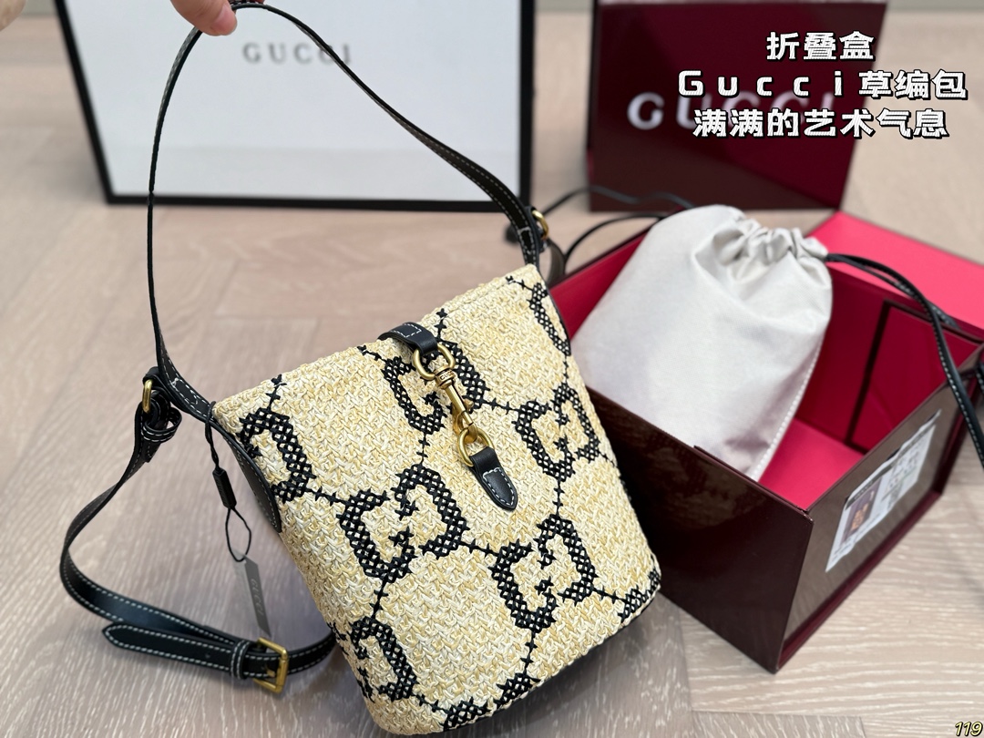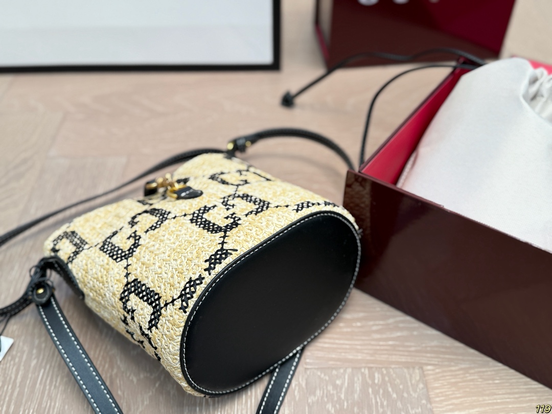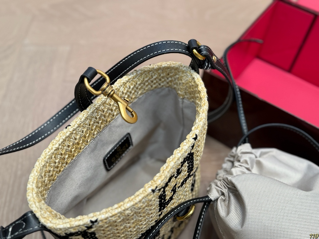 Gucci GG Jacquard Vintage Woven Bucket Vacation Style Shoulder Bag