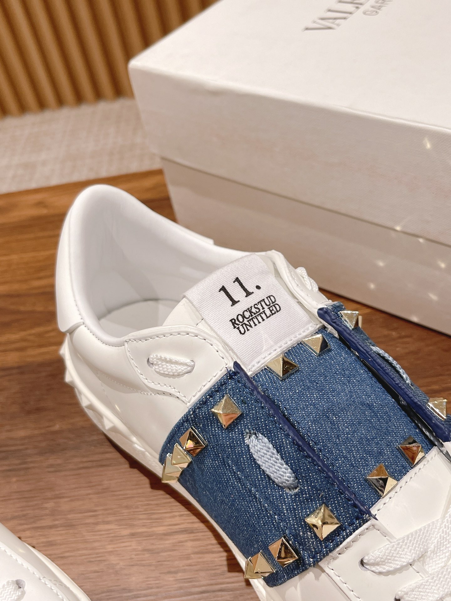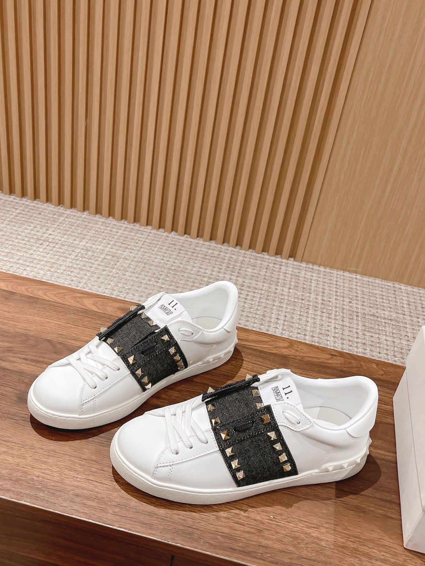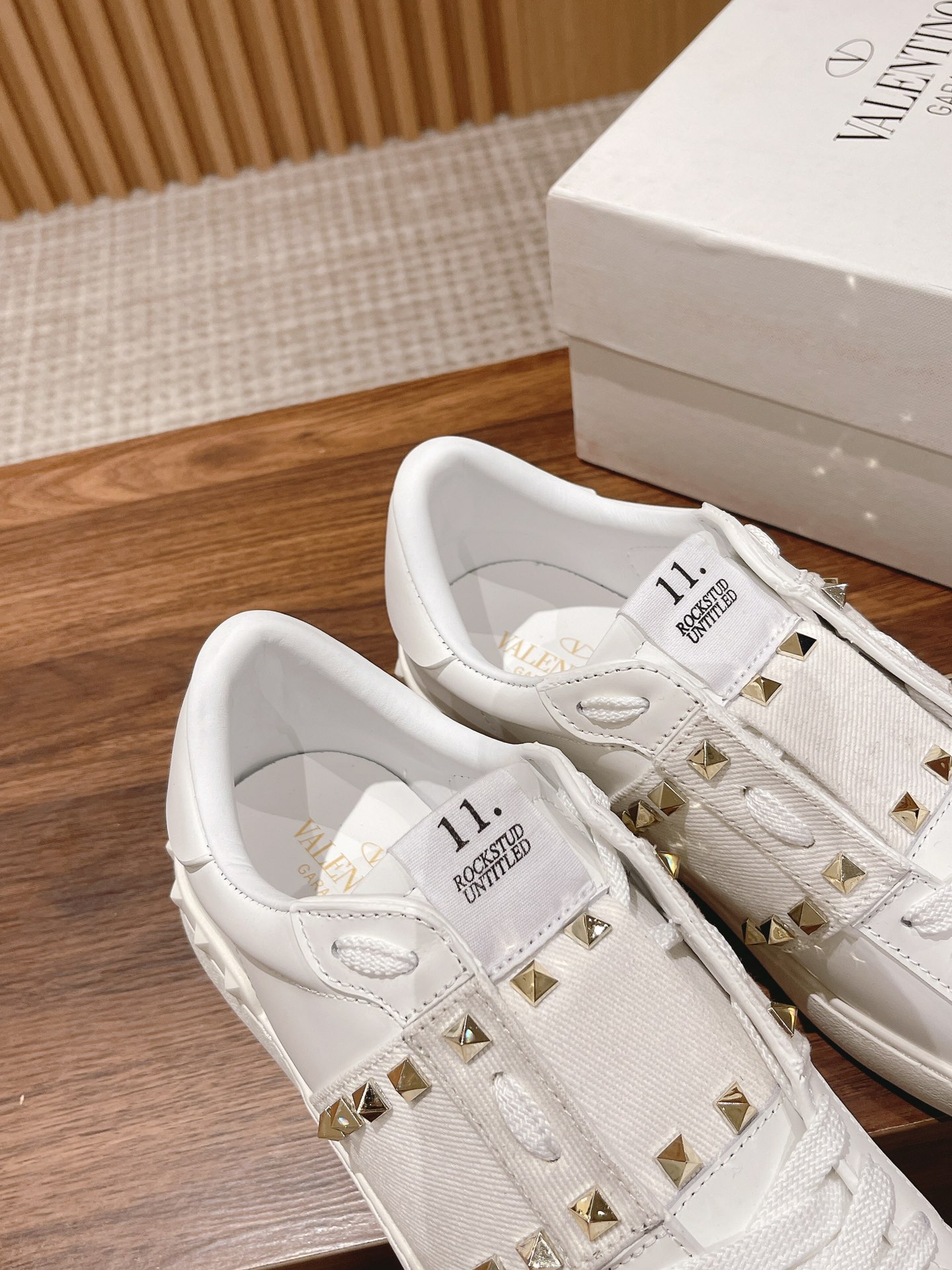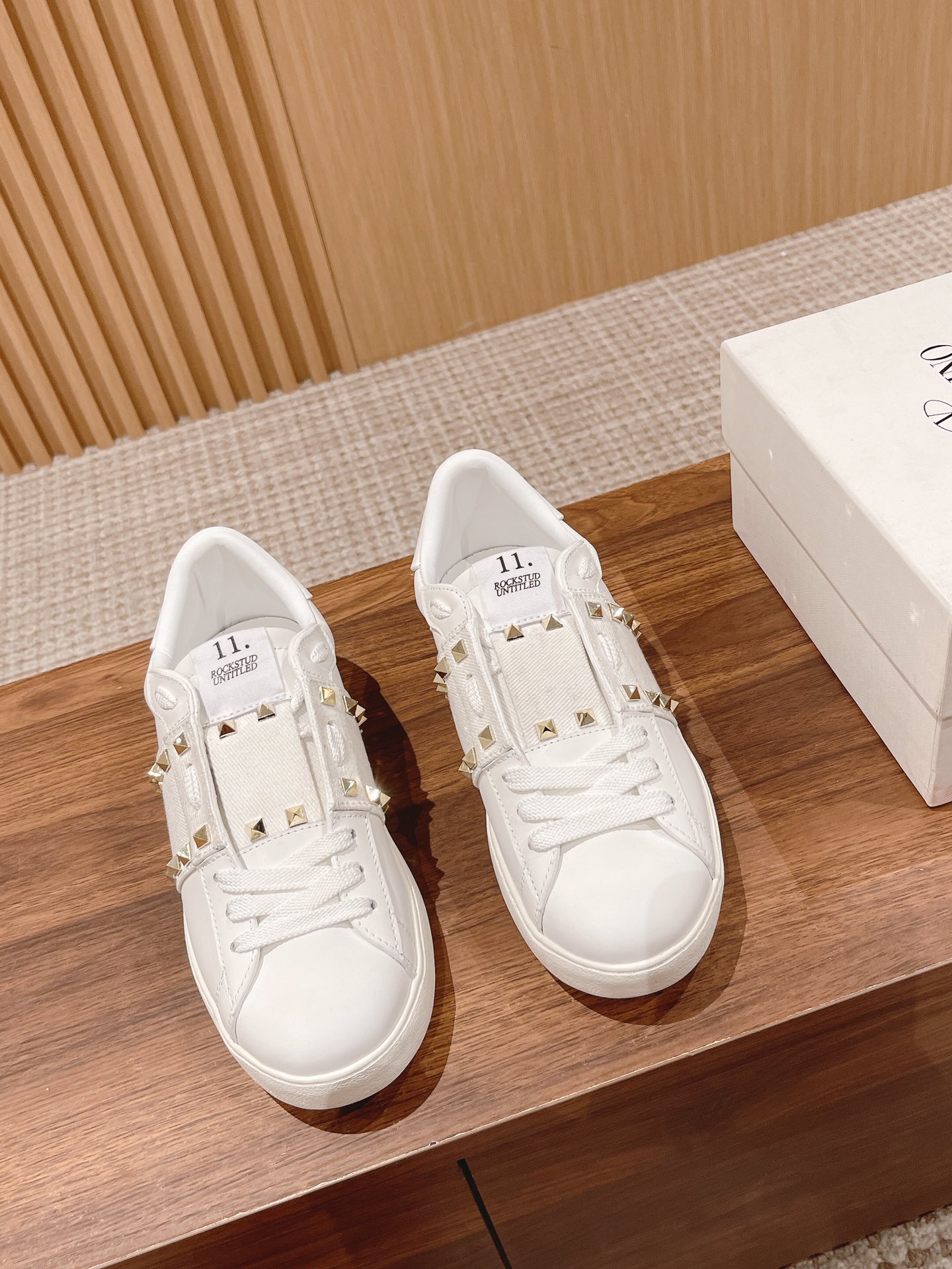 Valentino Garavani Untitled Open White Leather Gold Rockstud Band Sneakers