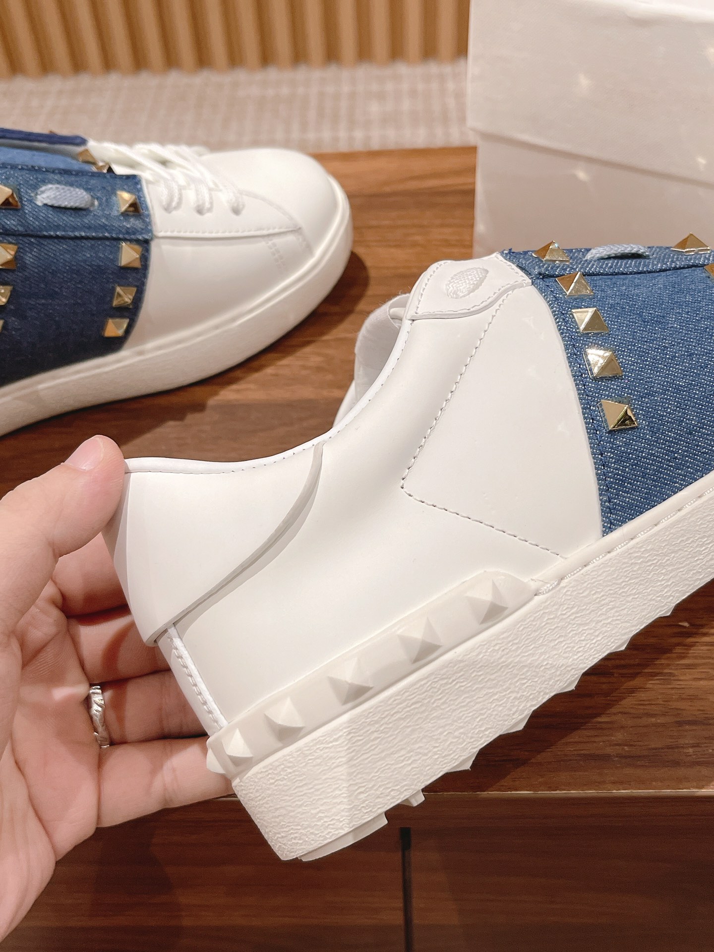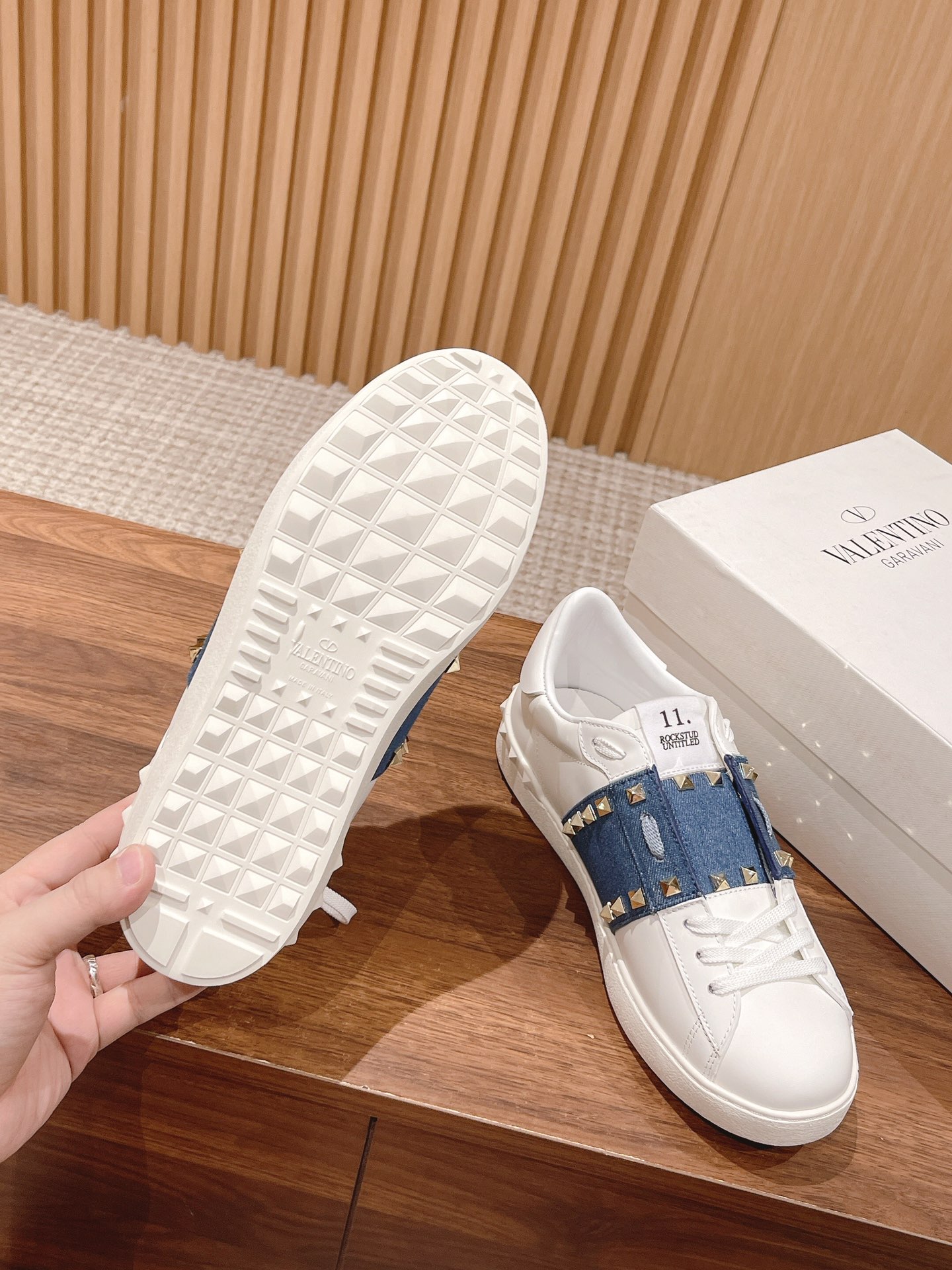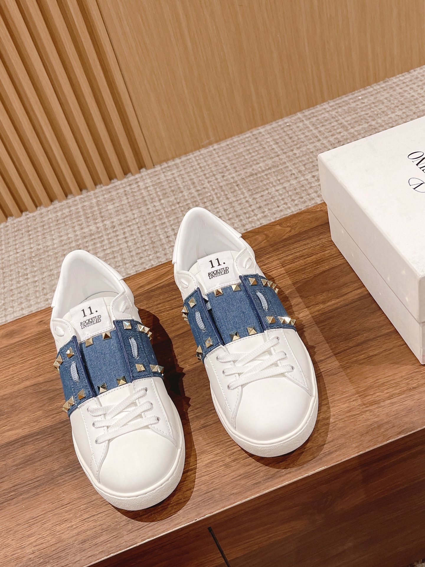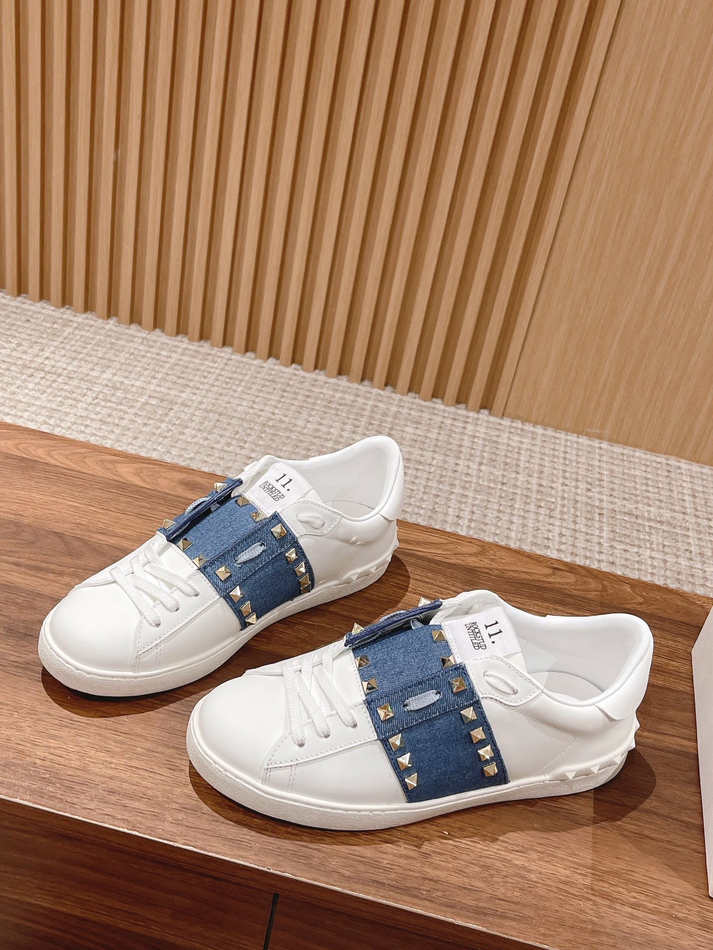 Valentino Garavani Untitled Open White Leather Gold Rockstud Band Sneakers