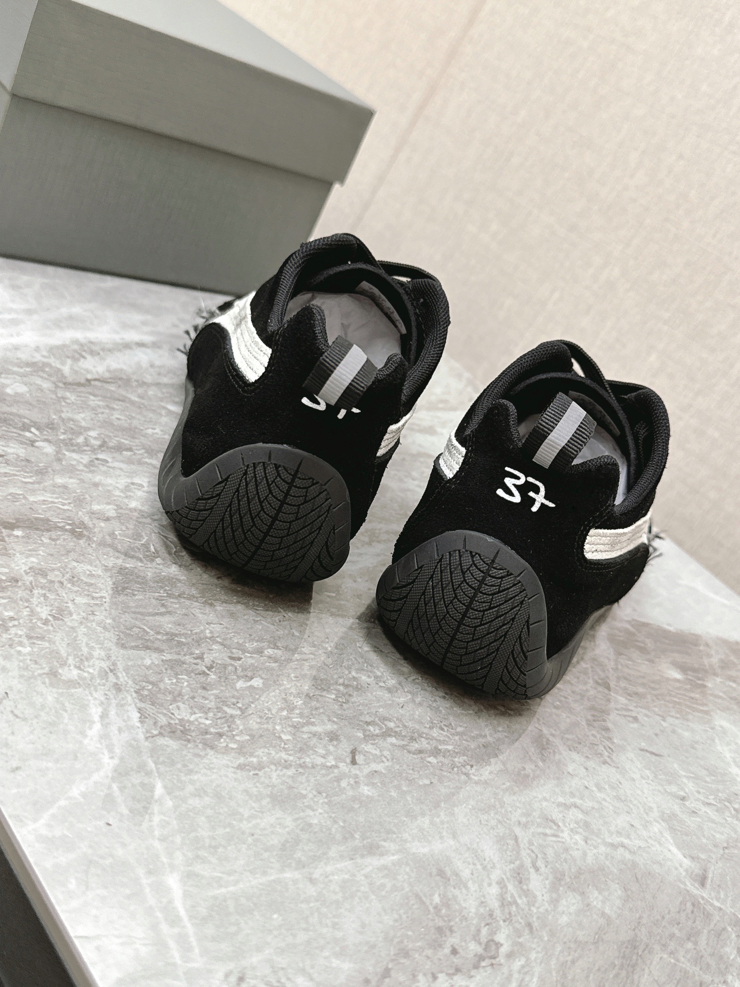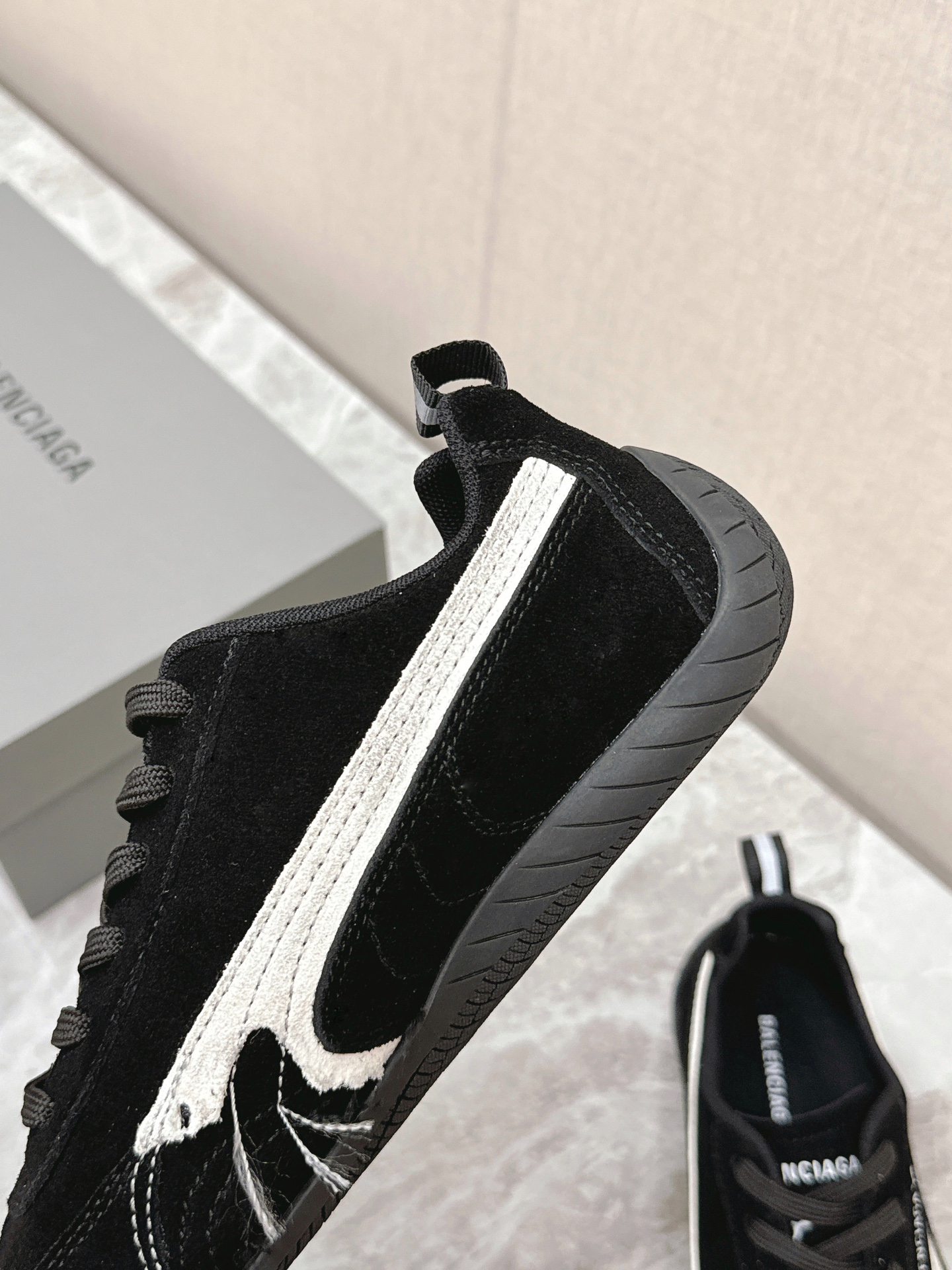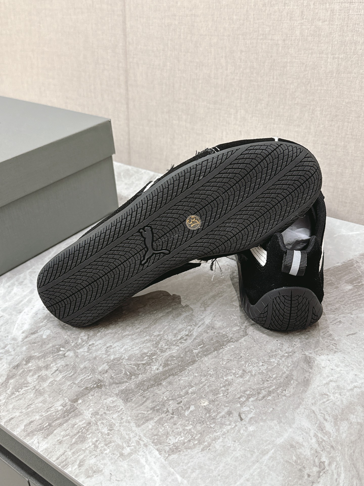 Balenciaga x Puma Black Worn-Out Broken Logo Leather Suede Speed GAT Sneakers