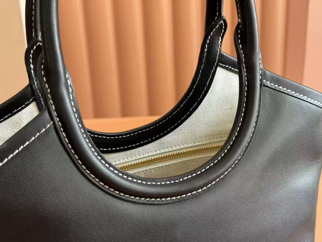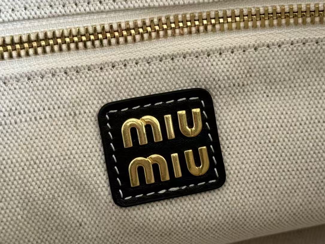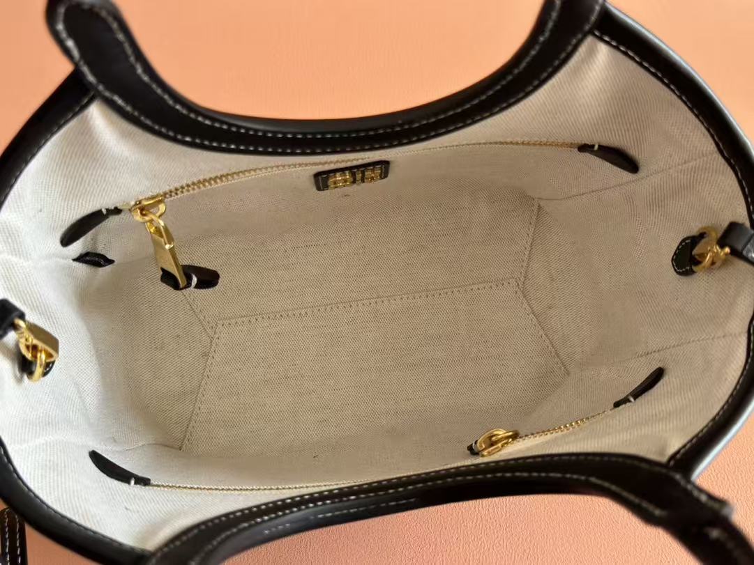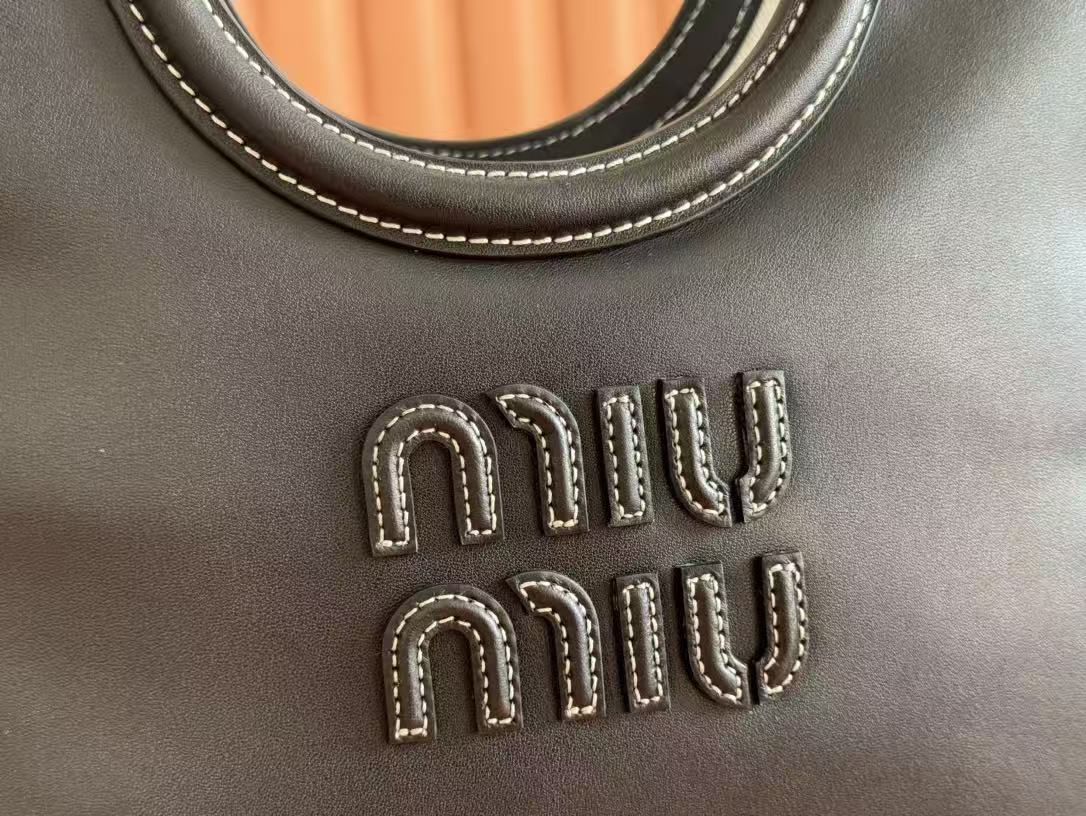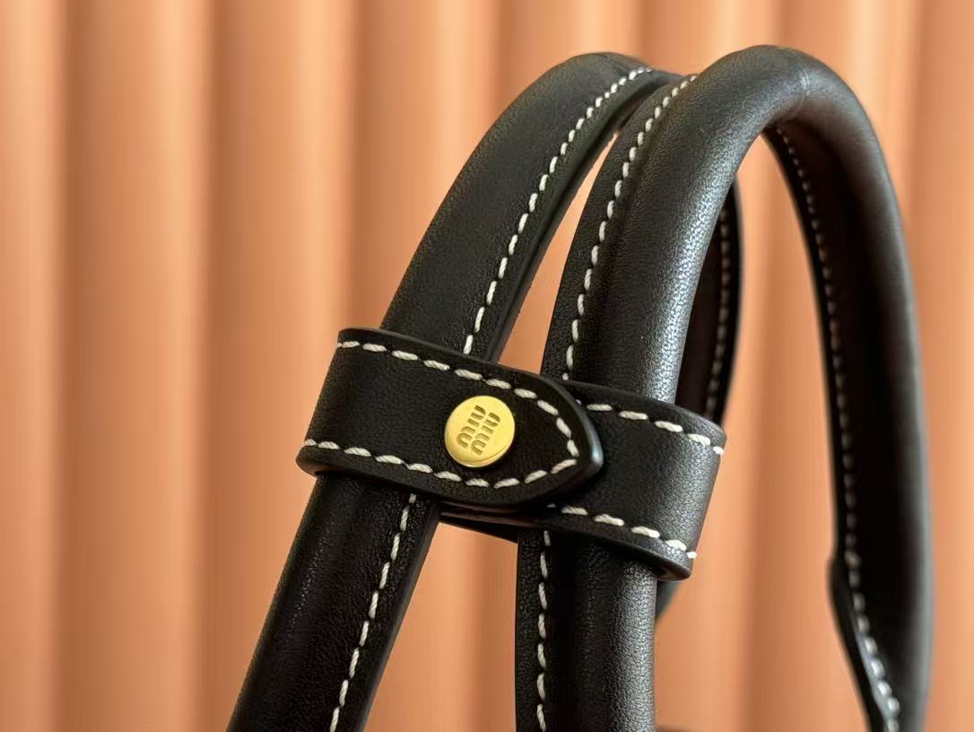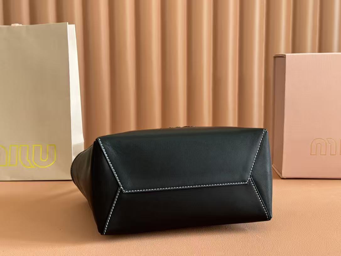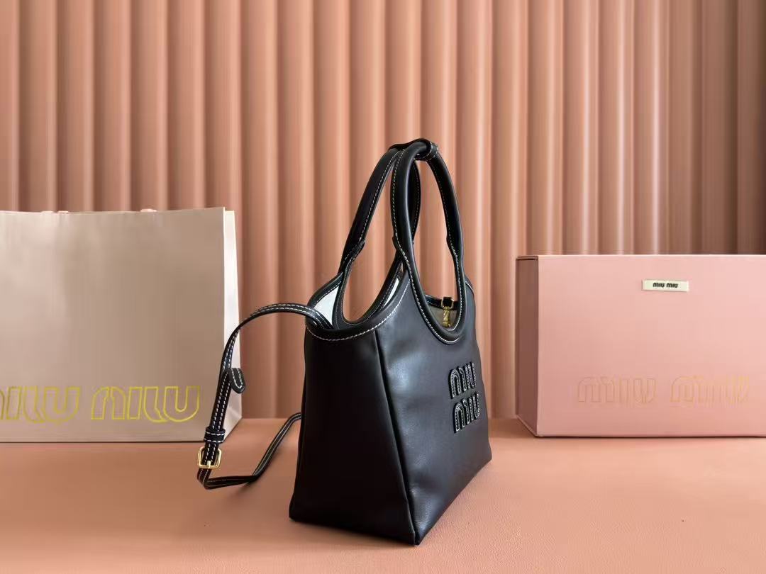 Miu Miu Black Leather Logo Embroidery Basket Handle Tote Crossbody Bag