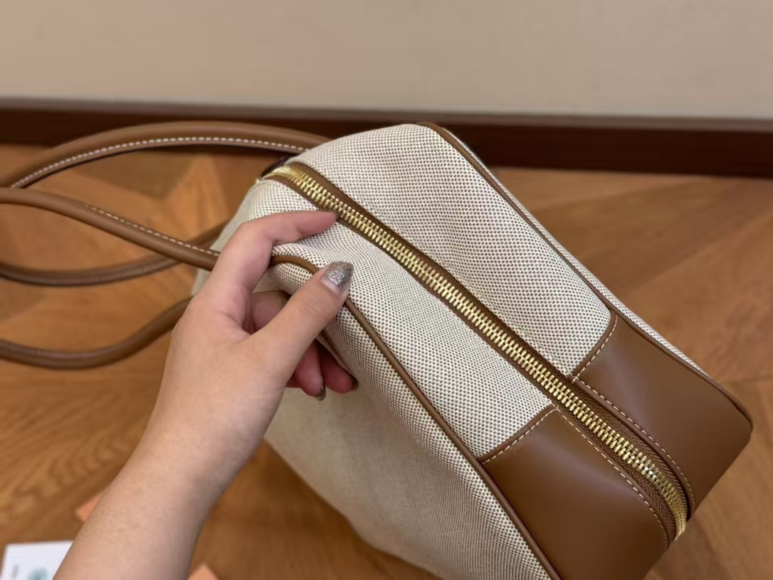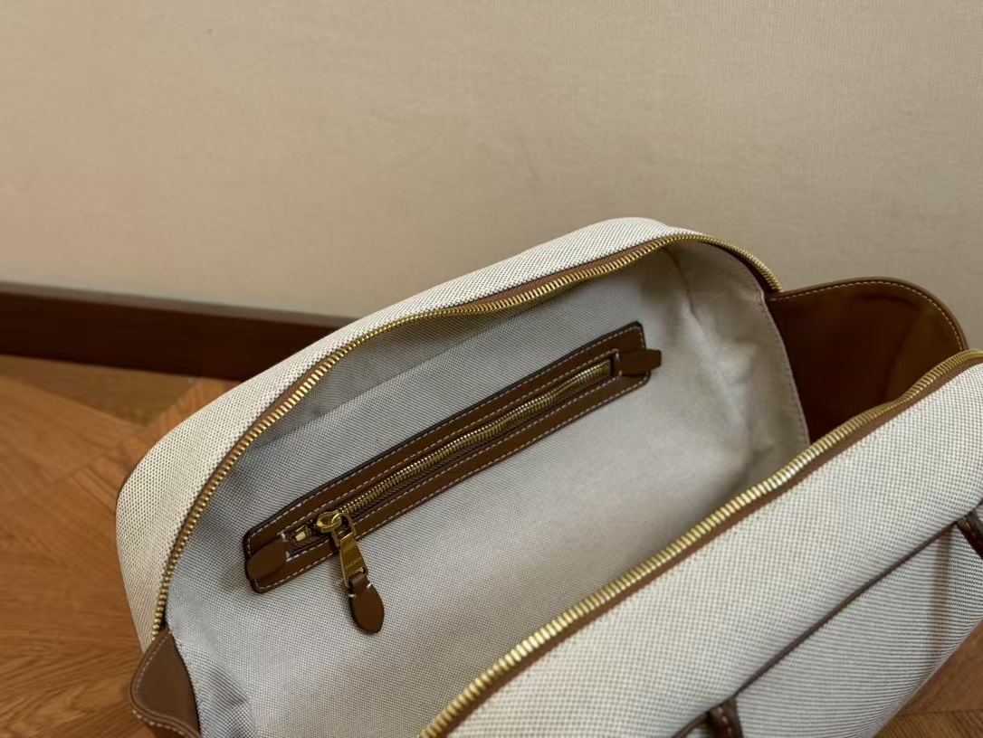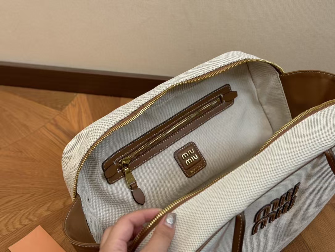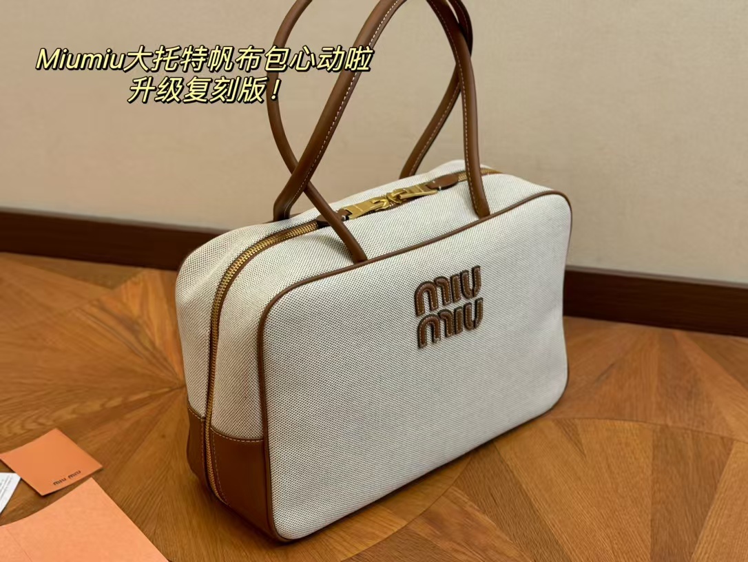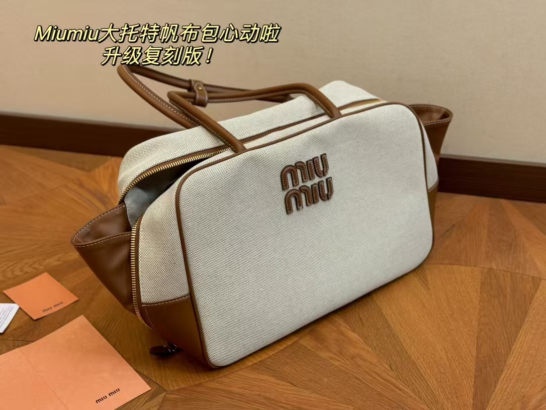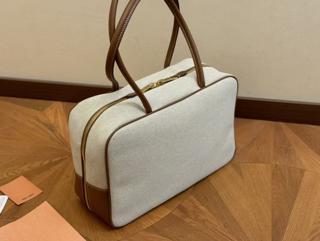 Miu Miu Beau Canvas and Leather Boston Handle Travel Bag