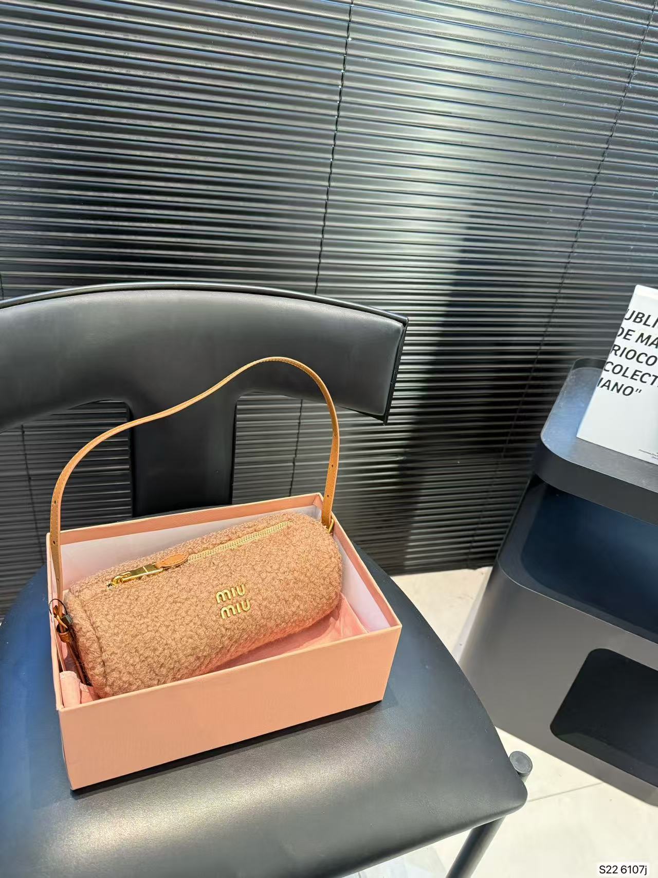 Miu Miu Teddy Furry Cylinder Underarm Handle Bag