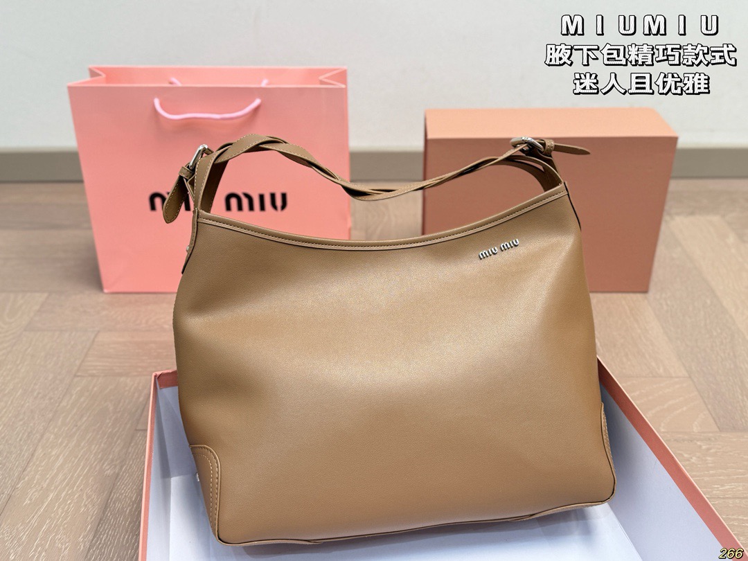 Miu Miu Twisted Handle Smooth Leather Hobo Underarmr Commuting Bag