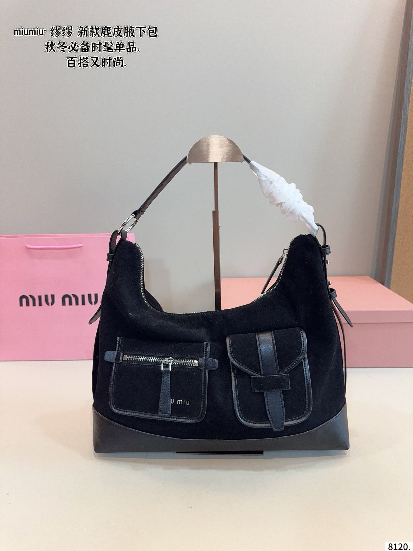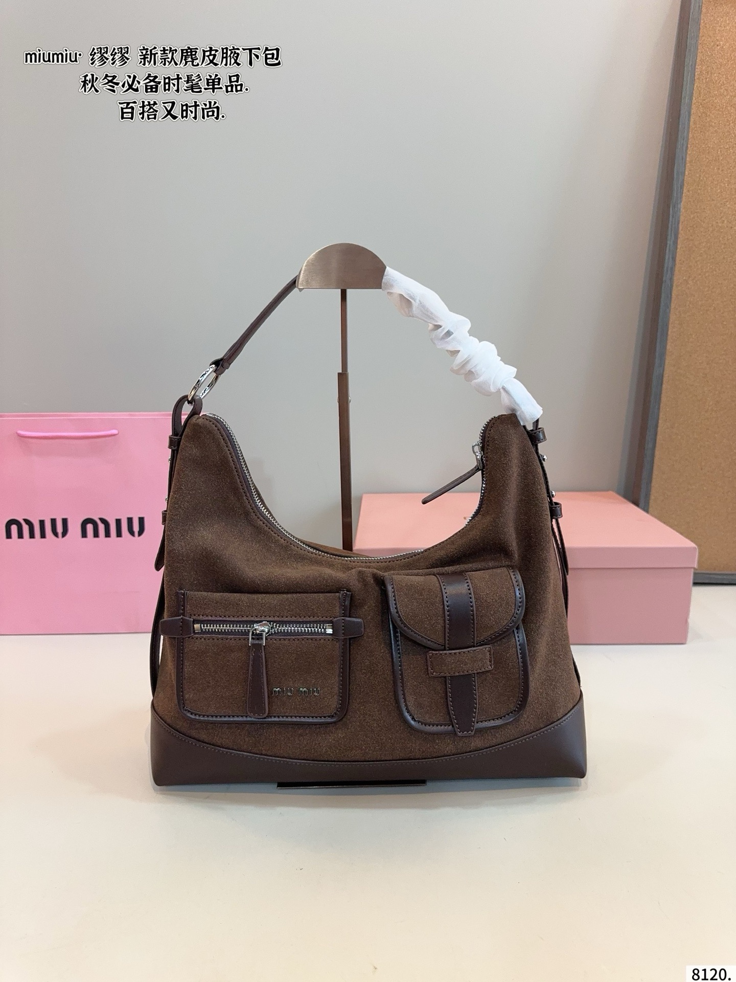 Miu Miu Suede & Leather Dual Pocket Shoulder Hobo Underarm Bag