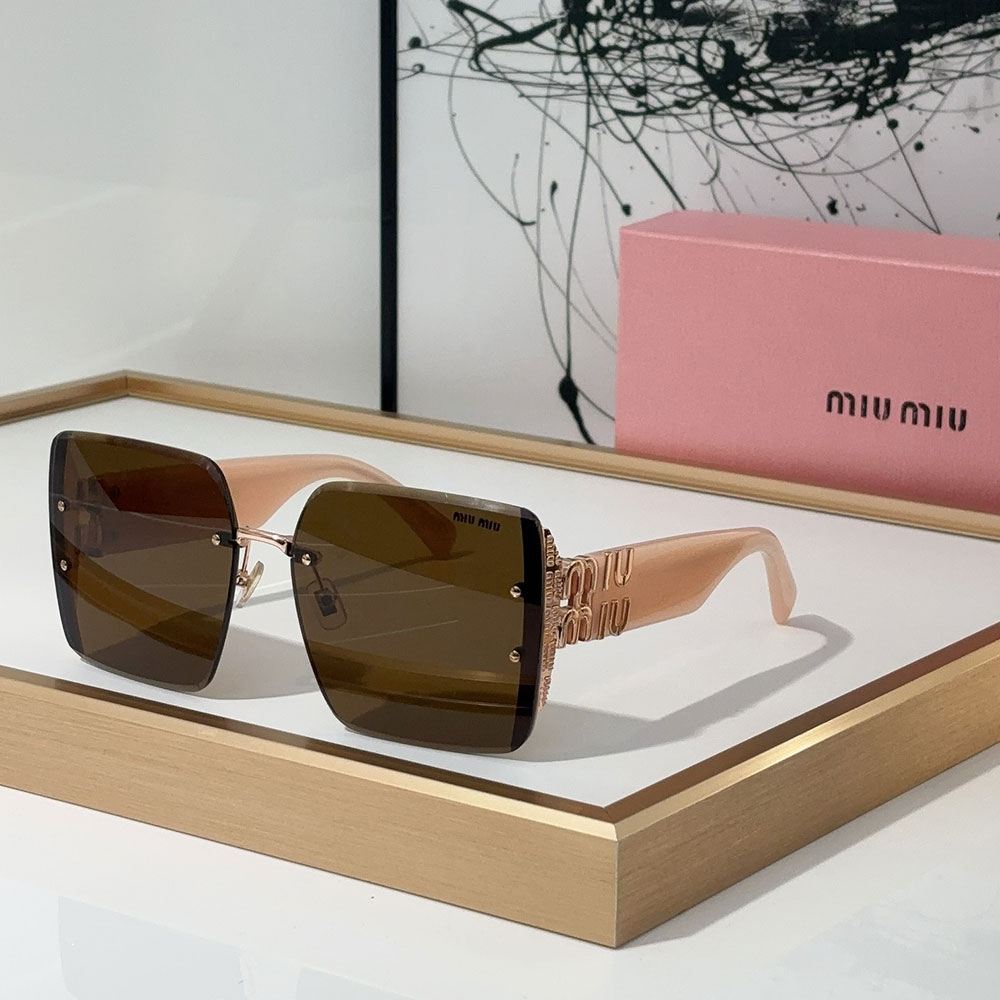 Miu Miu Oversized Rimless Logo Temple Sunglasses Top quality