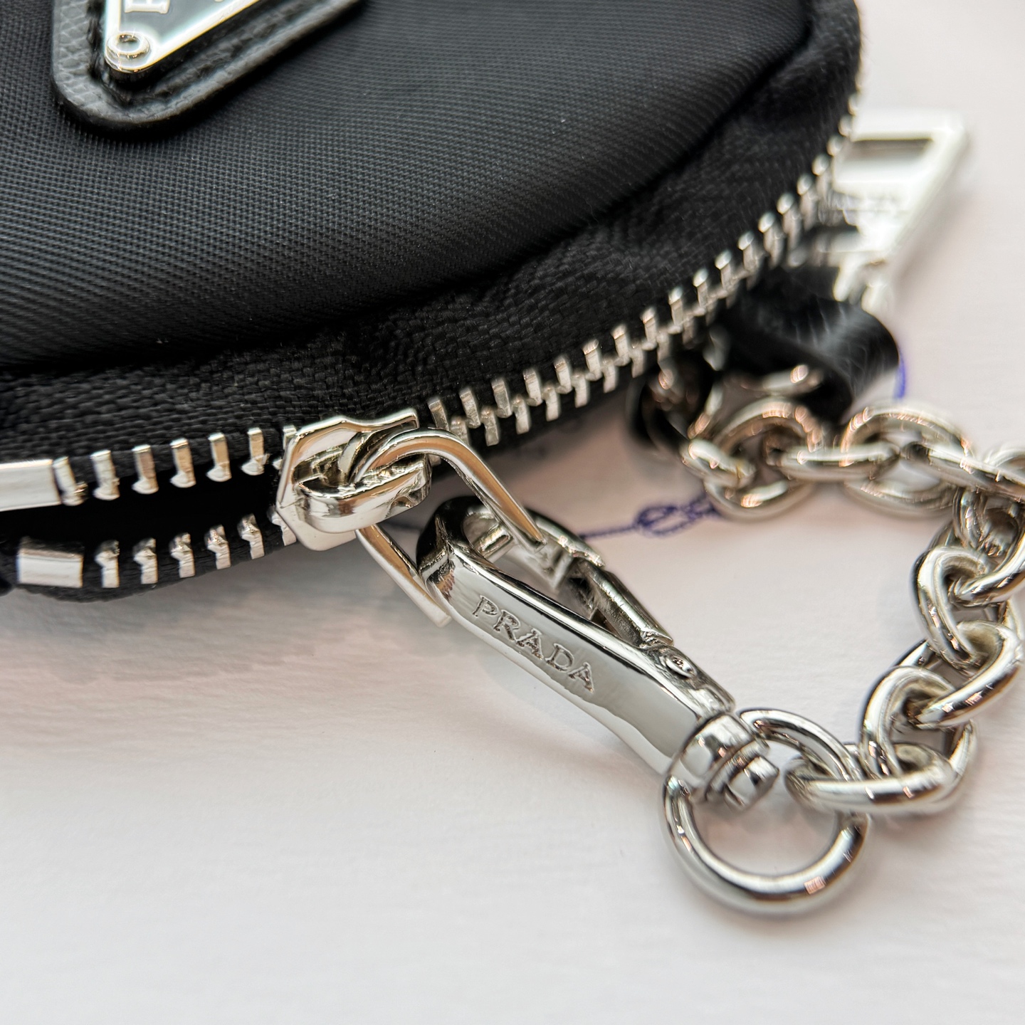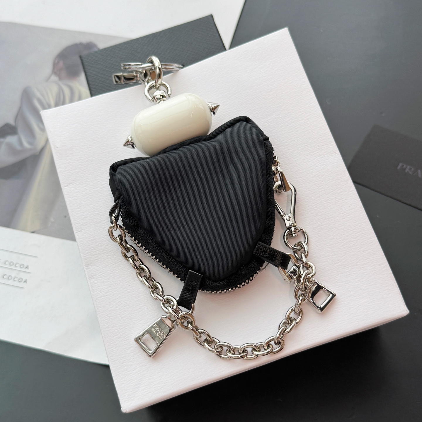 Prada Triangle-logo Re-Nylon Keychain Pouch with Robot Charm