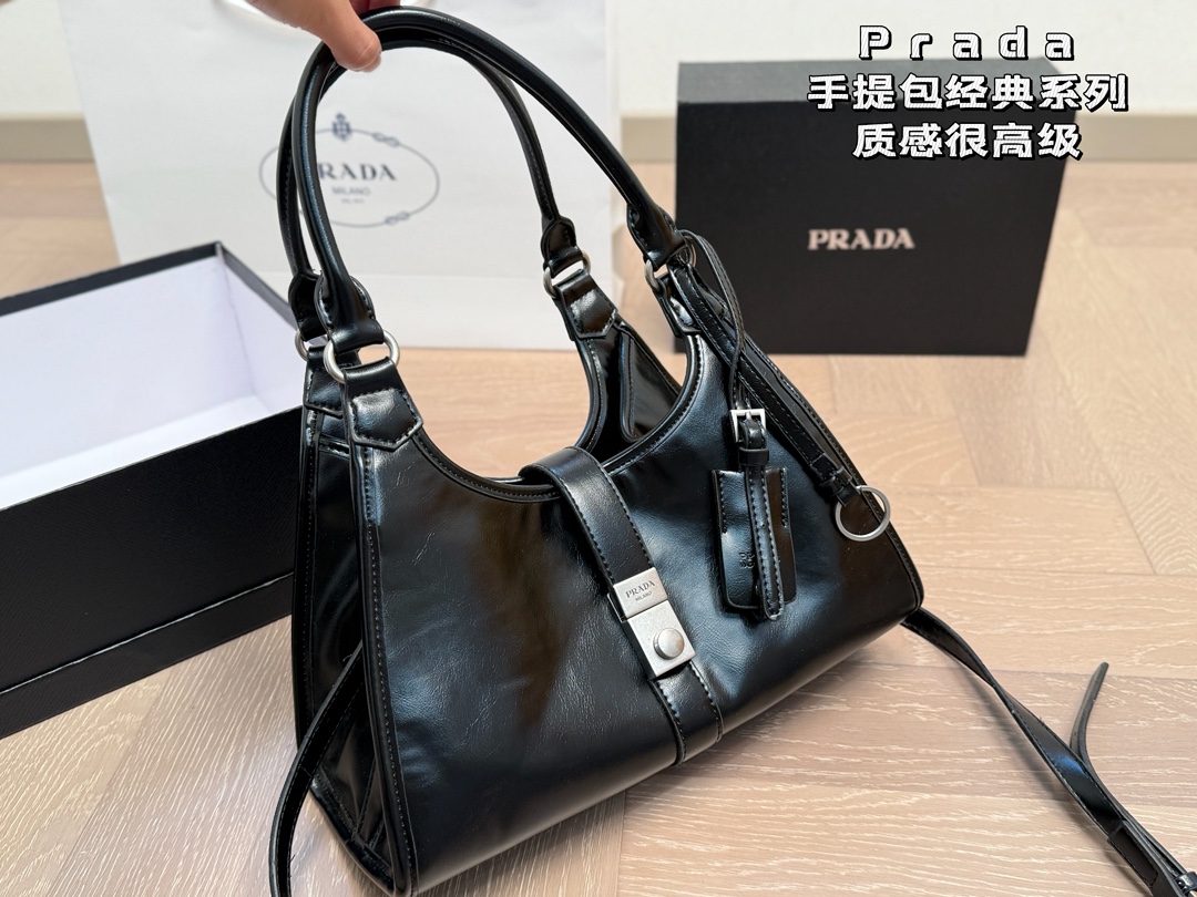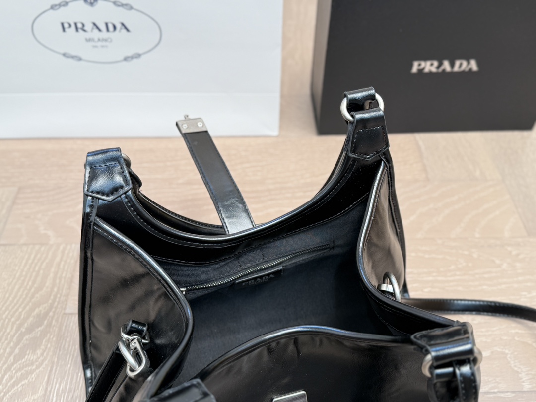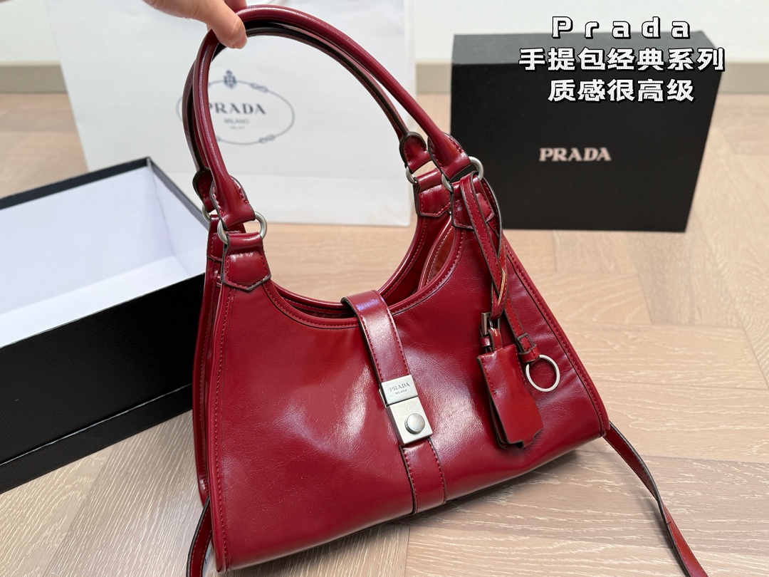 Prada Polished Leather Double-arched Push-Lock Top Handle Shoulder Bag