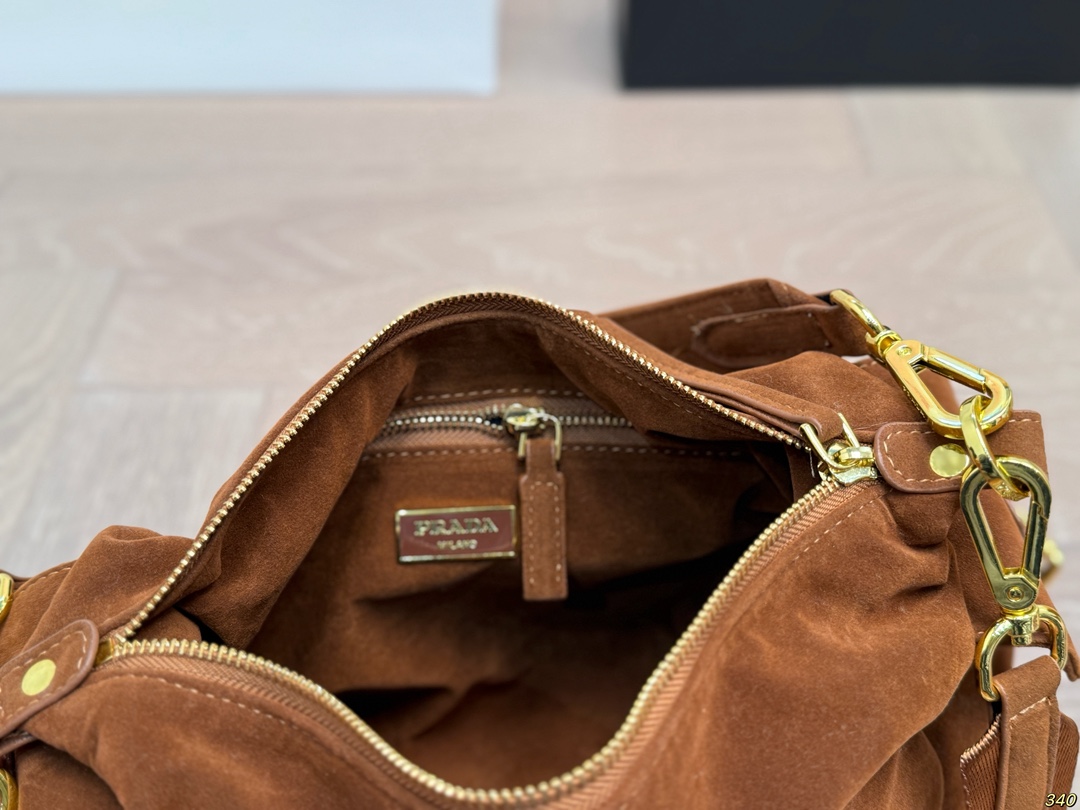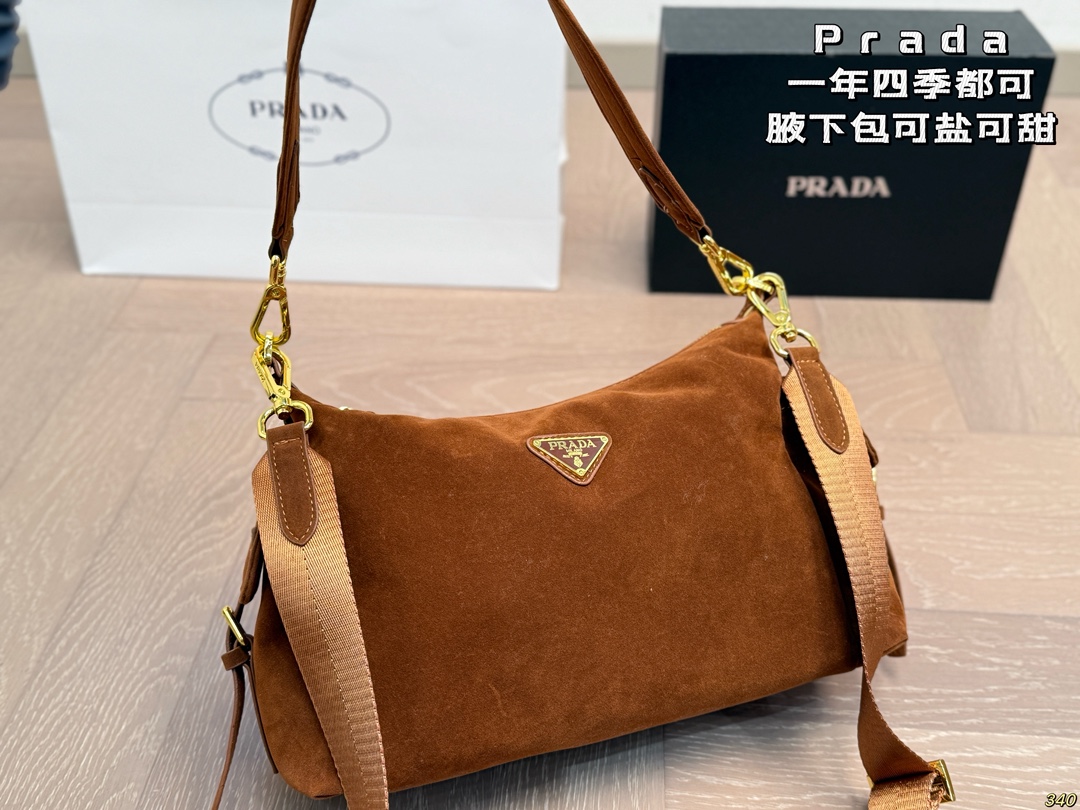 Prada Suede Leather Rectangular Top Handle Shoulder Bag