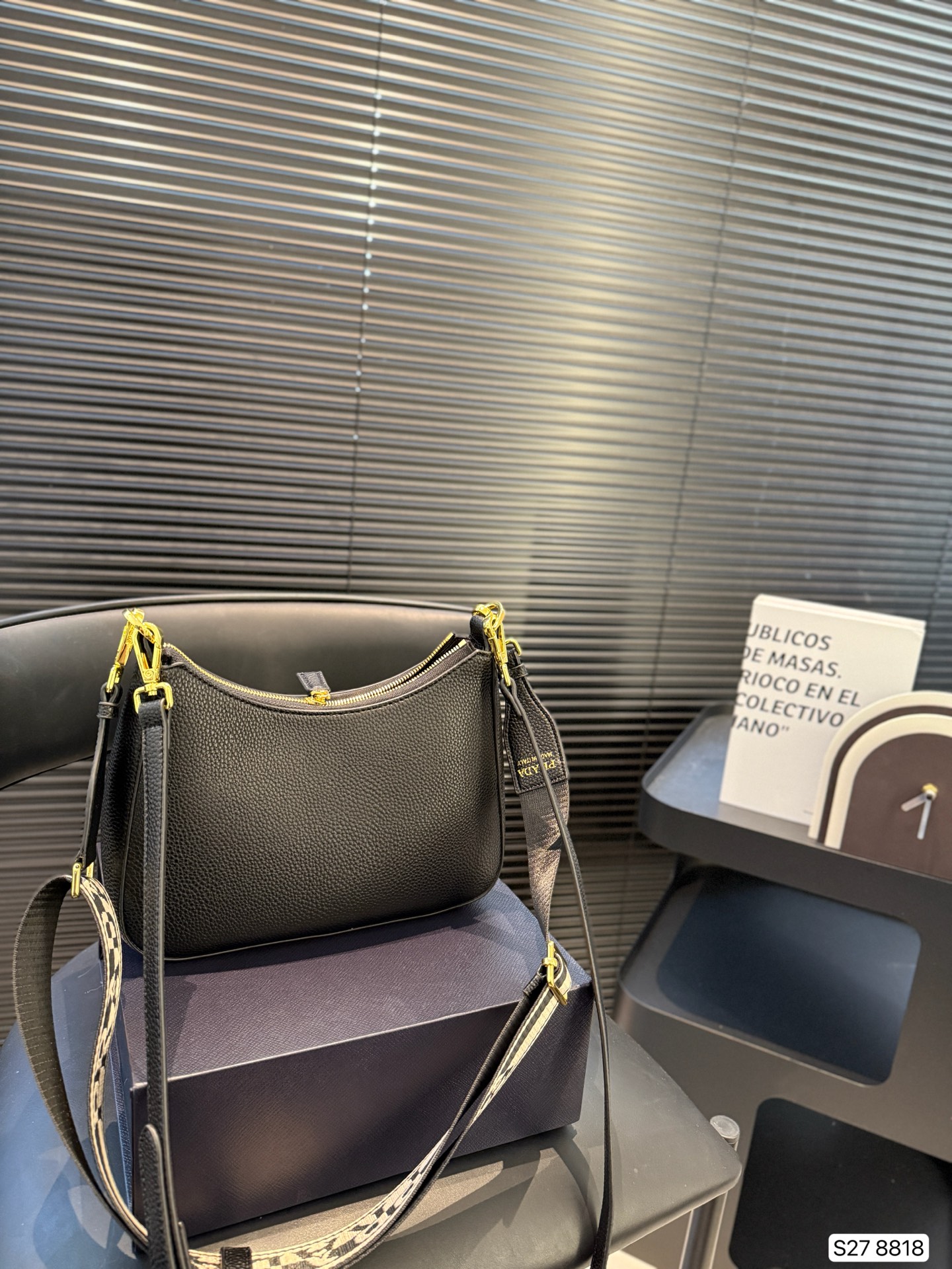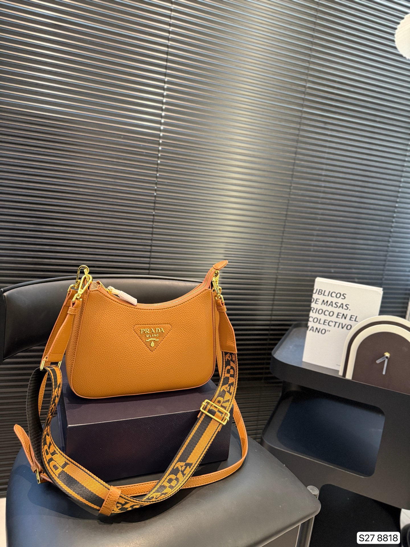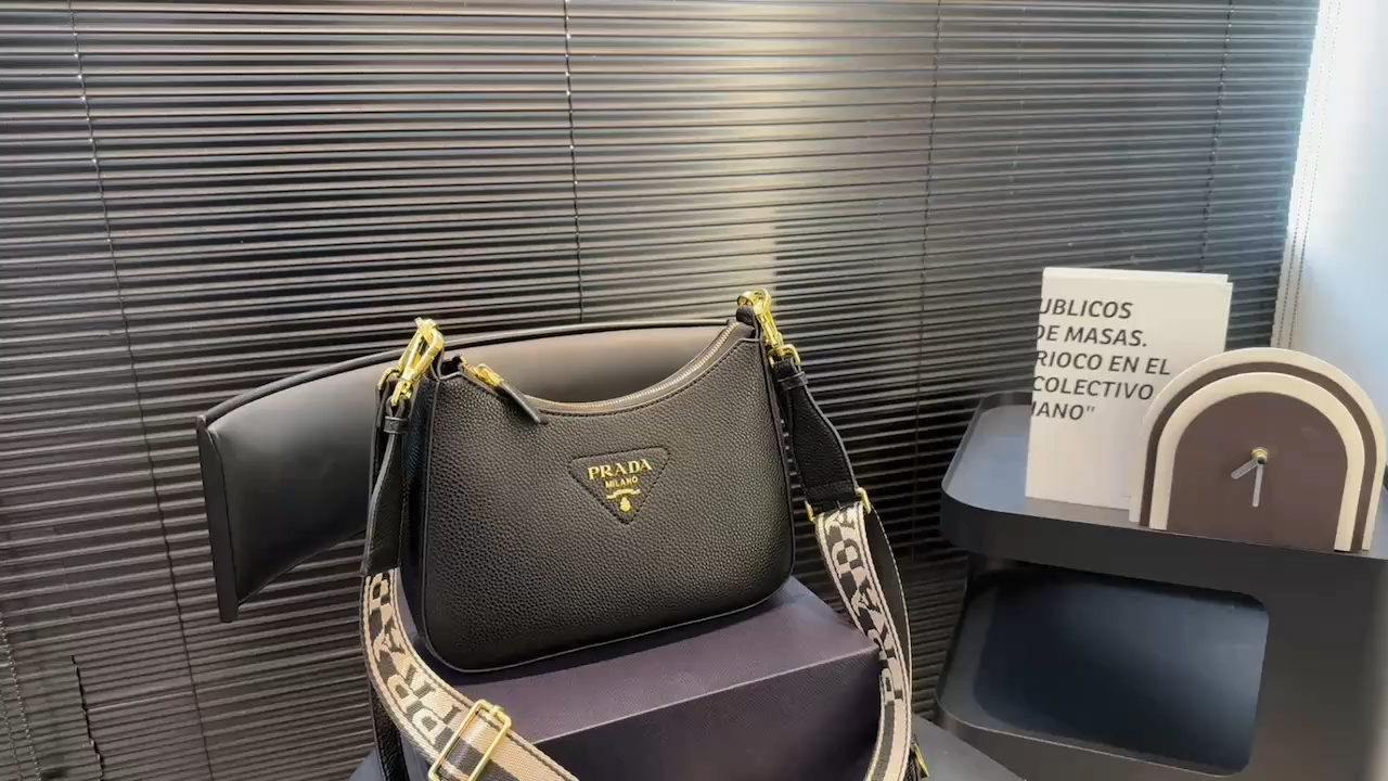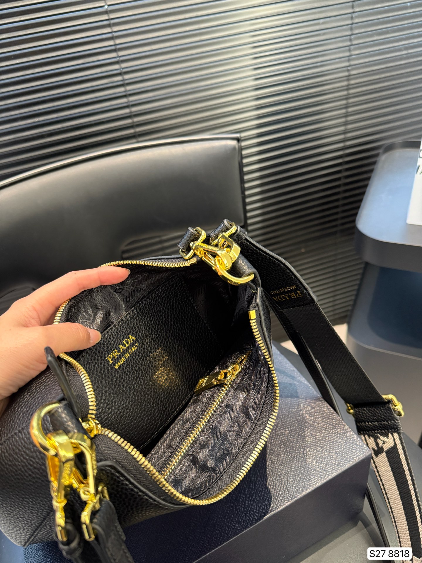 Prada Textured Leather Shoulder Bag with Webbing Strap