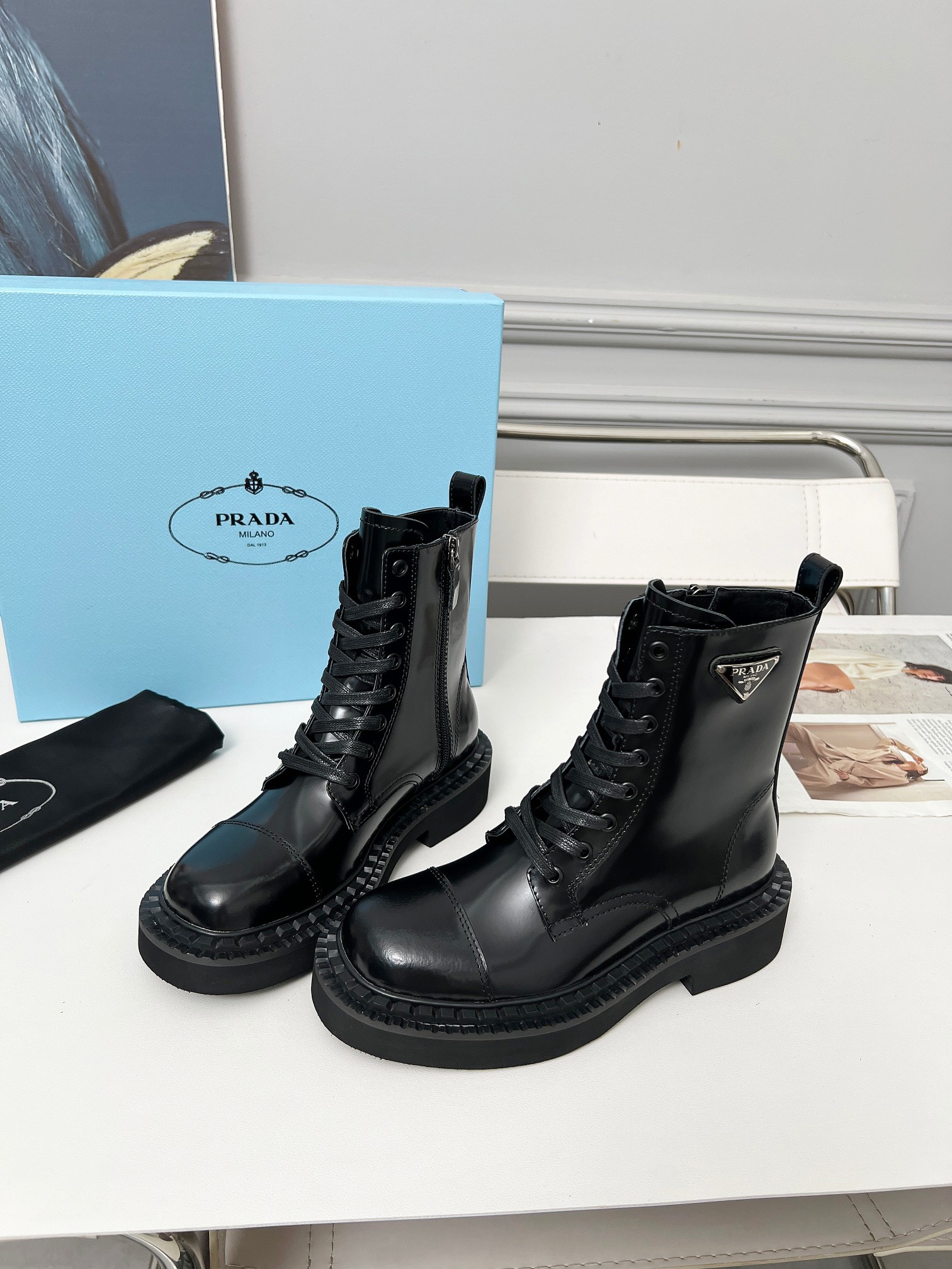 Prada Tri-Logo Lugs Nylon-mix Combat Laced Boots