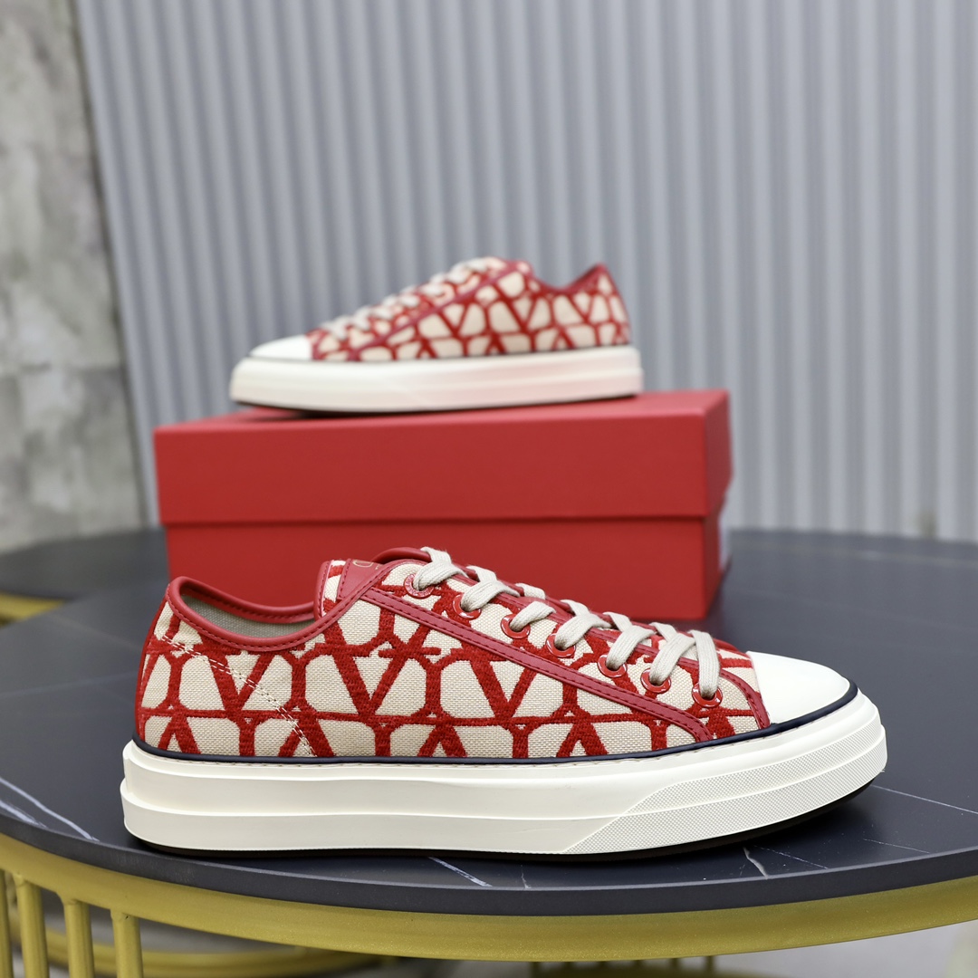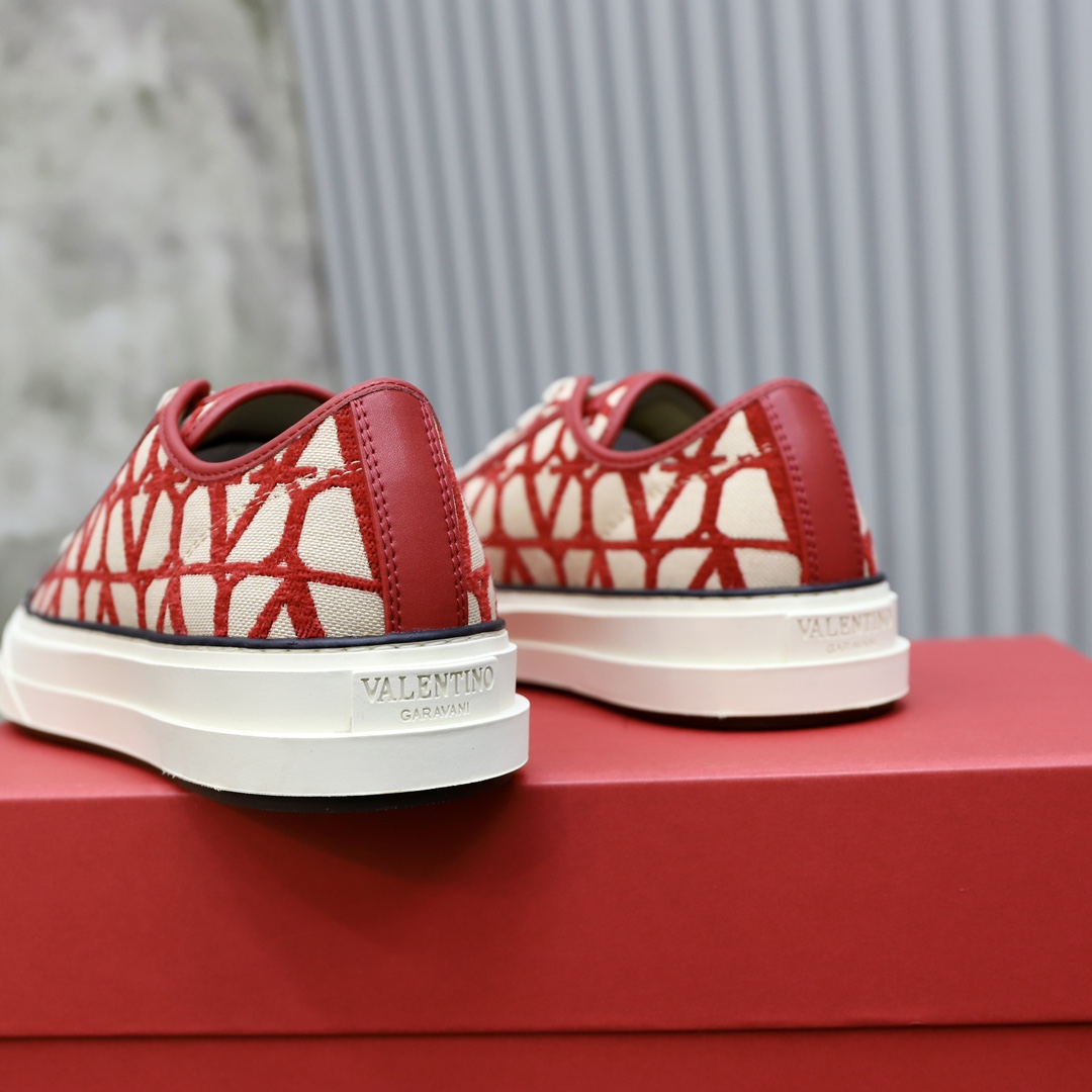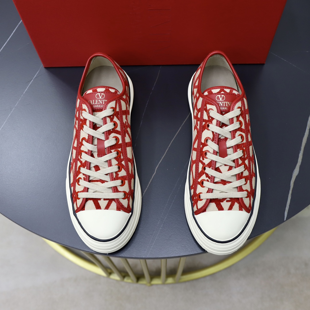 Valentino Toile Iconographe Red Jacquard Leather Canvas Totaloop Low-top Sneakers