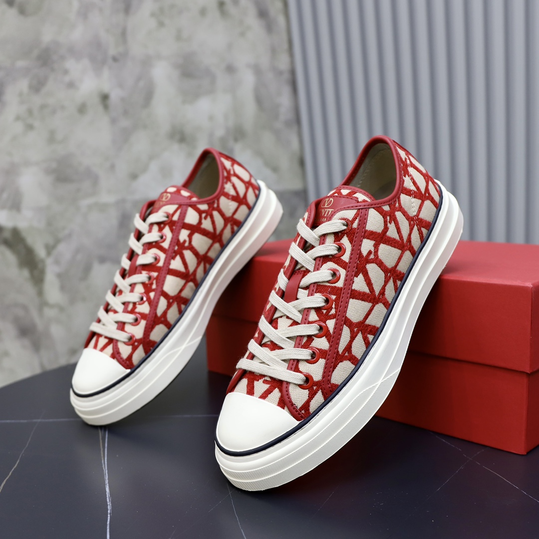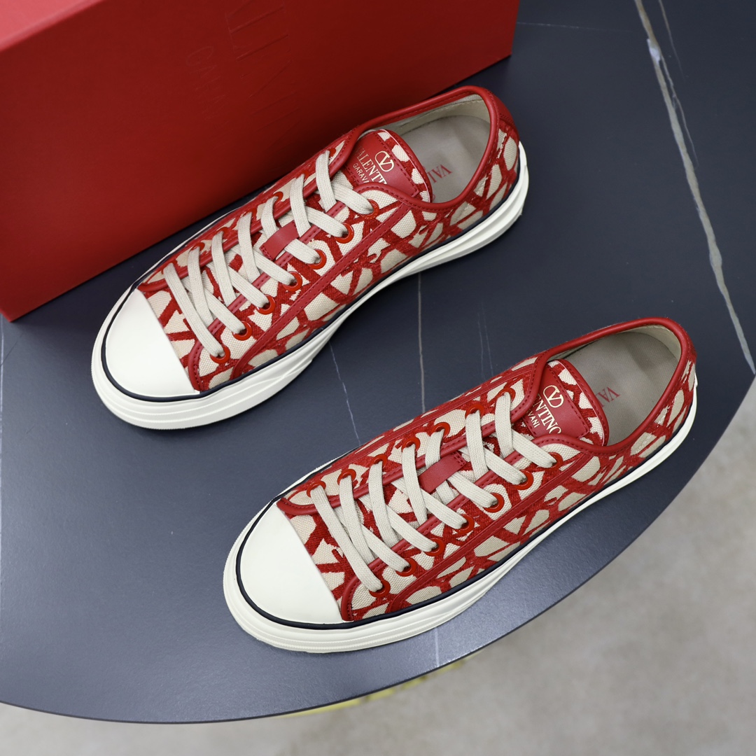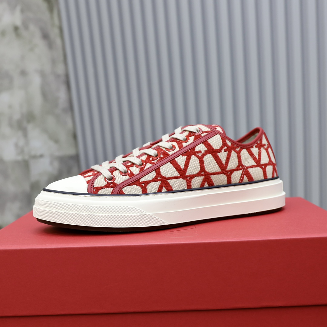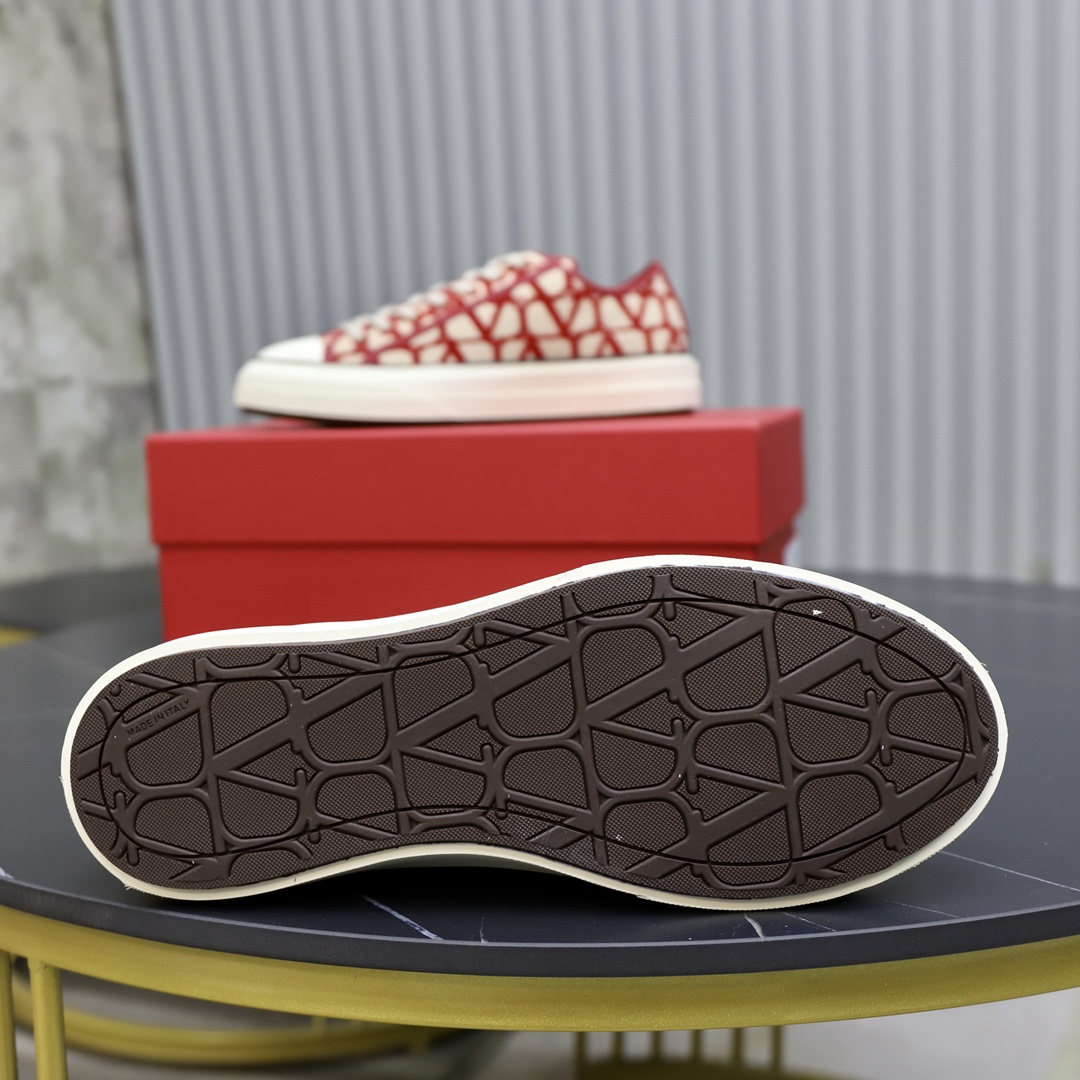 Valentino Toile Iconographe Red Jacquard Leather Canvas Totaloop Low-top Sneakers