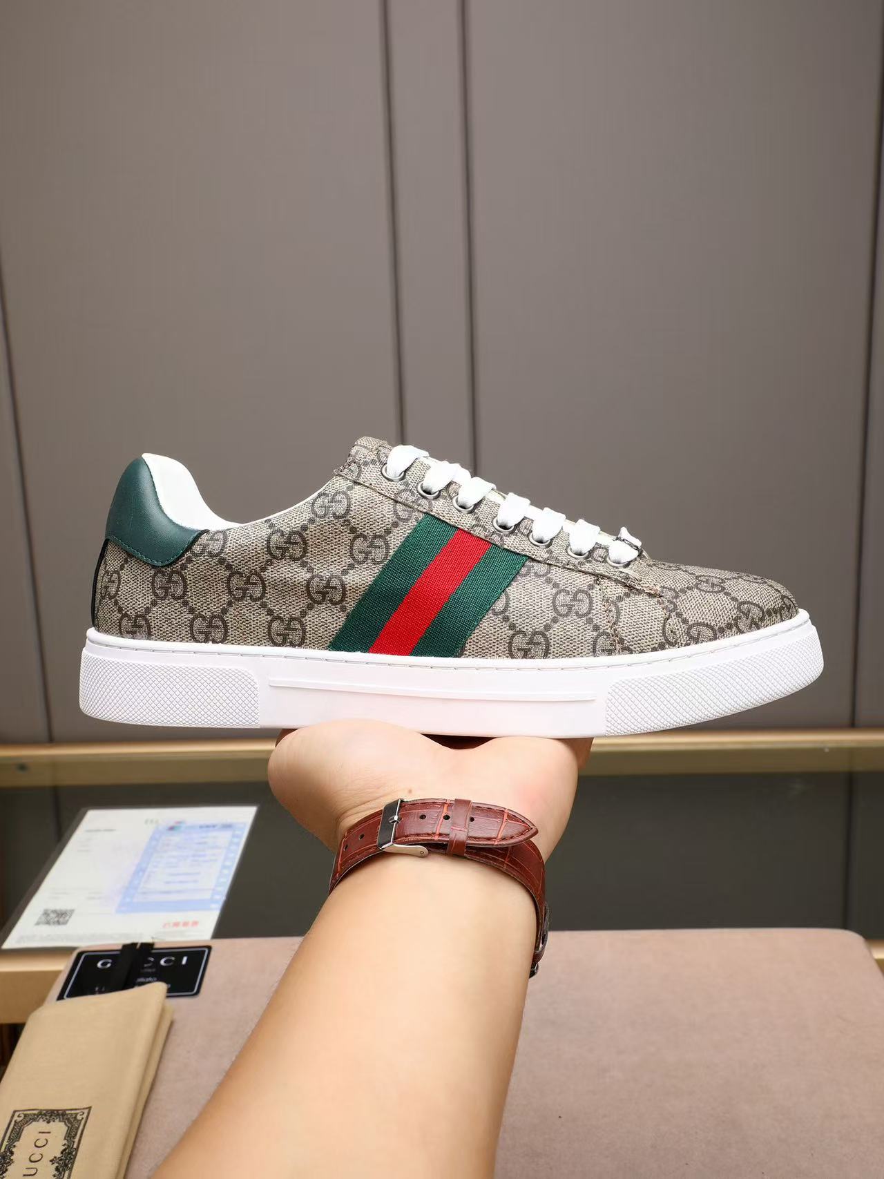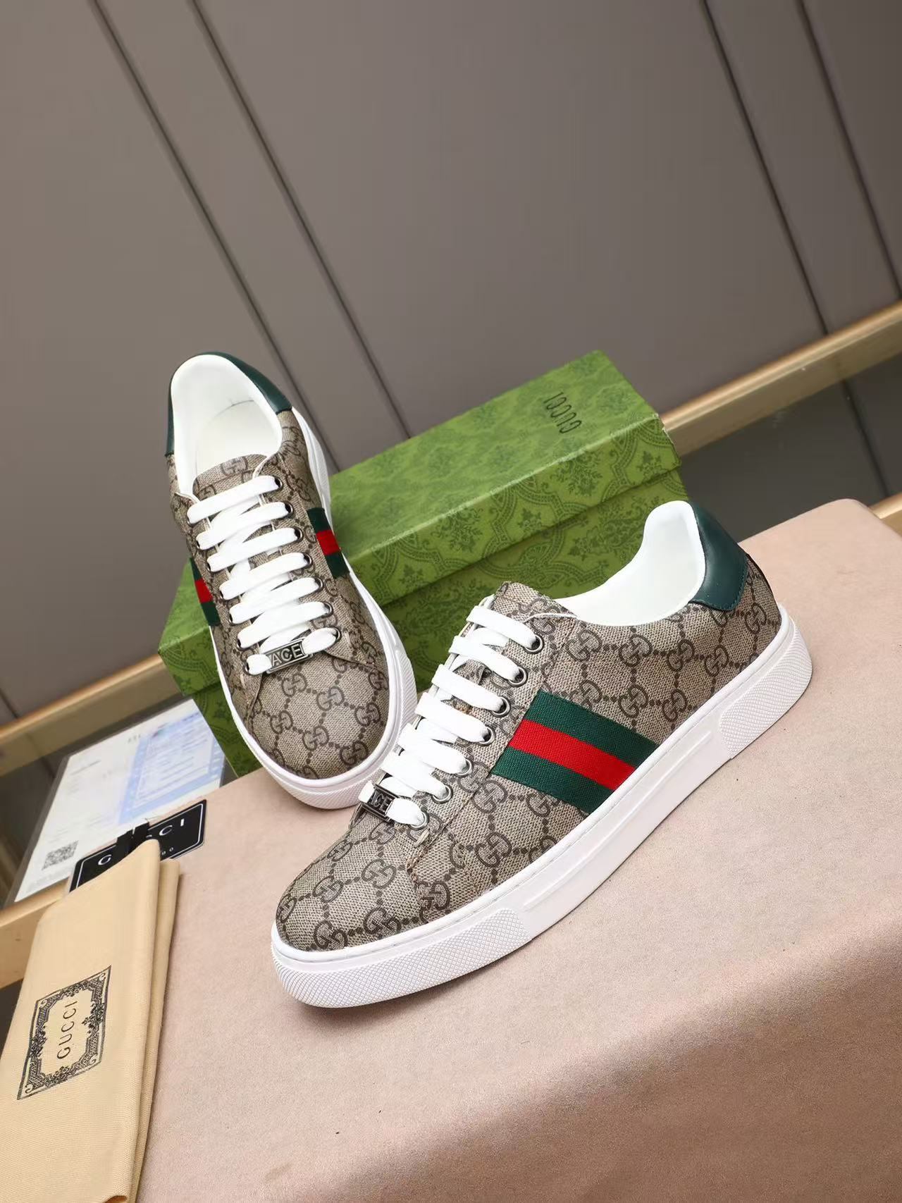 GUCCI Ace Monogram GG Canvas Web Stripe Low-Top Sneakers