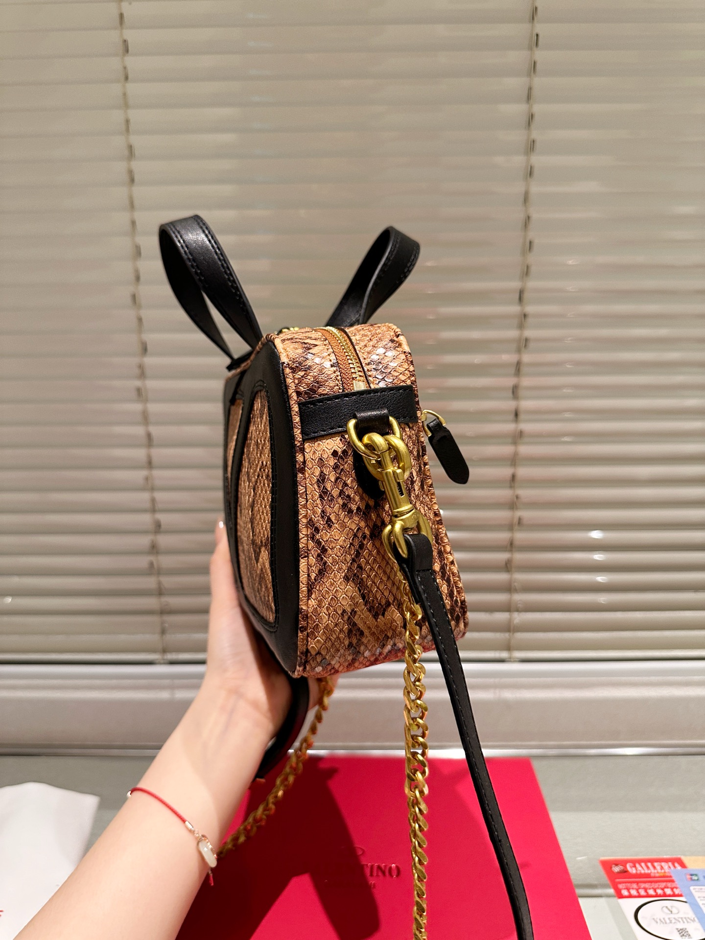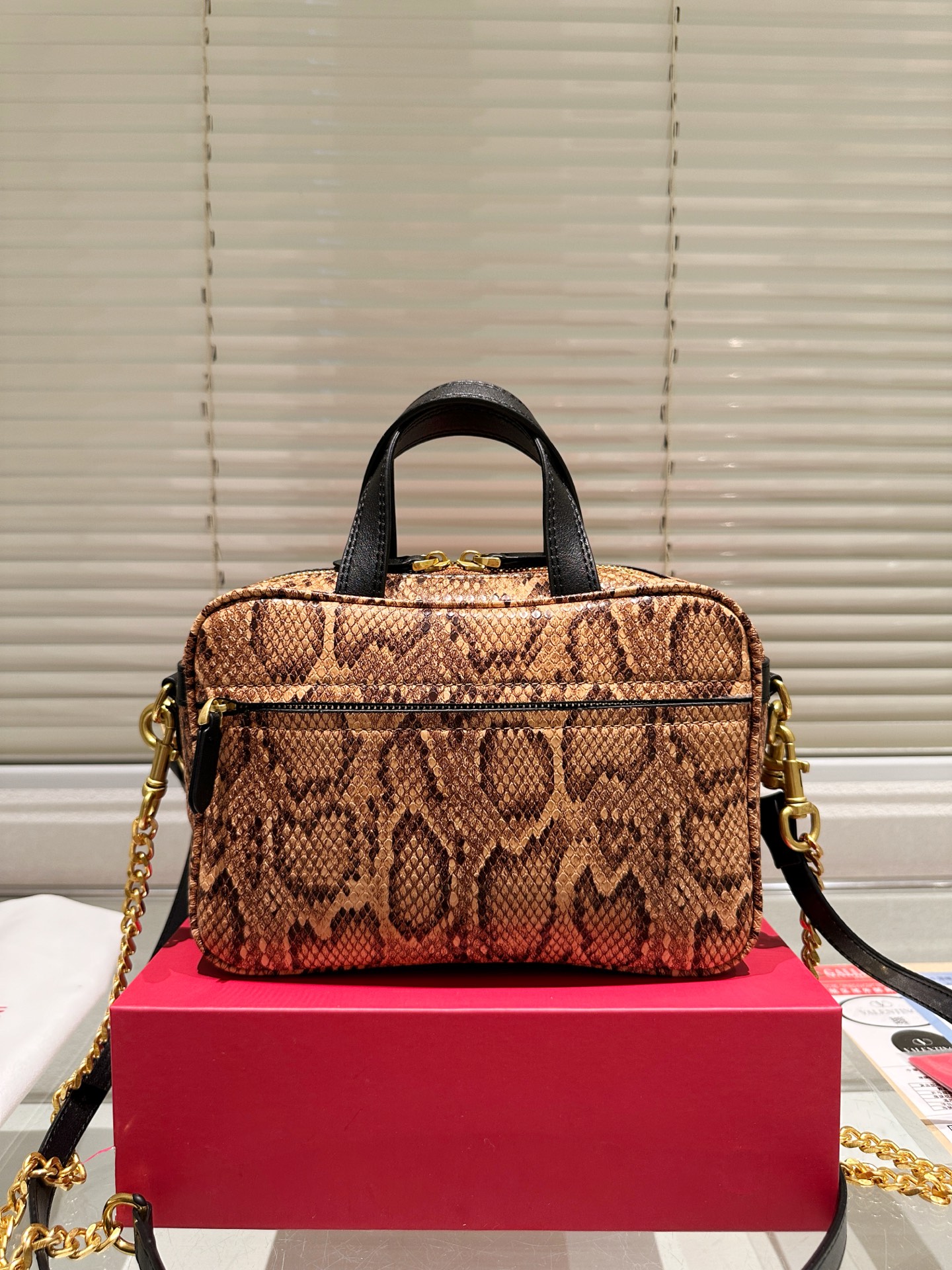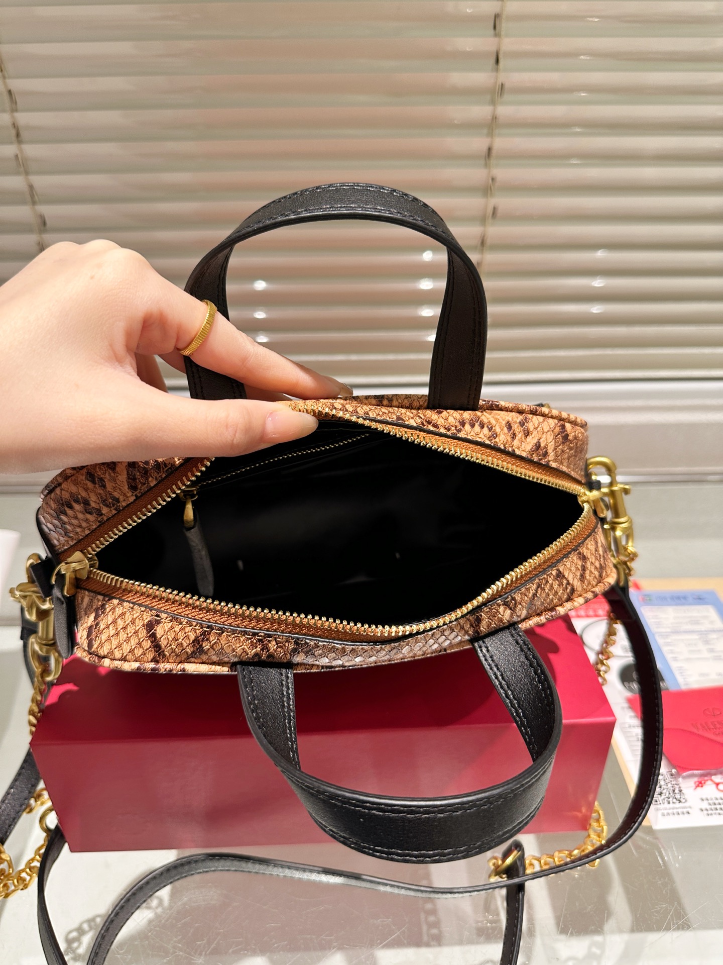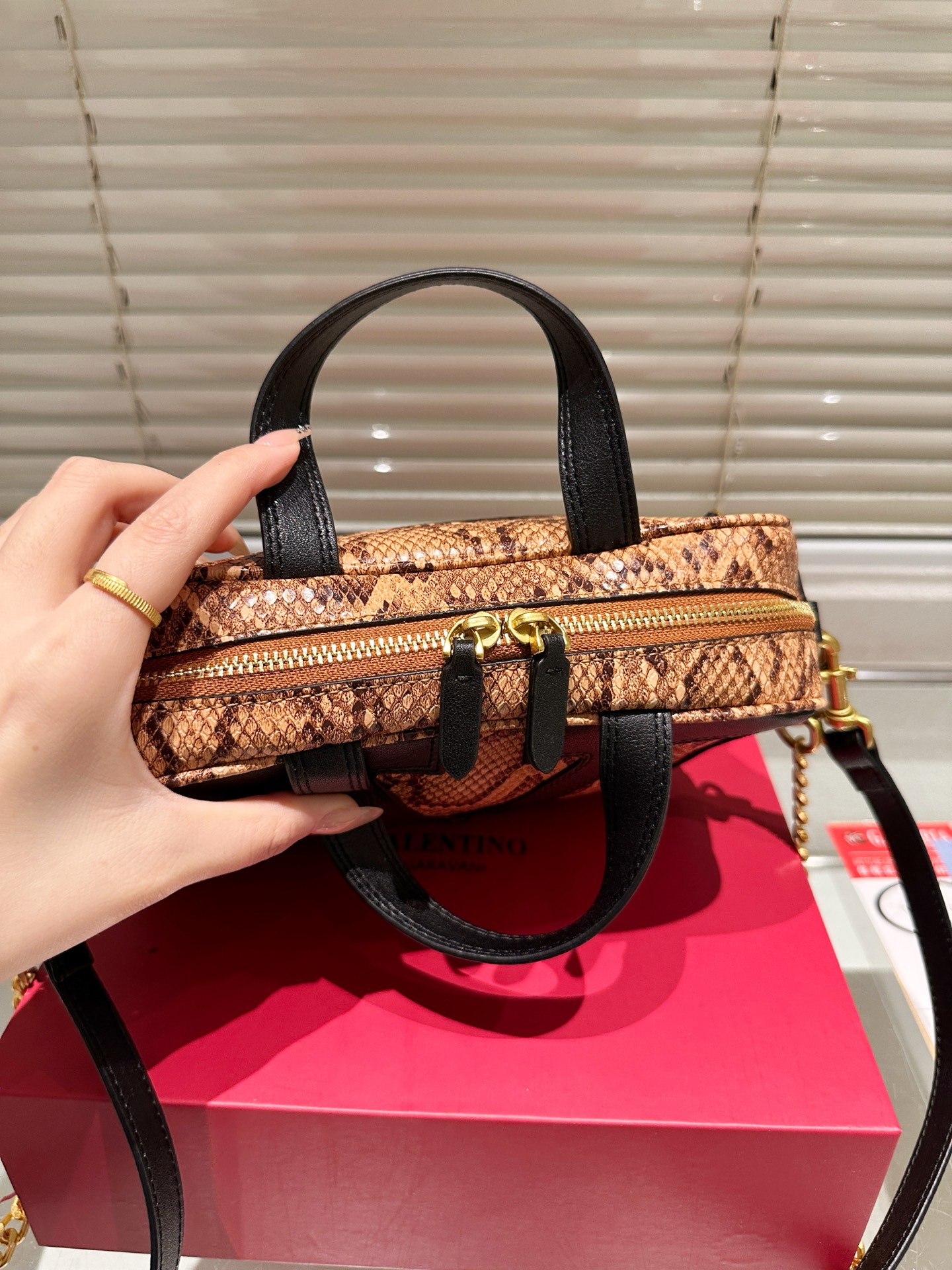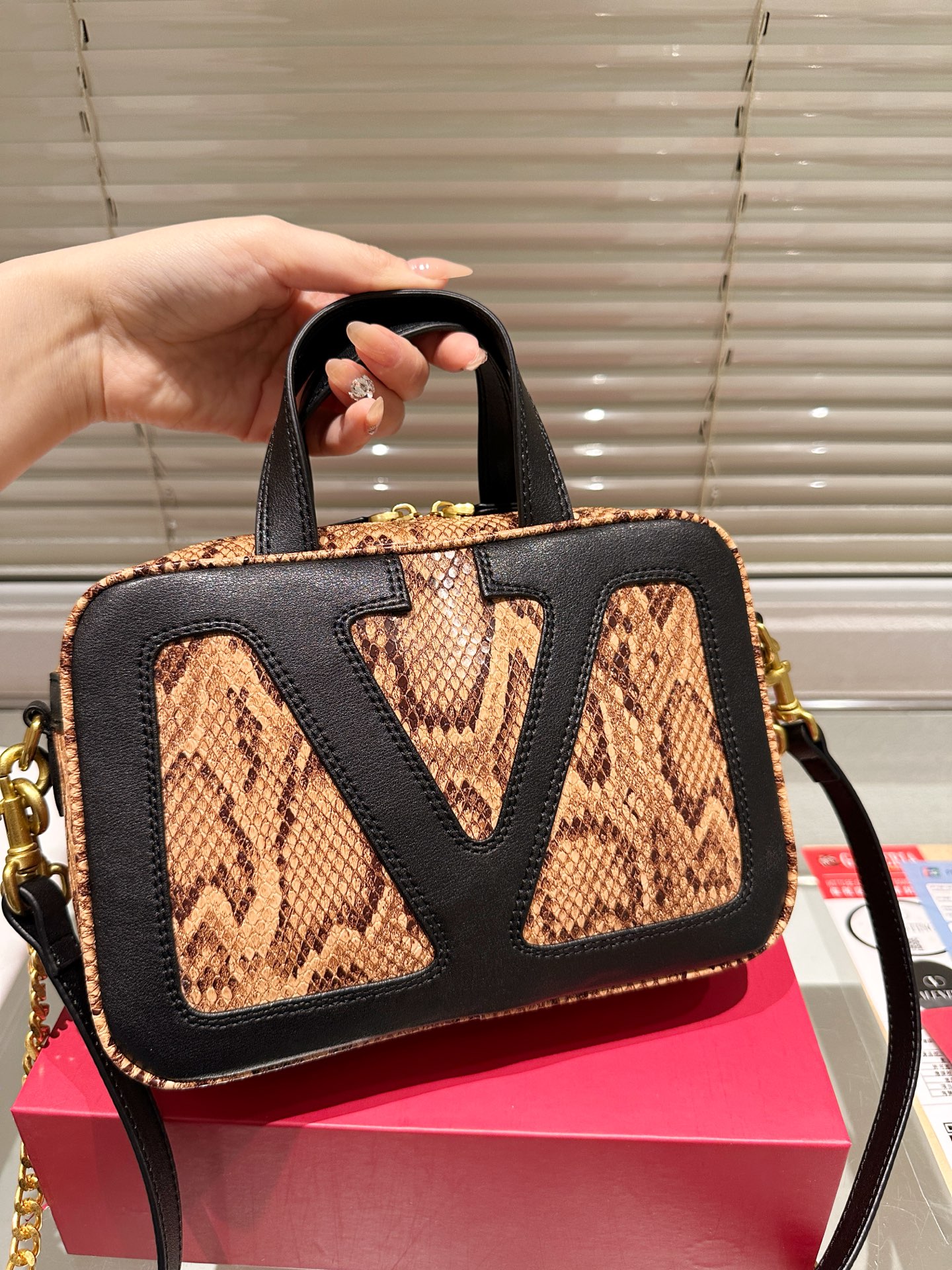 Valentino Python Effect Leather Oversized Appliqué VLogo Chain Strap Handle Boxy Tote Camera Bag