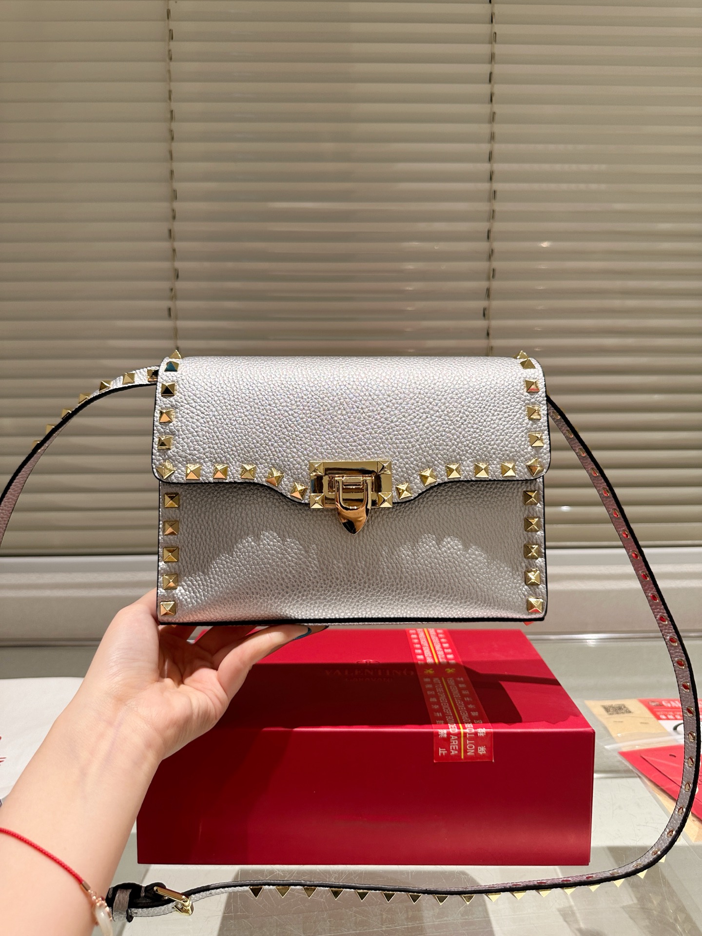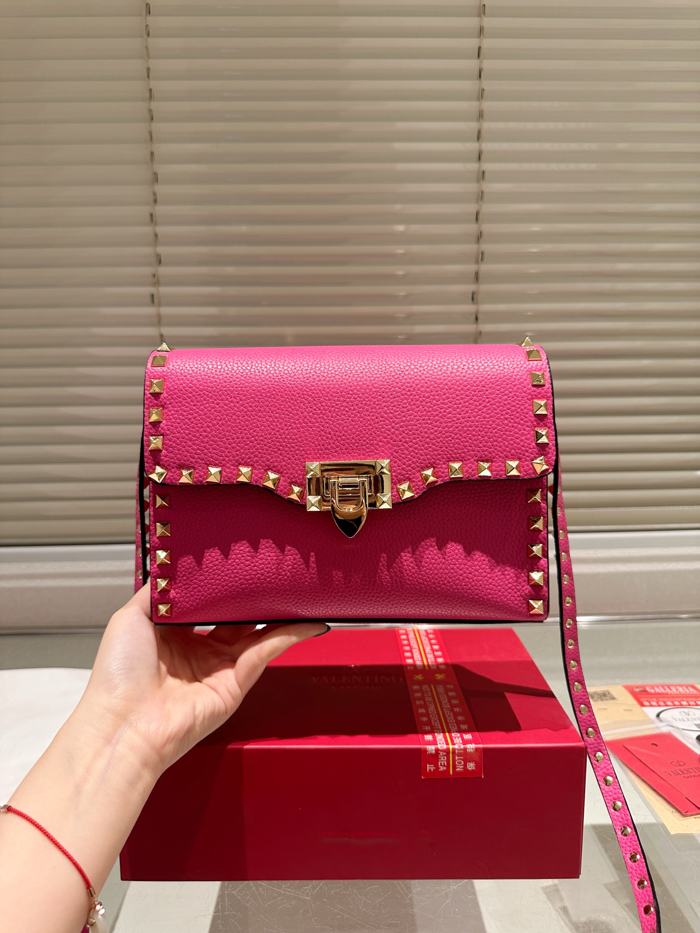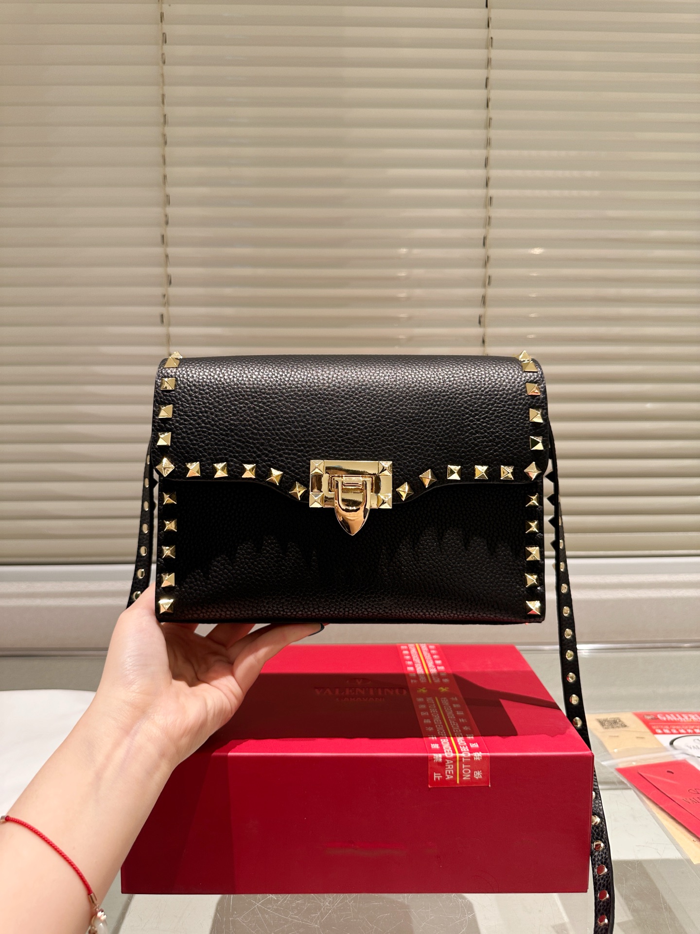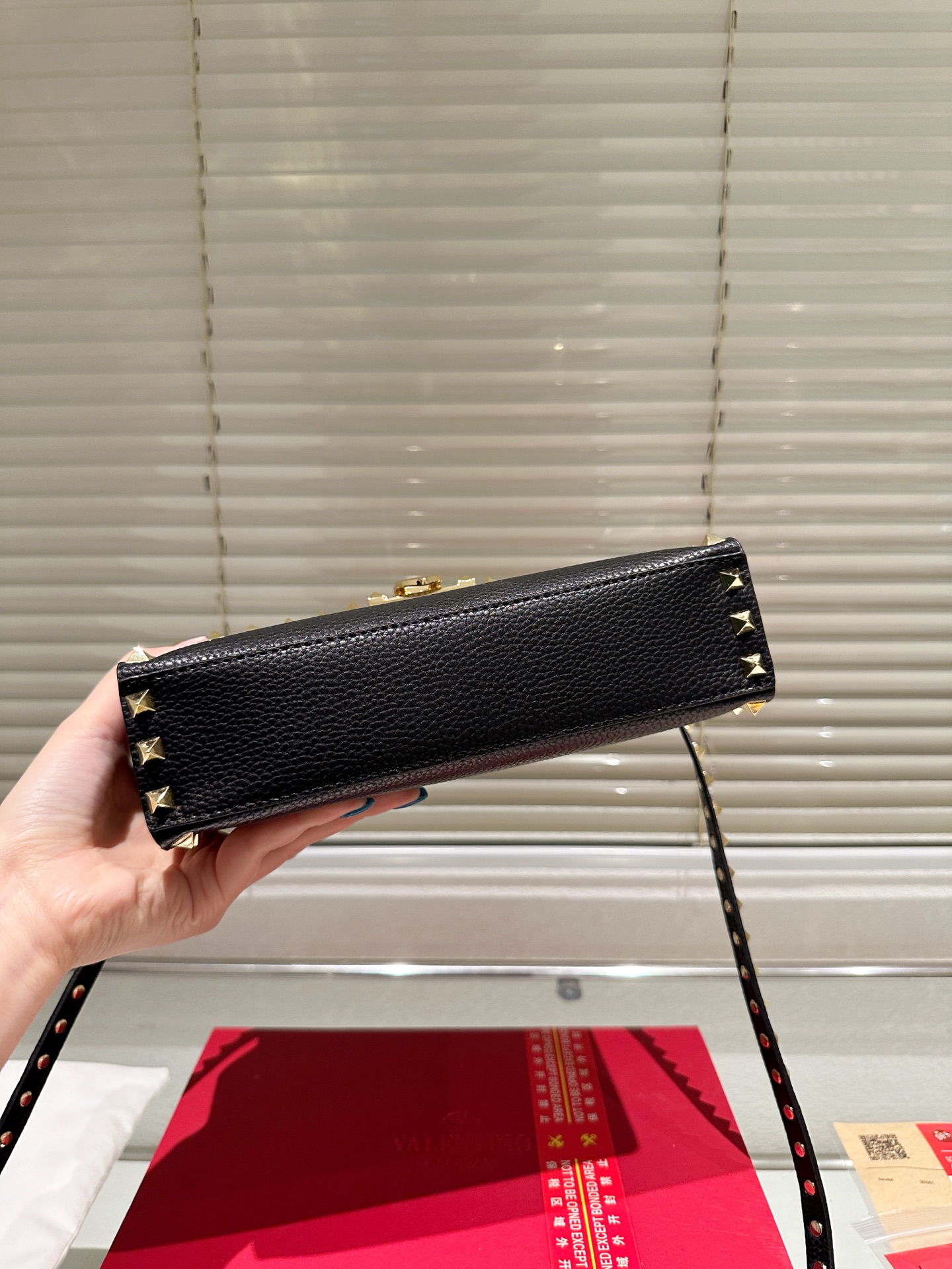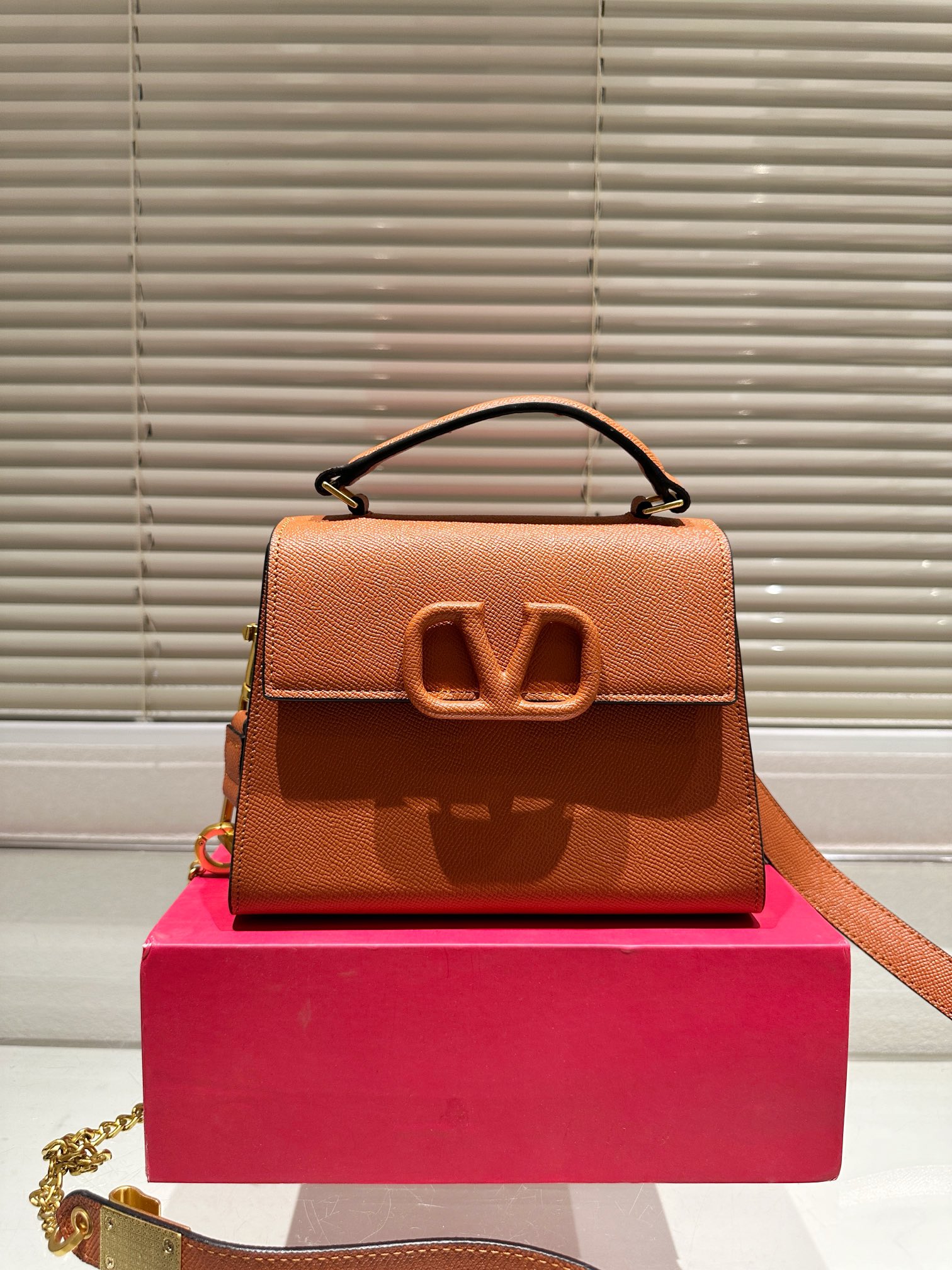 Valentino Grainy Leather Leather-Covered V-Logo Satchel Trapeze Handle Shoulder Bags