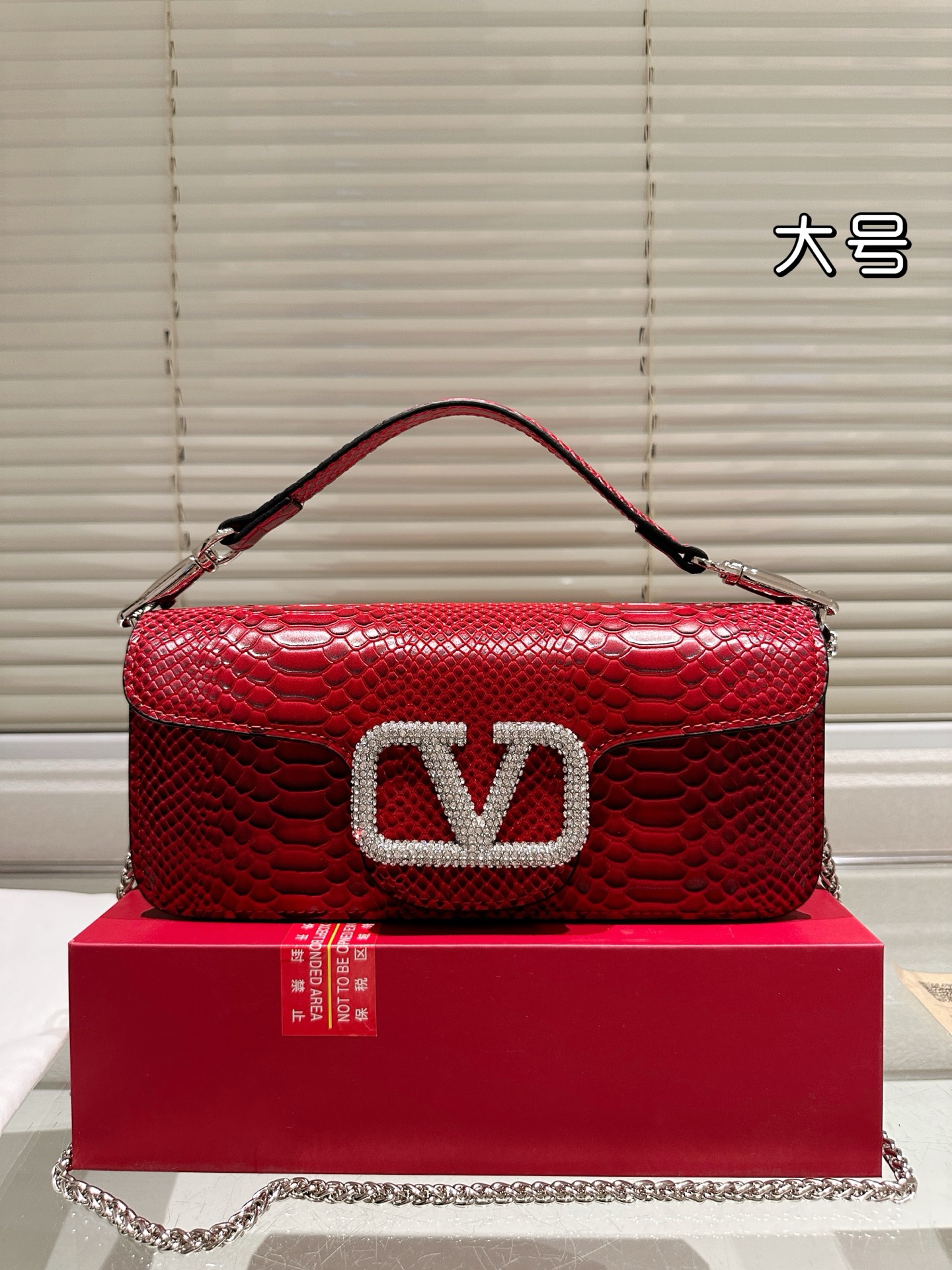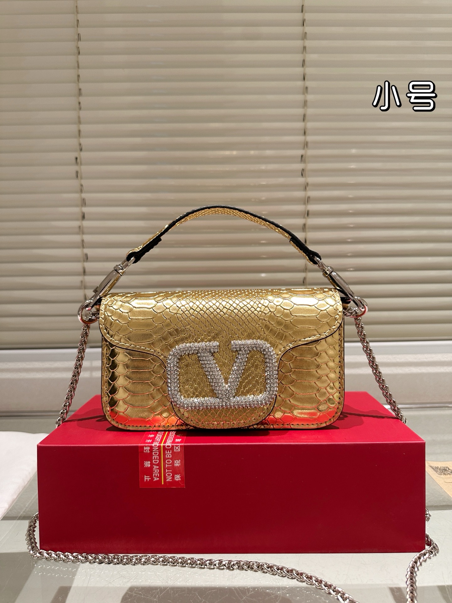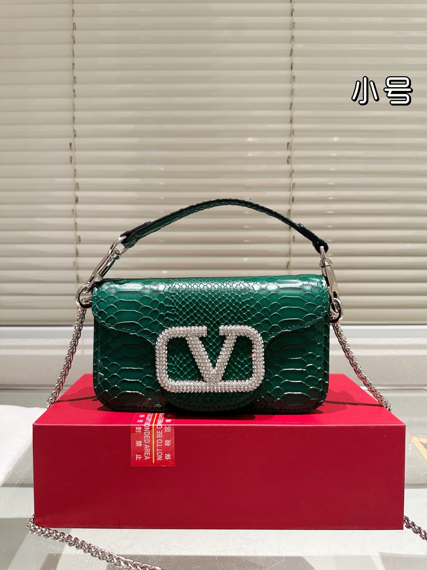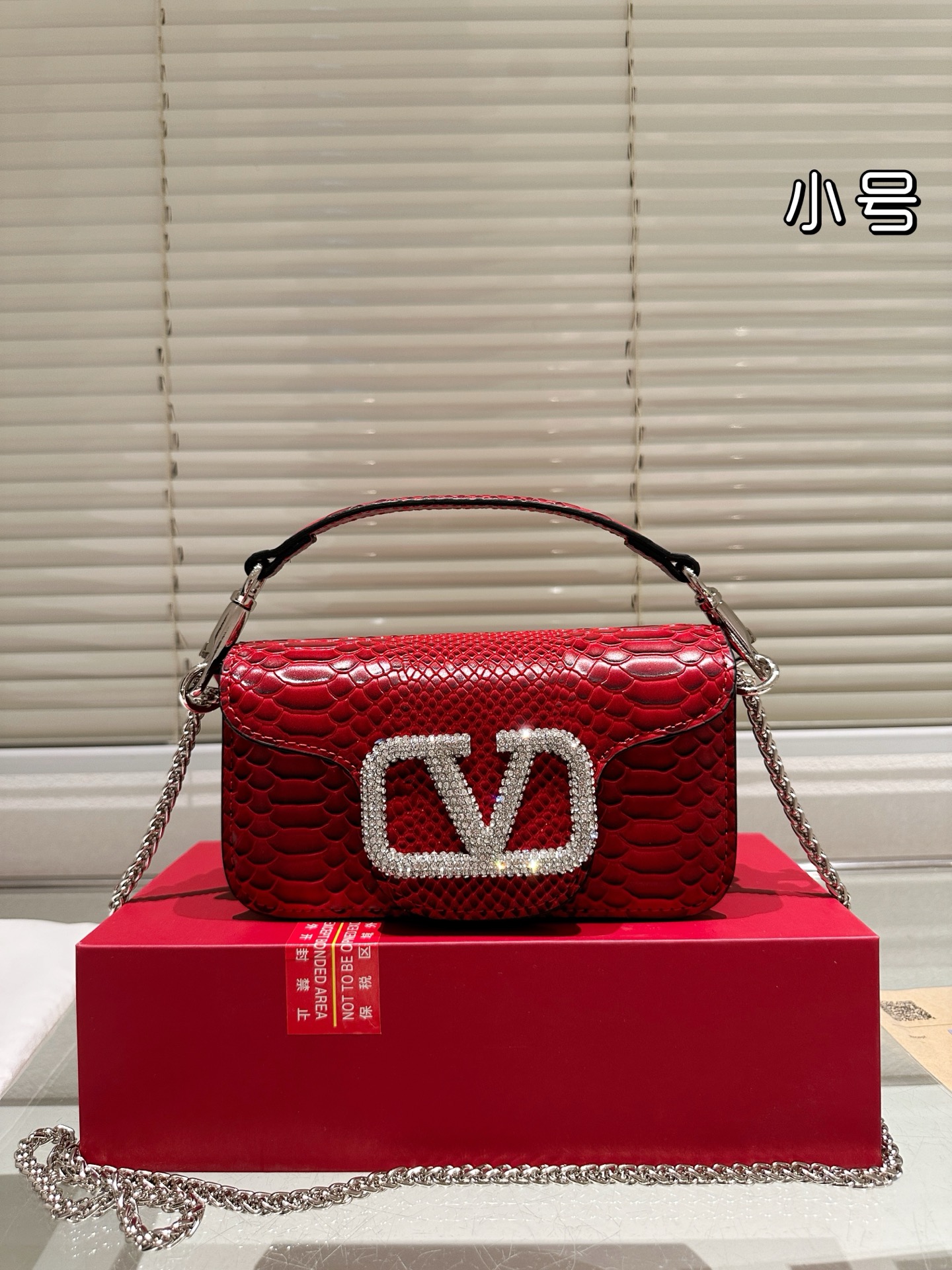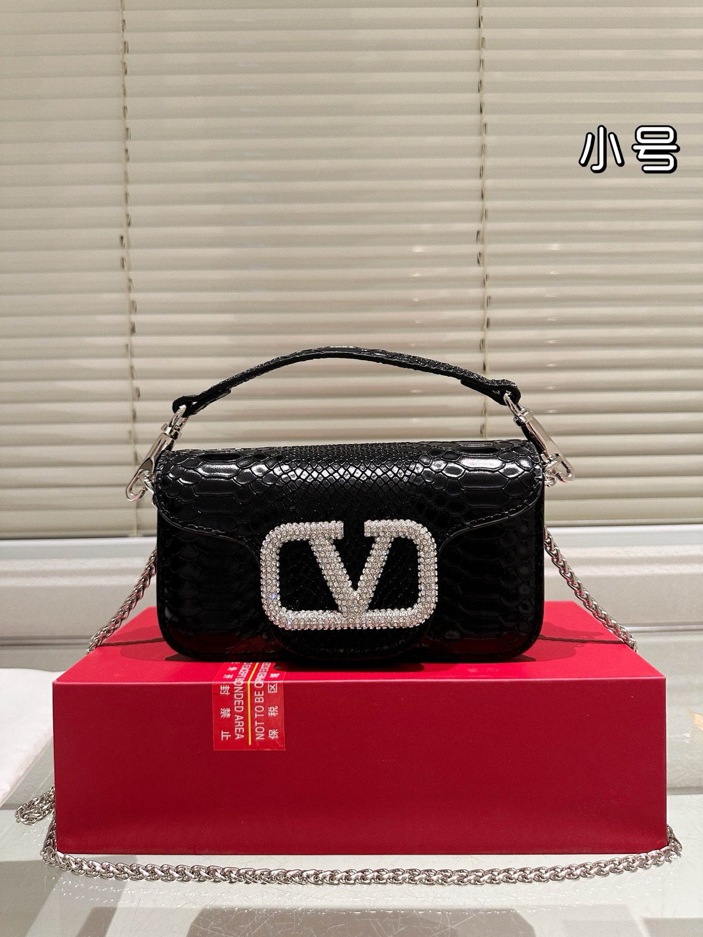 Valentino Garavani Locò Small & Medium Python Crystal V-Logo Rectangular Bling Shoulder Bag
