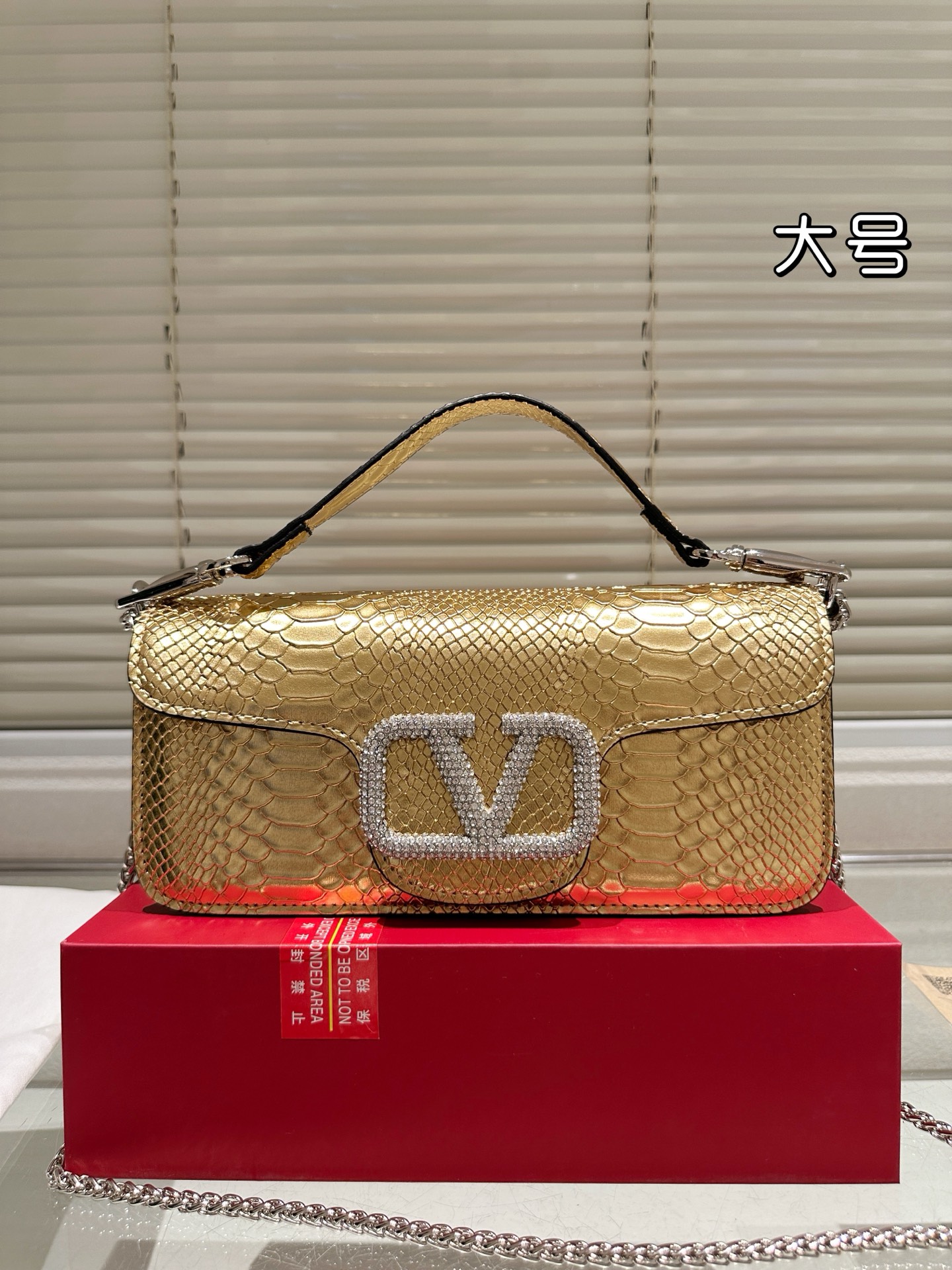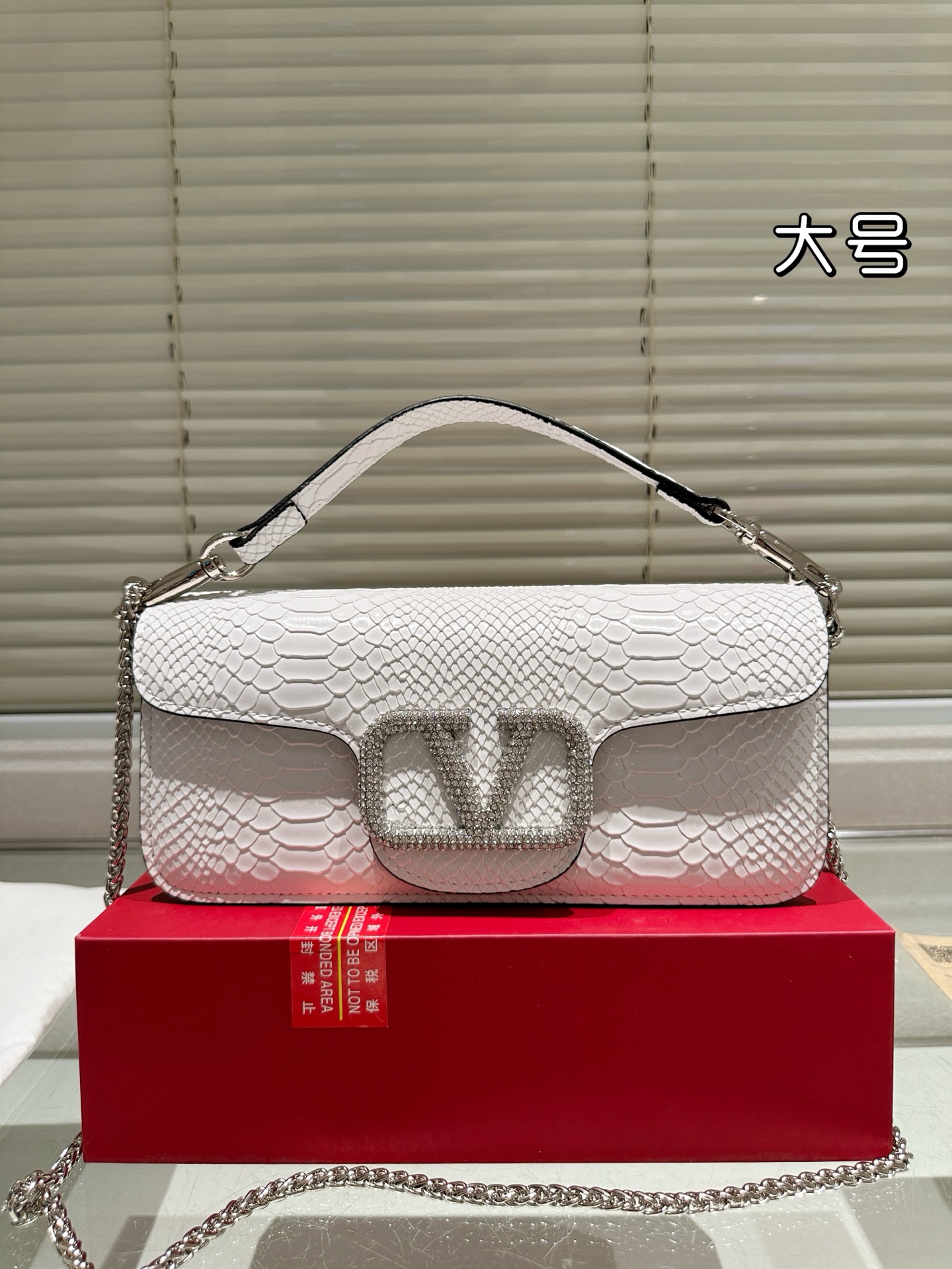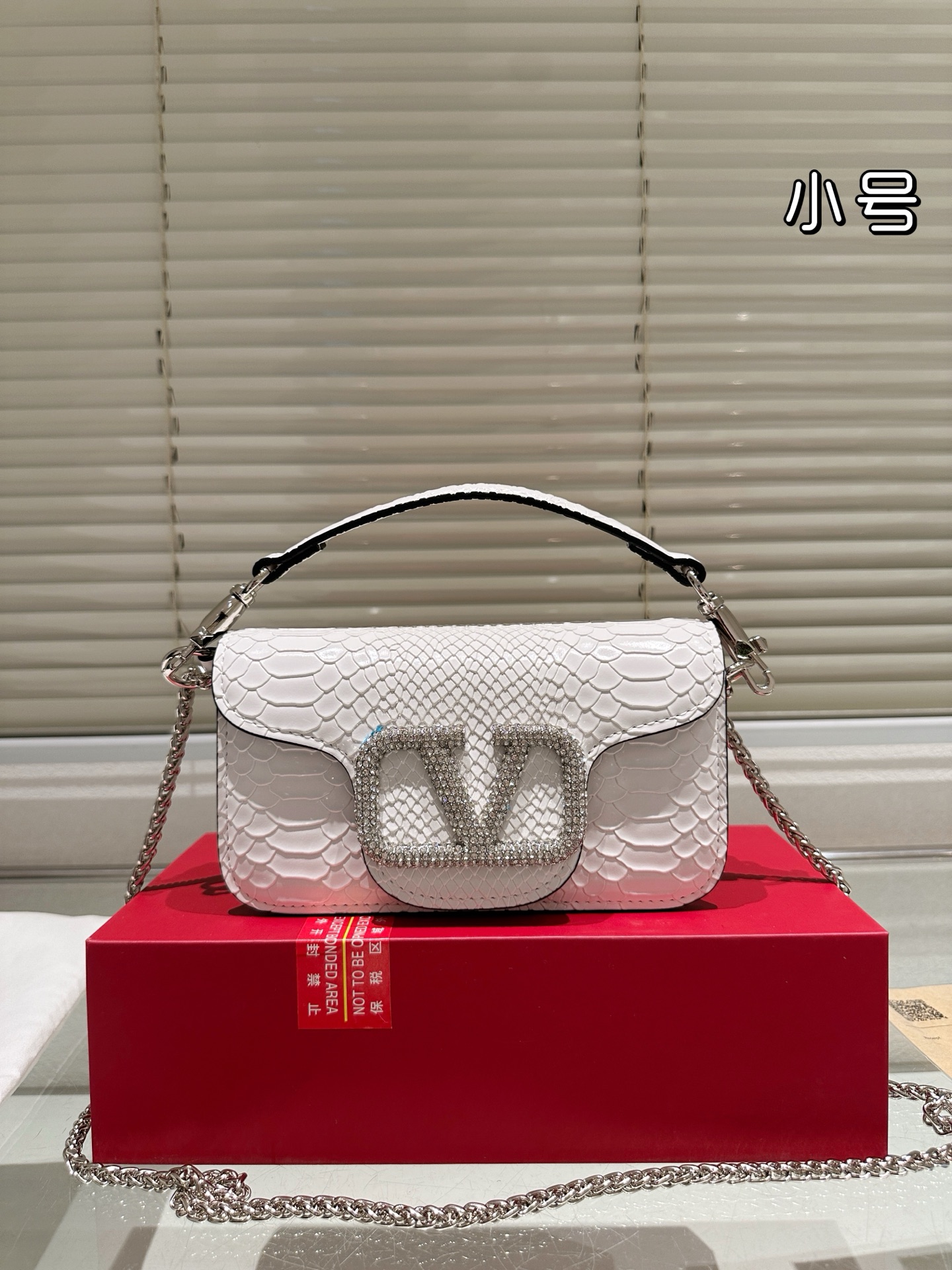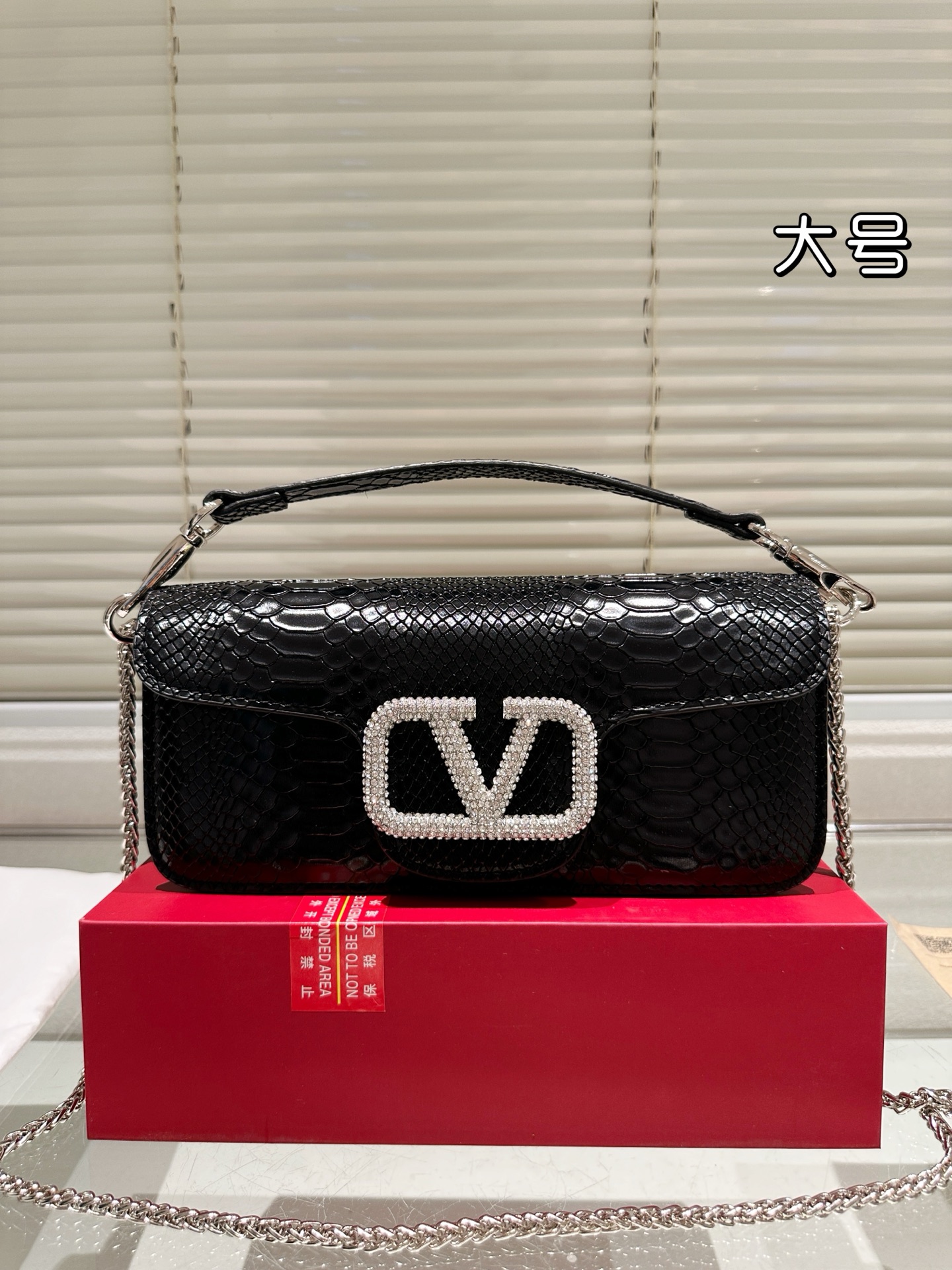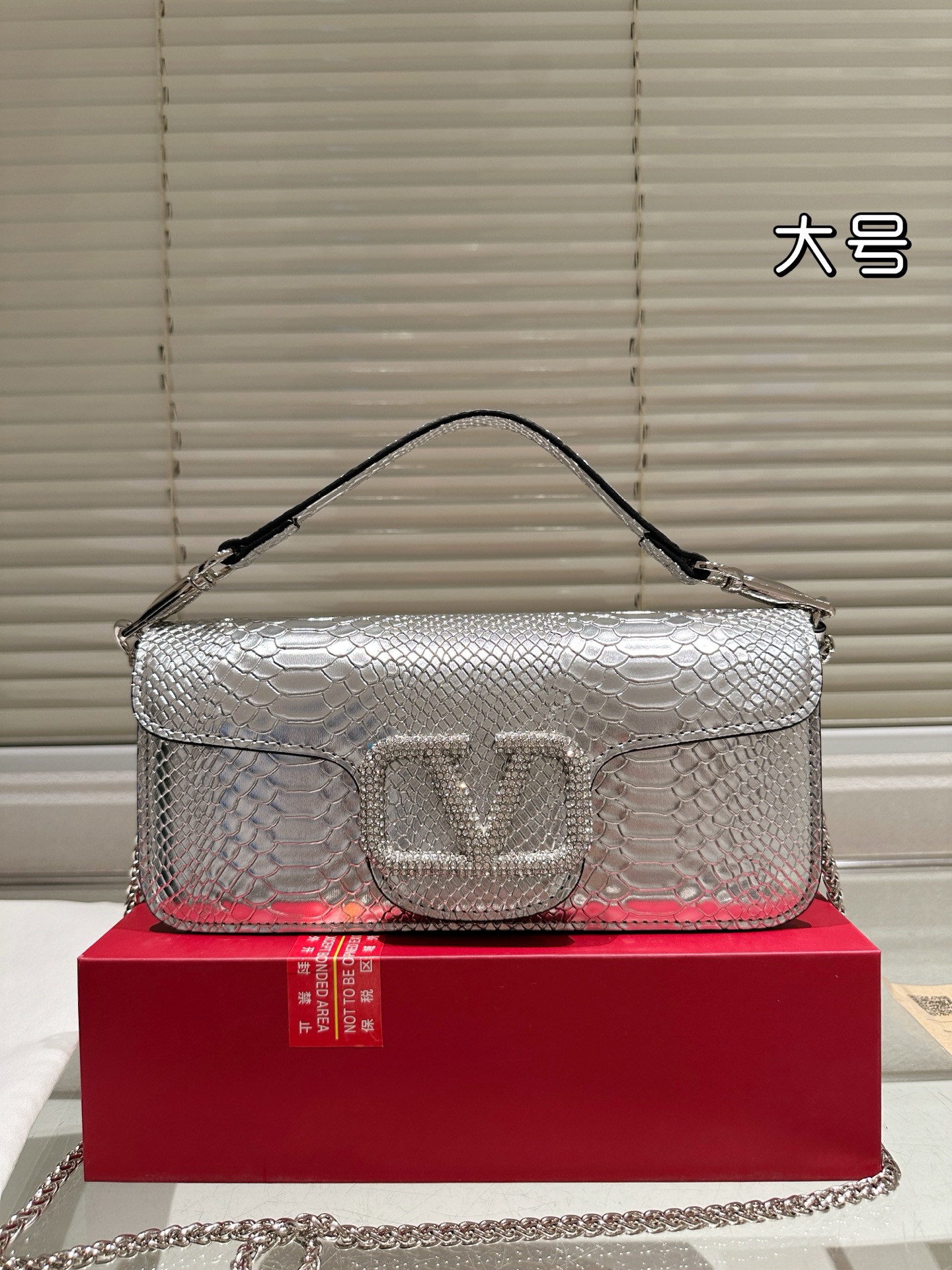 Valentino Garavani Locò Small & Medium Python Crystal V-Logo Rectangular Bling Shoulder Bag