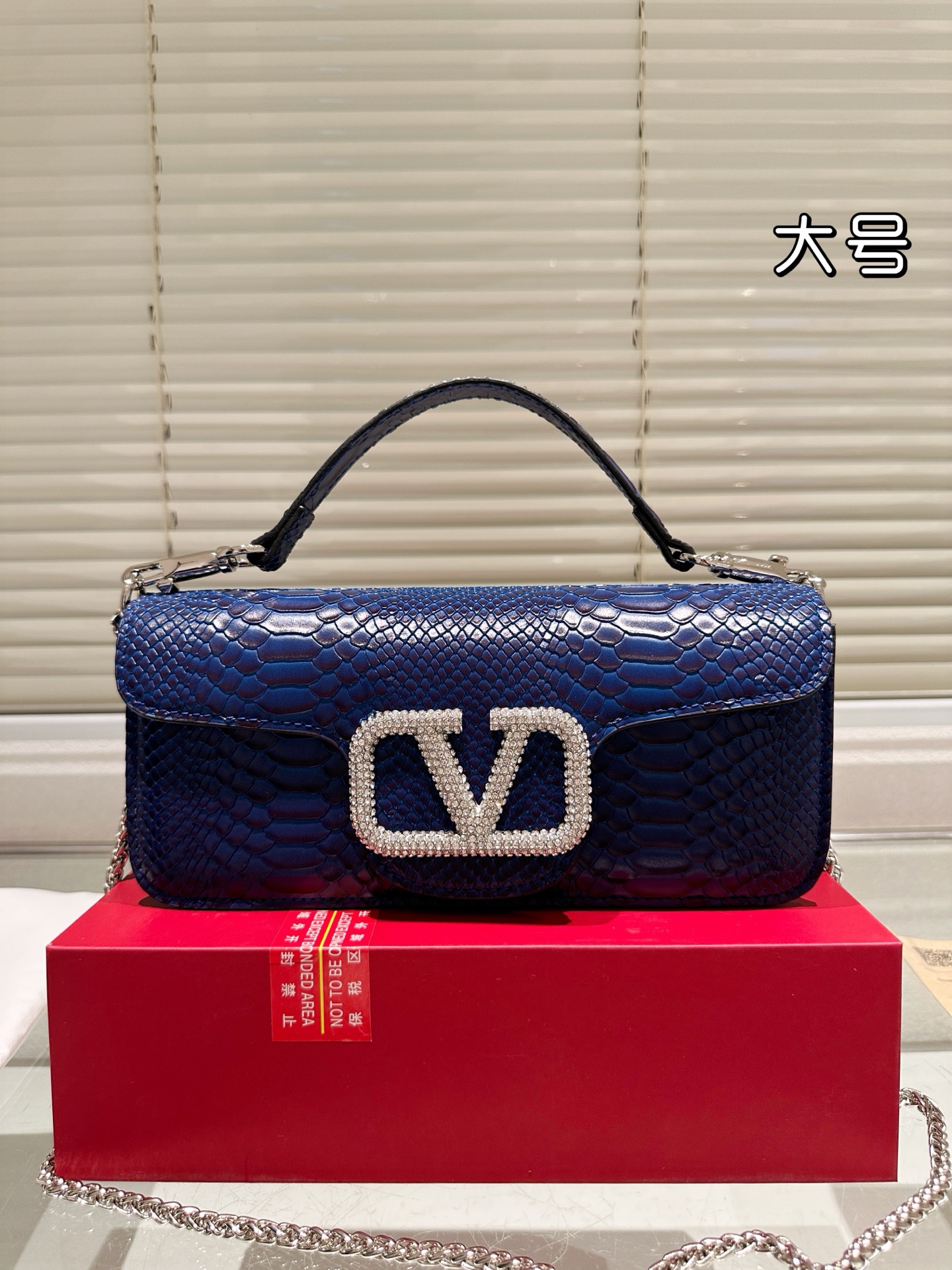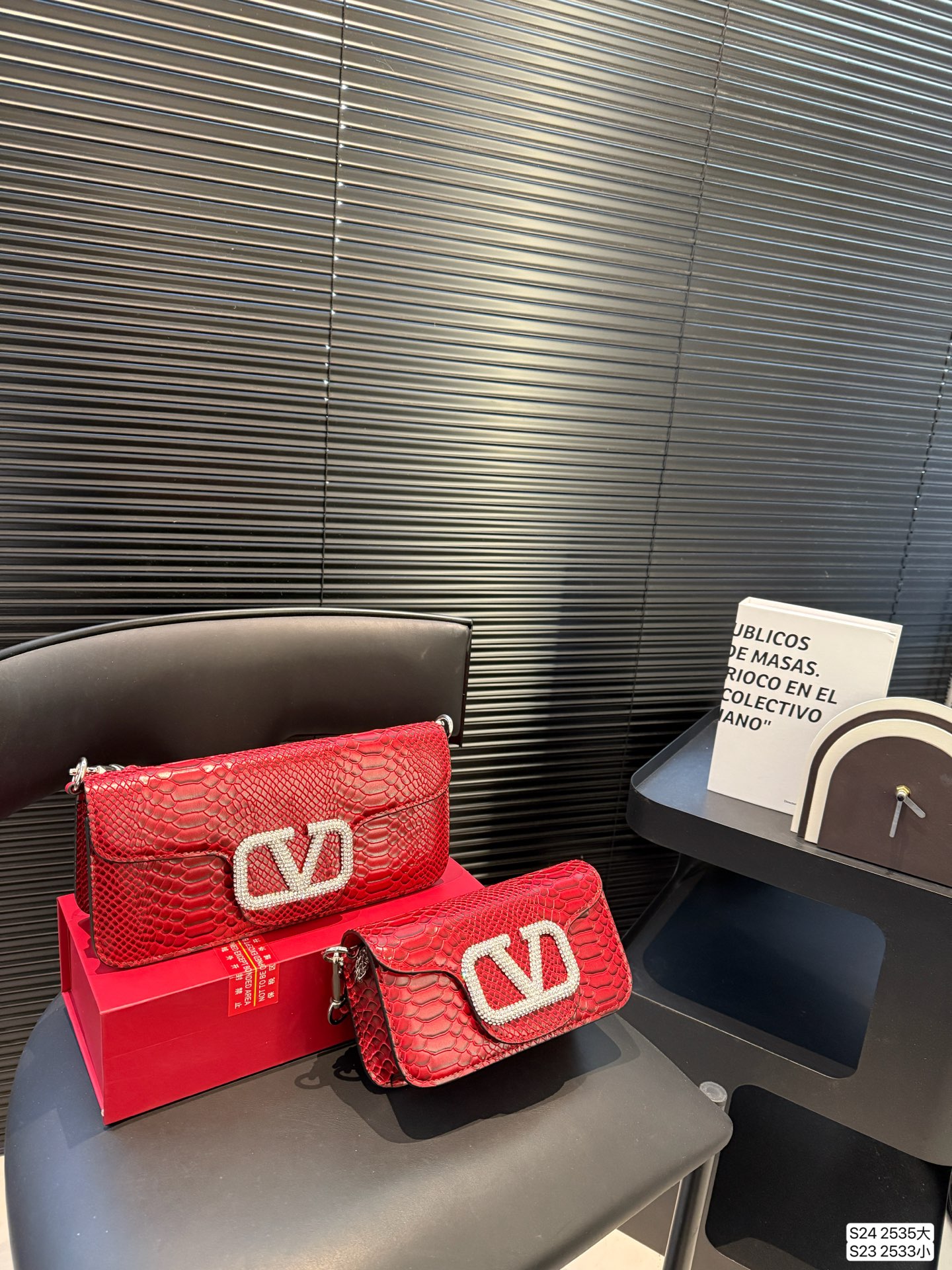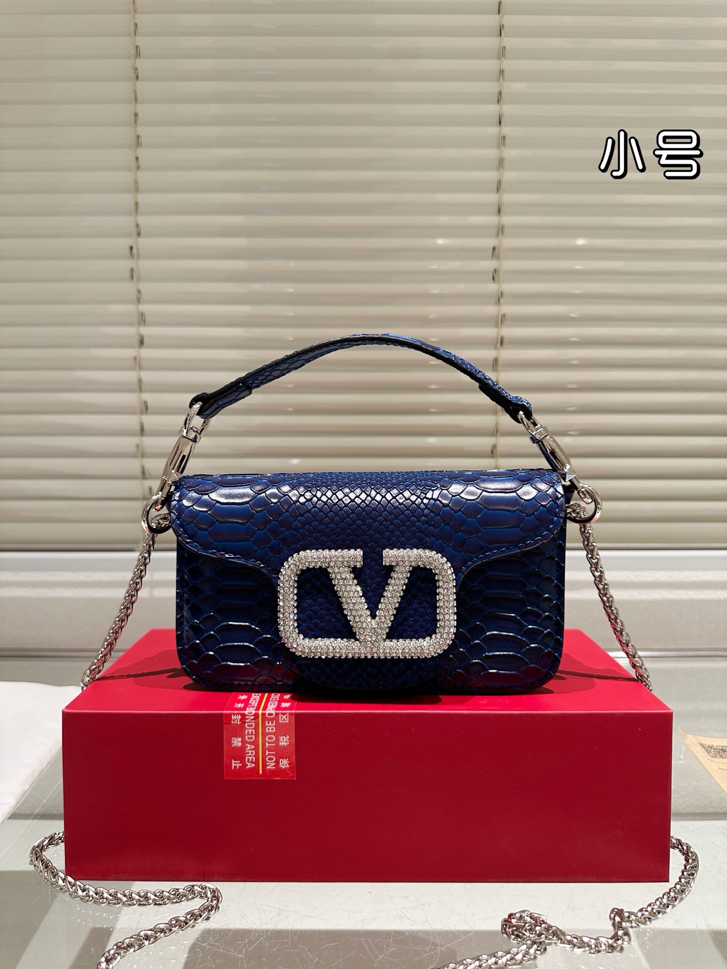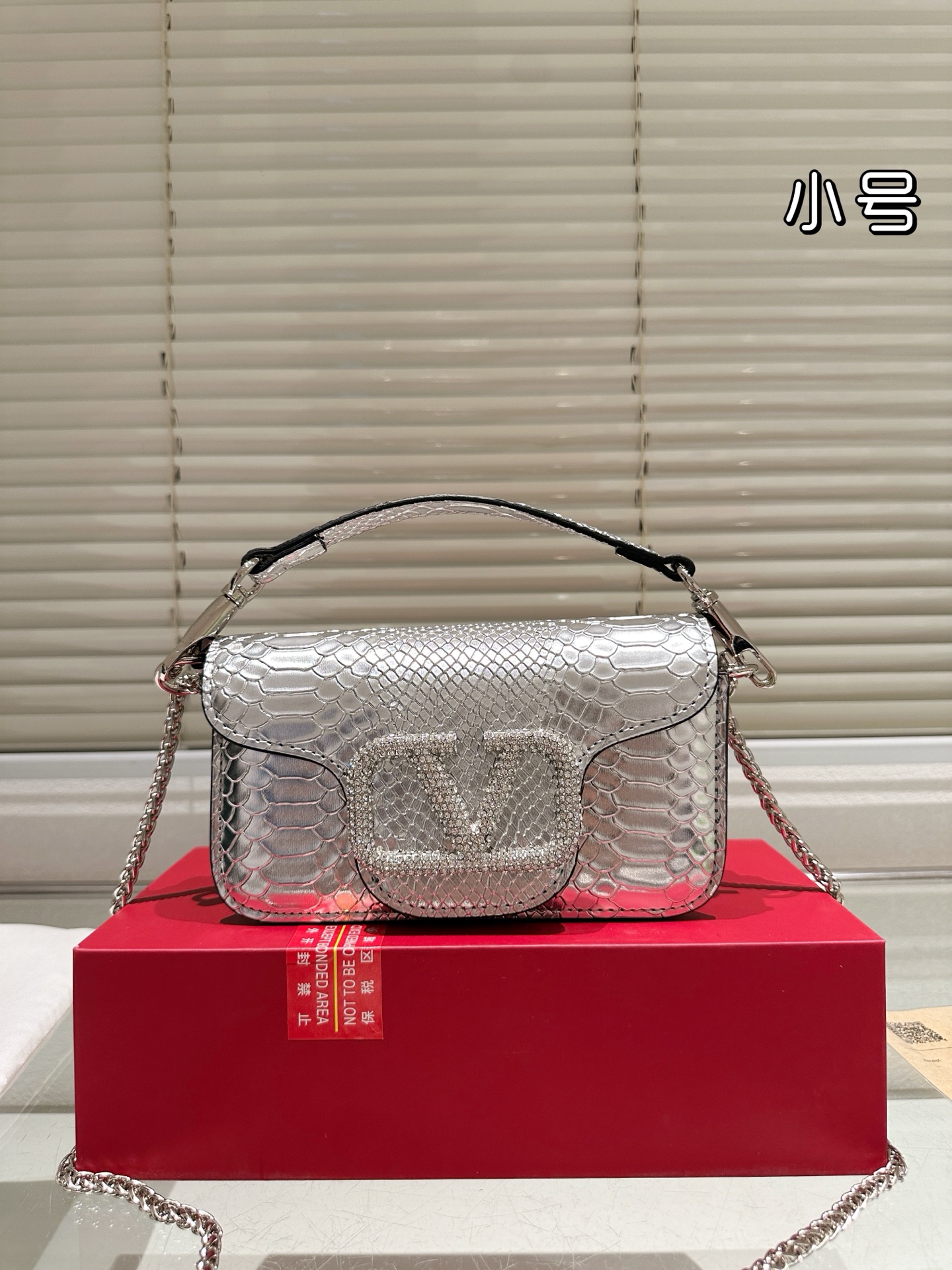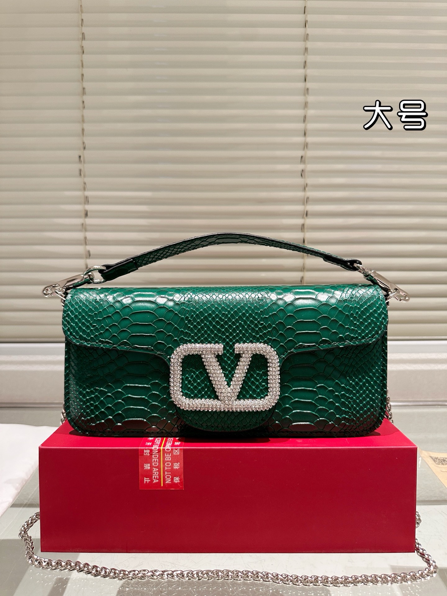 Valentino Garavani Locò Small & Medium Python Crystal V-Logo Rectangular Bling Shoulder Bag