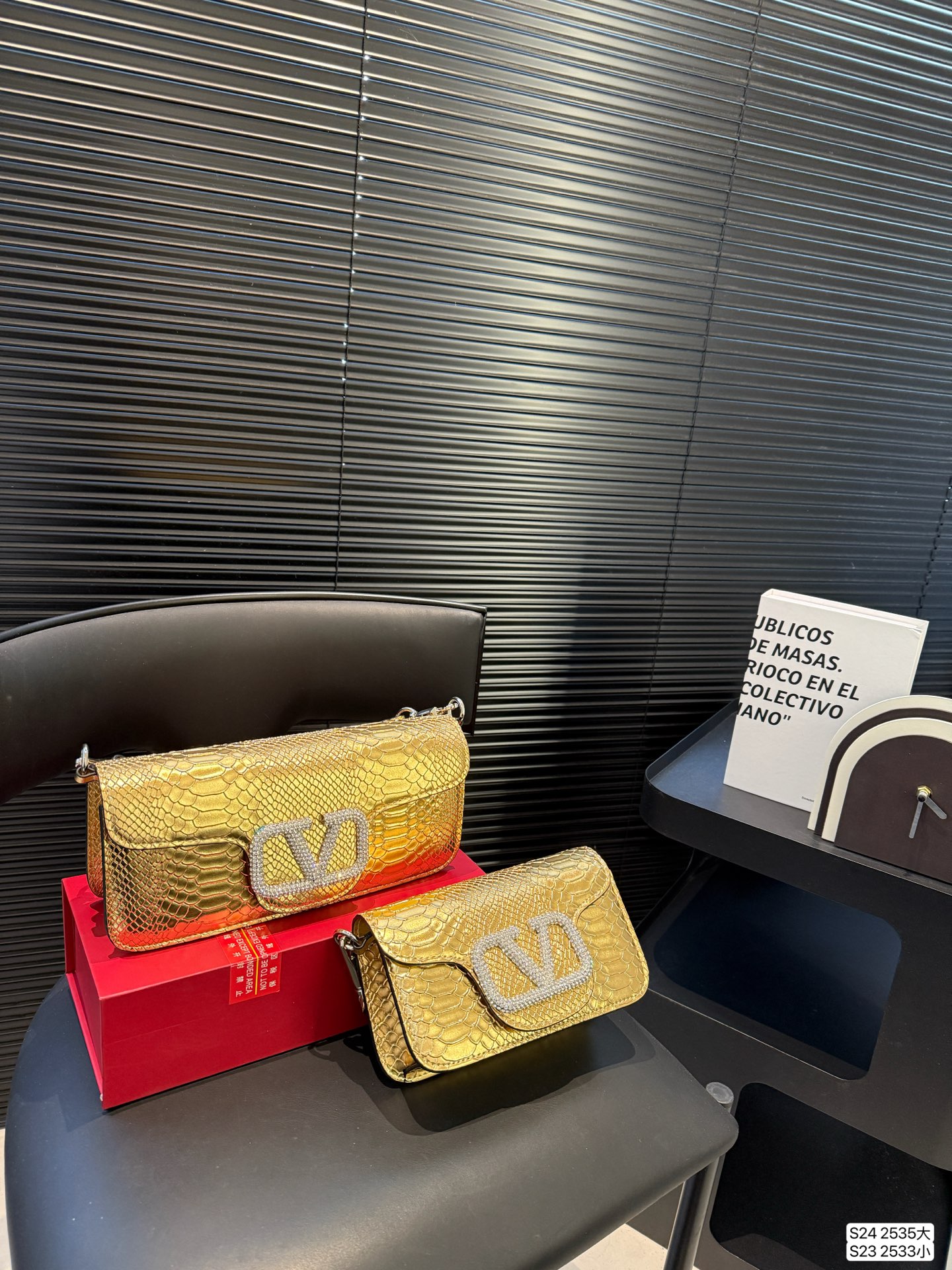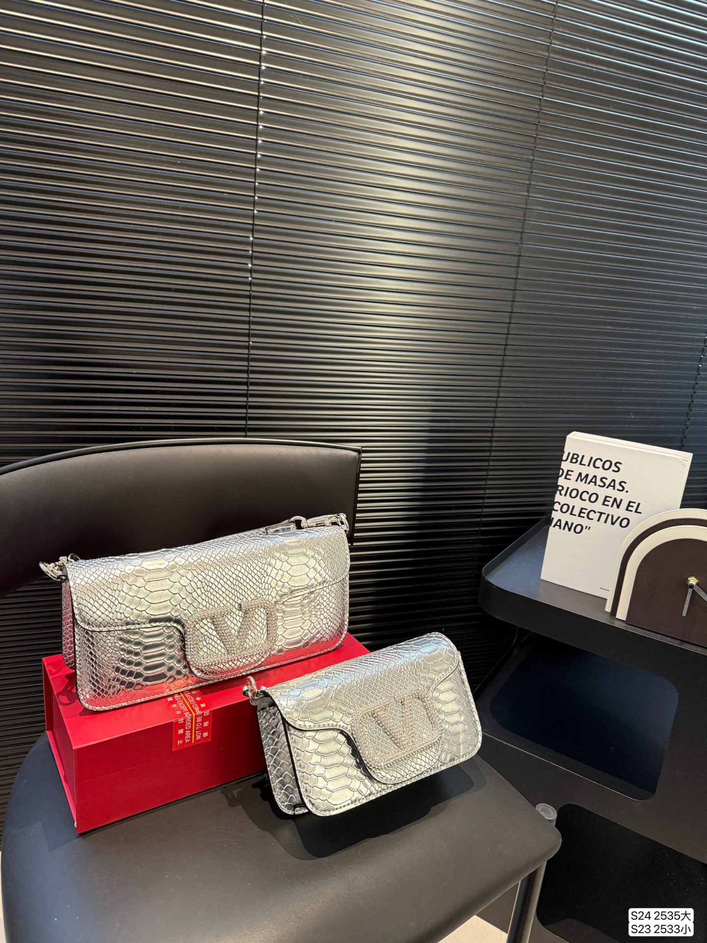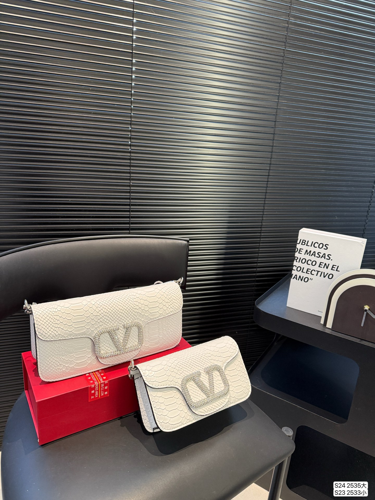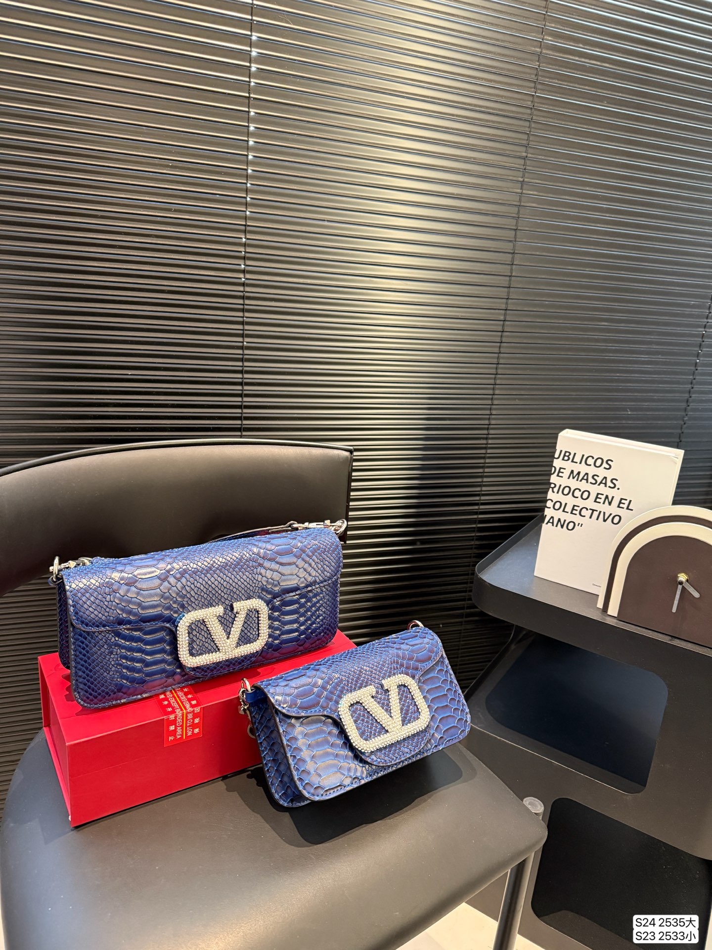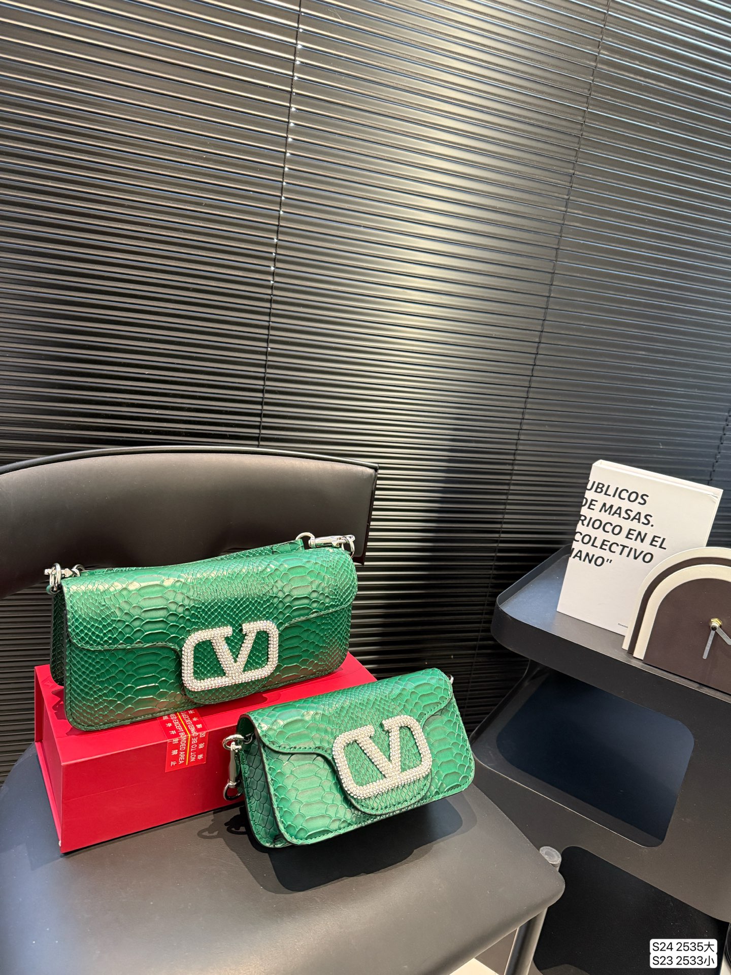 Valentino Garavani Locò Small & Medium Python Crystal V-Logo Rectangular Bling Shoulder Bag