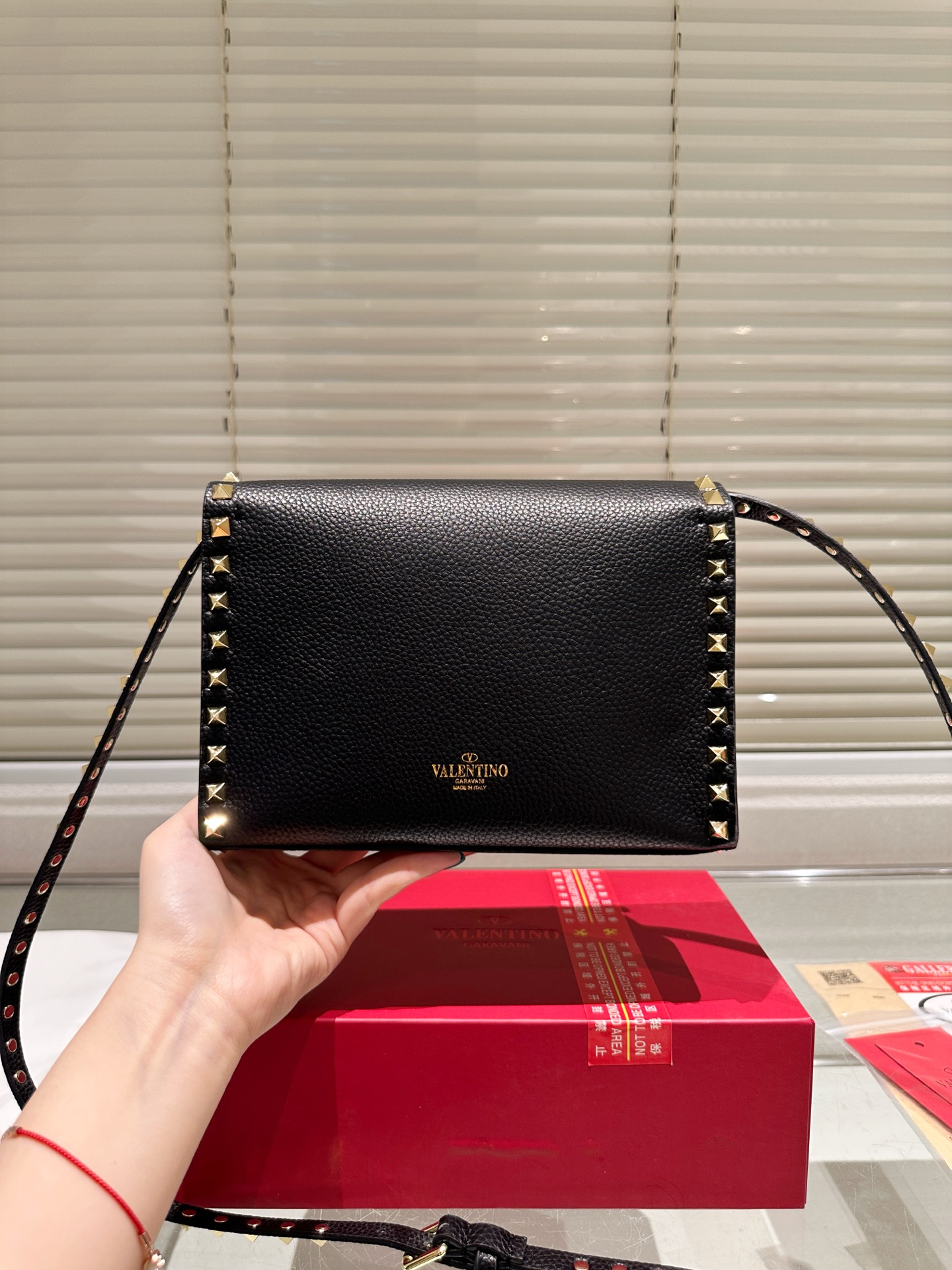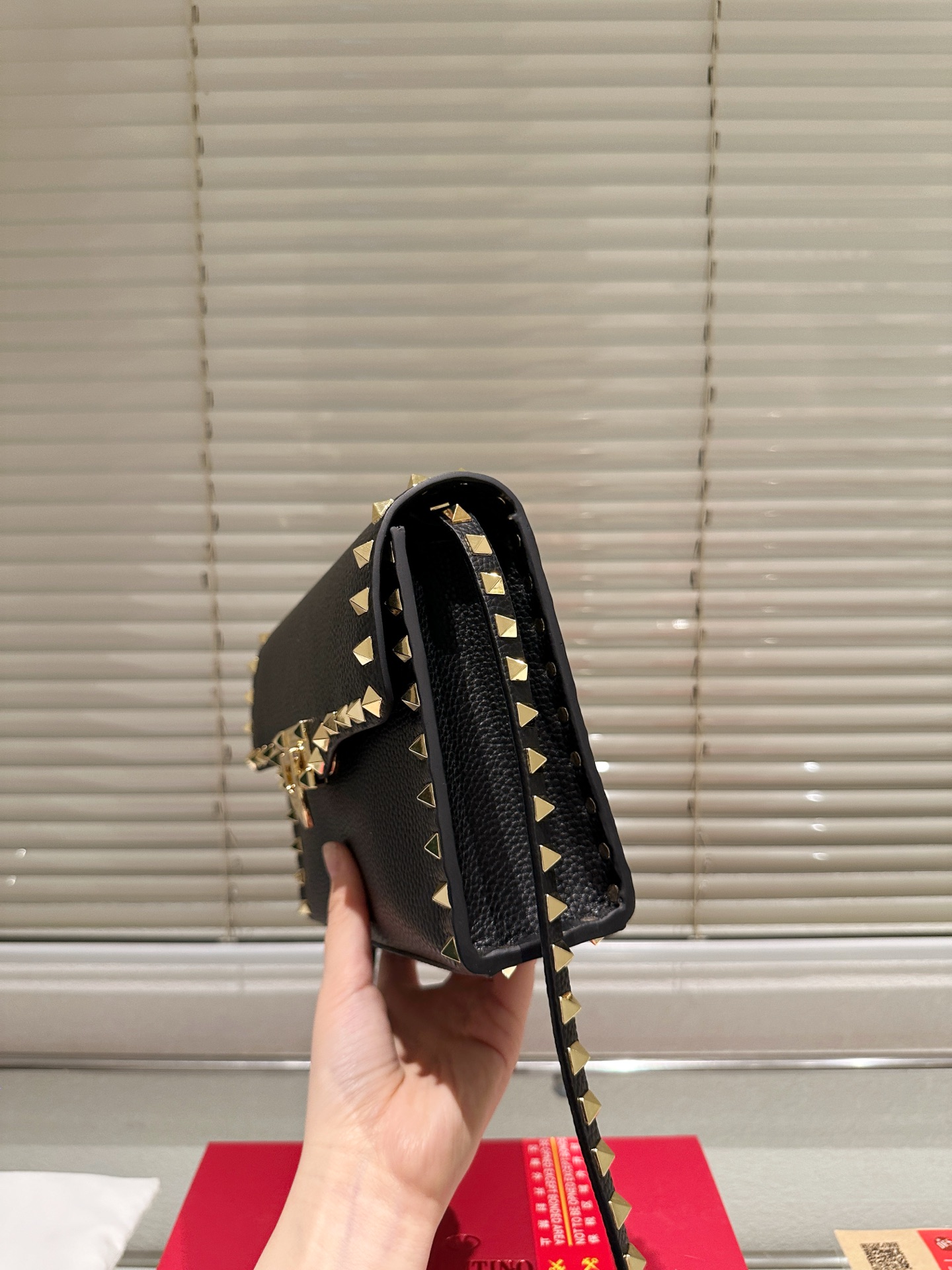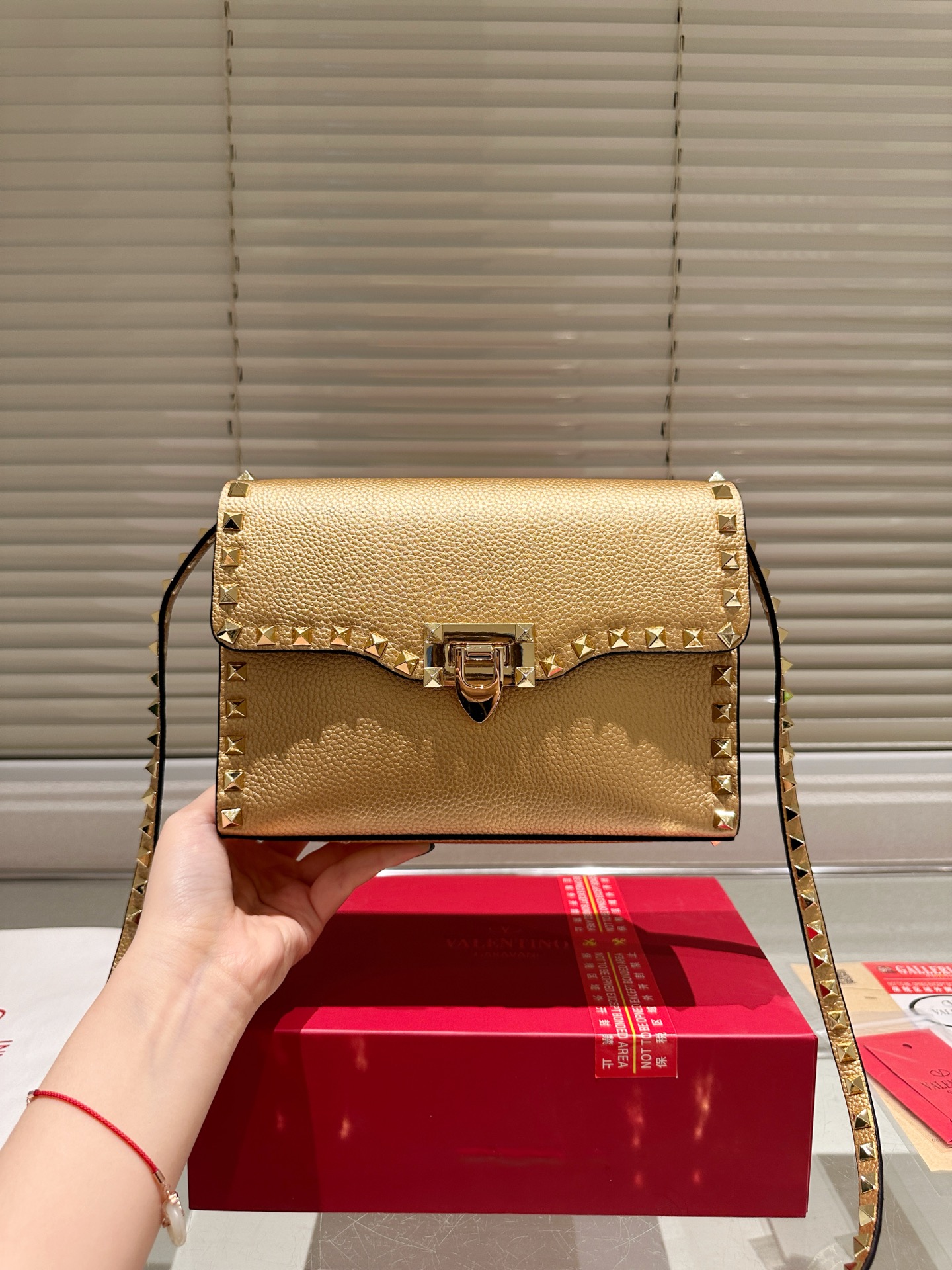 Valentino Grained Leather Gold-tone Rockstud Trim Studded Gold Flap Envelope Crossbody Bag