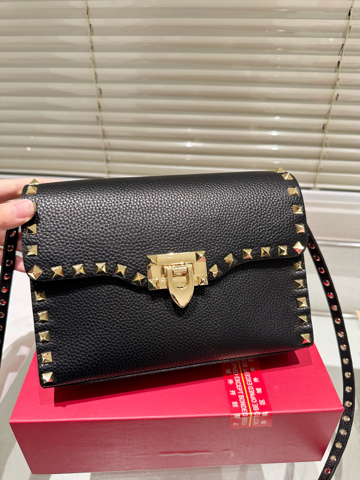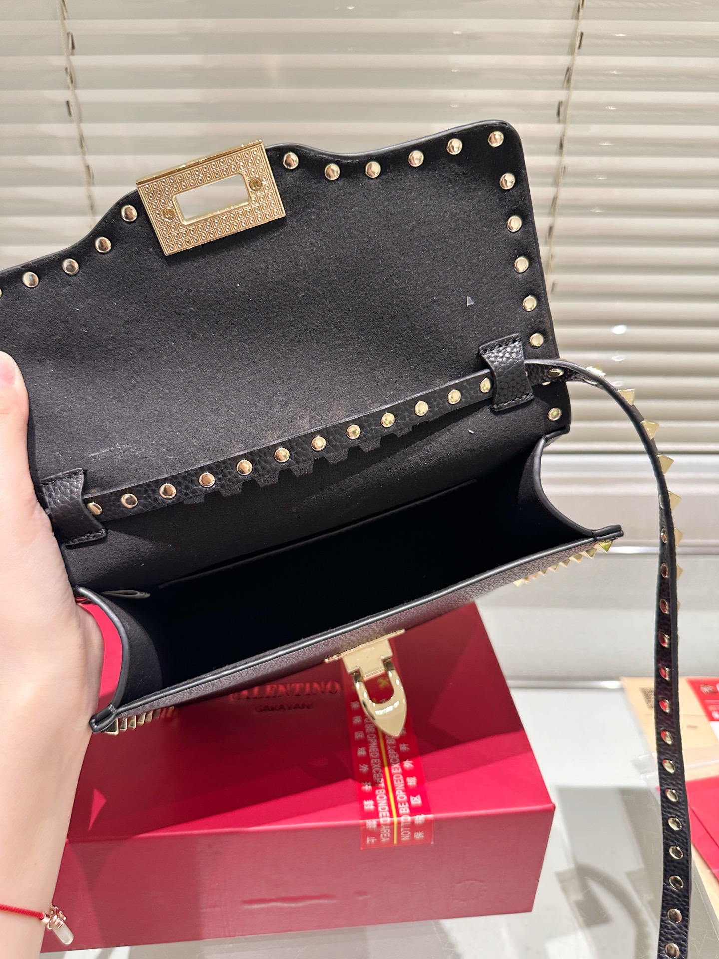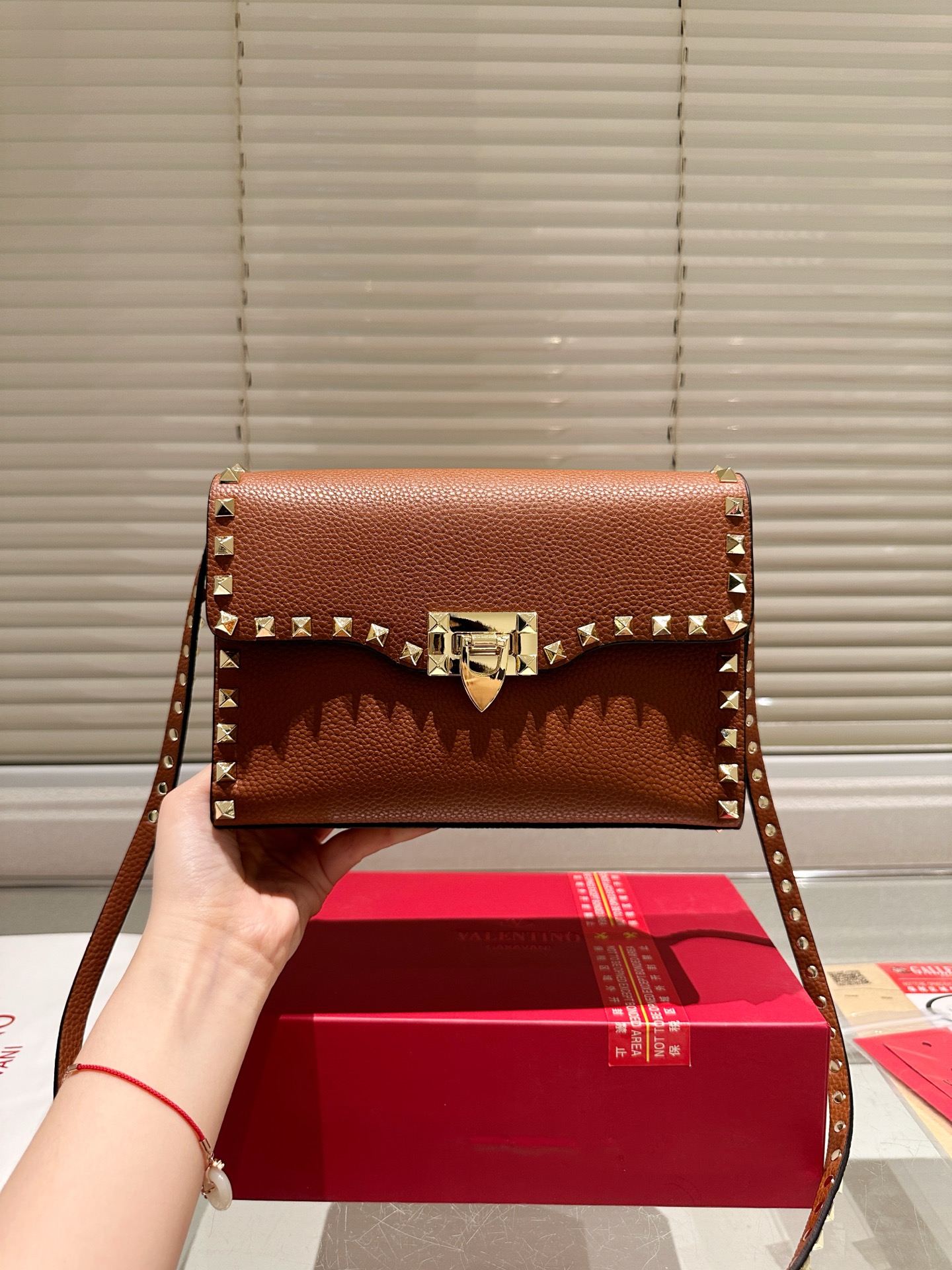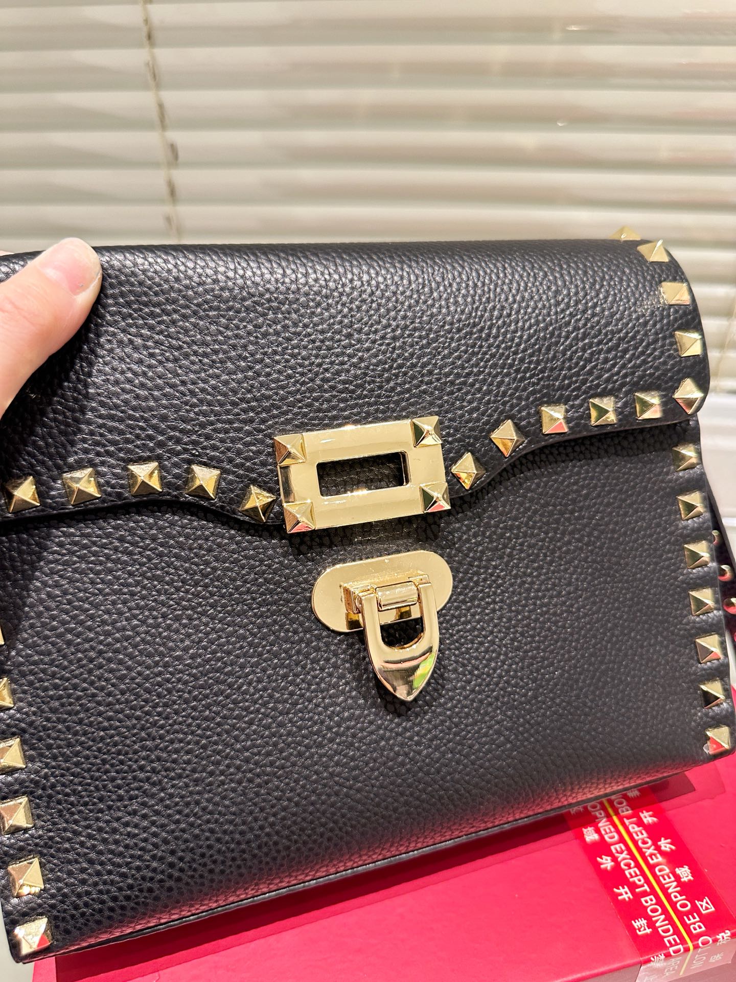 Valentino Grained Leather Gold-tone Rockstud Trim Studded Gold Flap Envelope Crossbody Bag