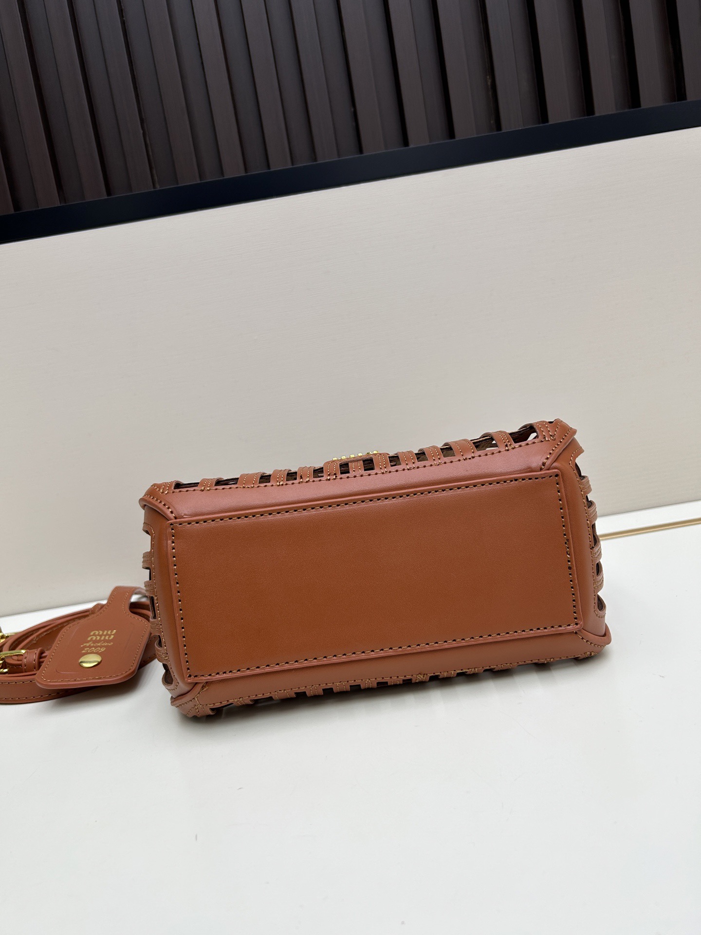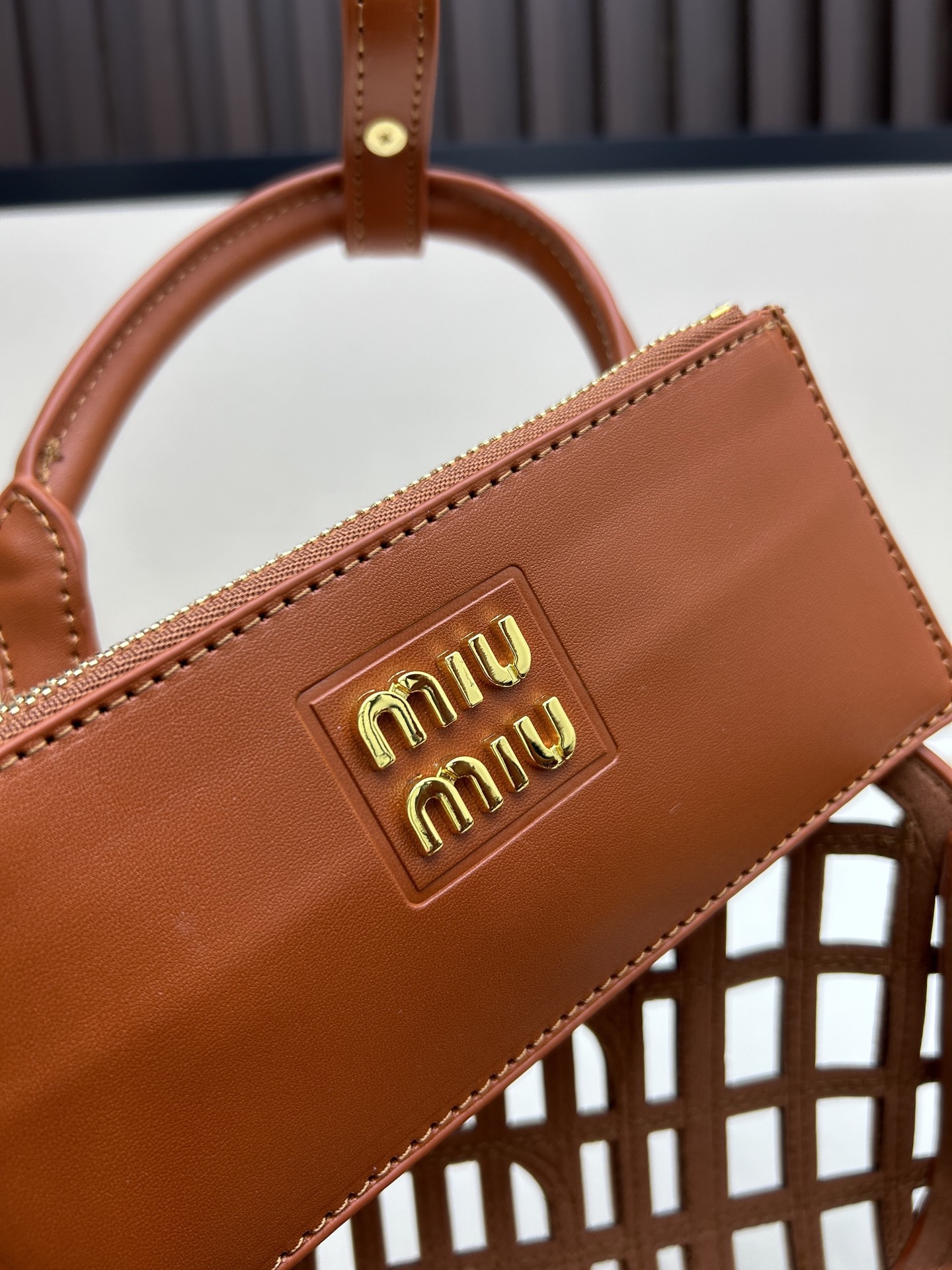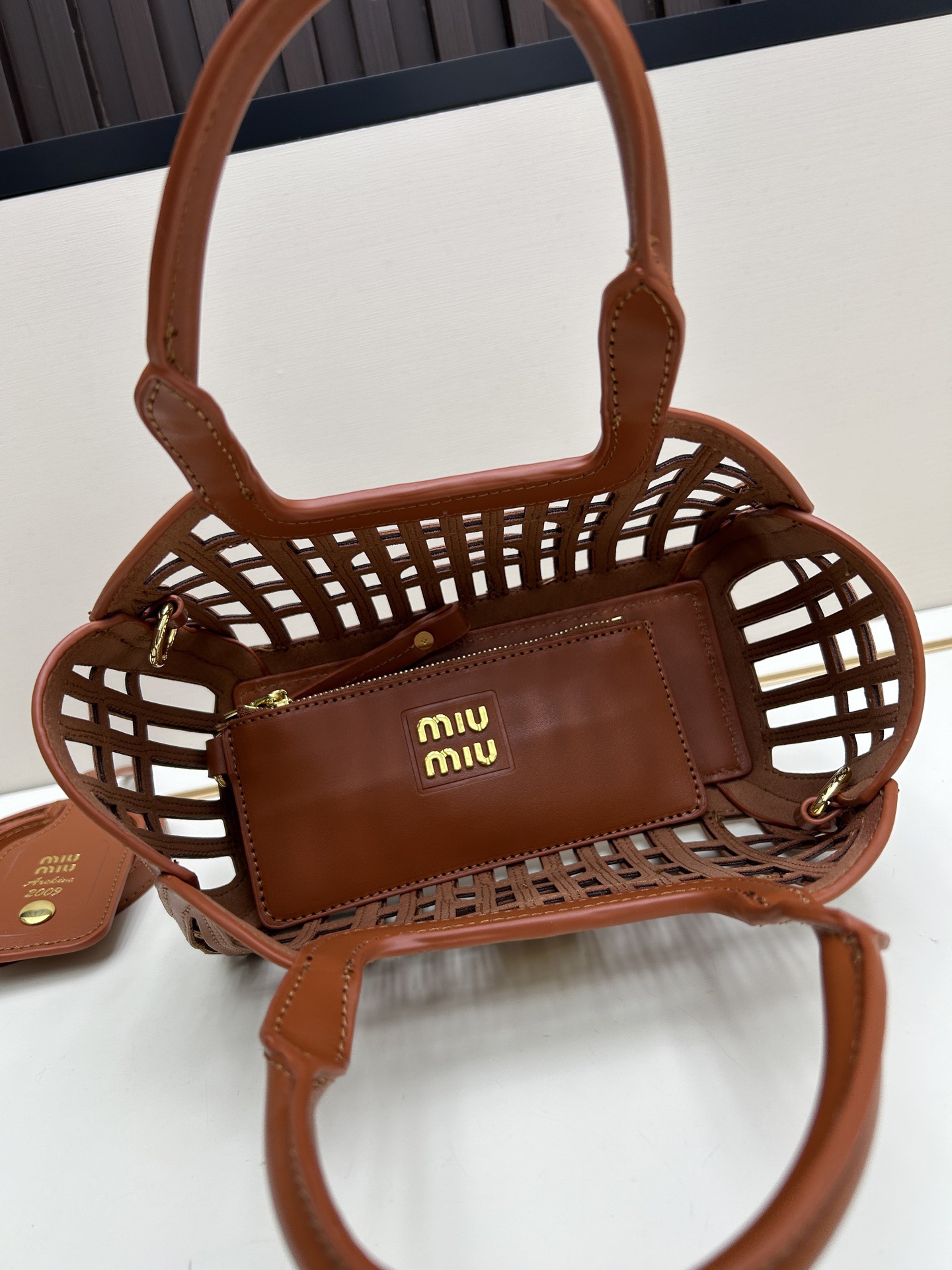 Miu Miu Brown Woven Grid Cutout Leather Tote Bag