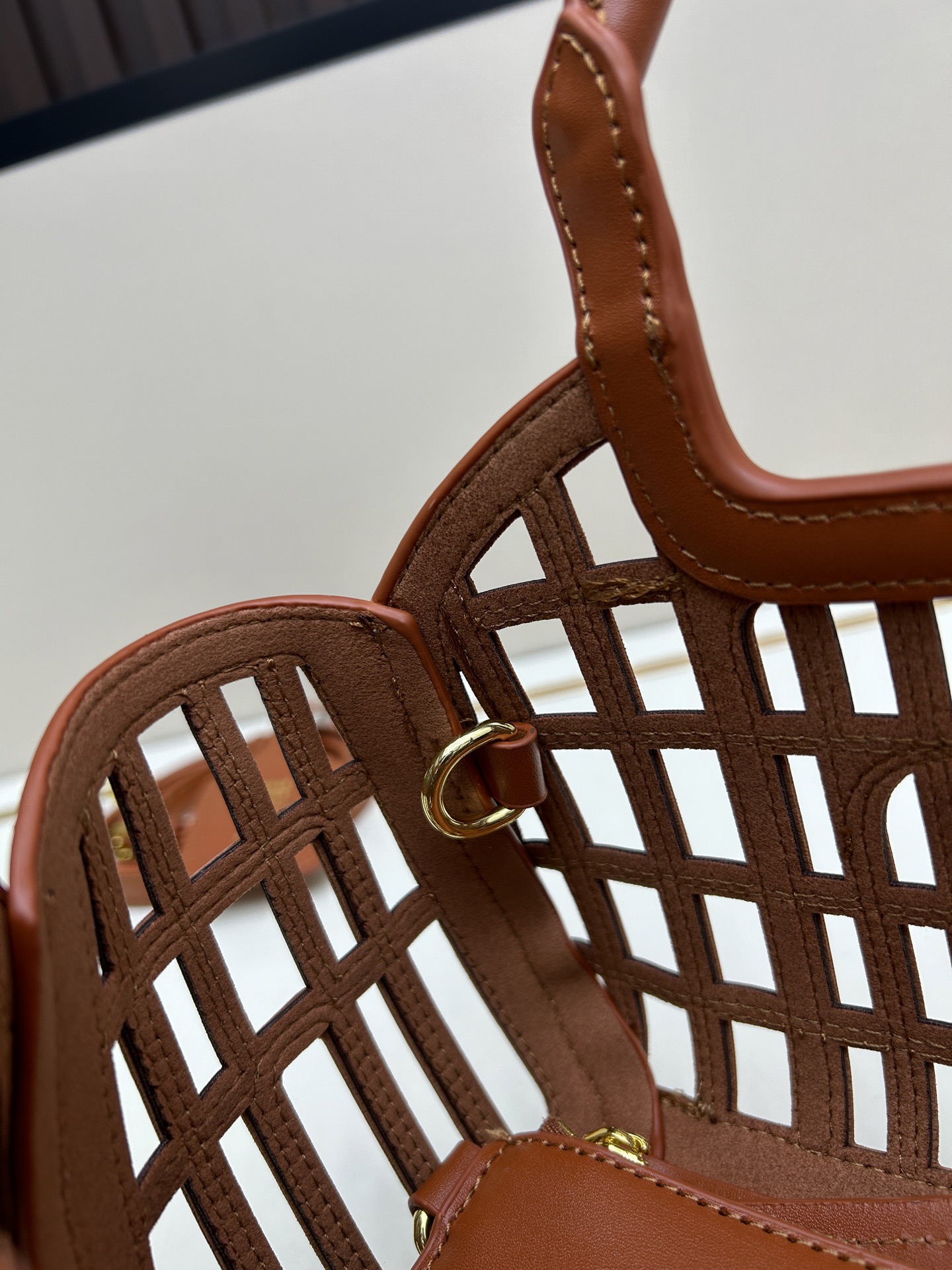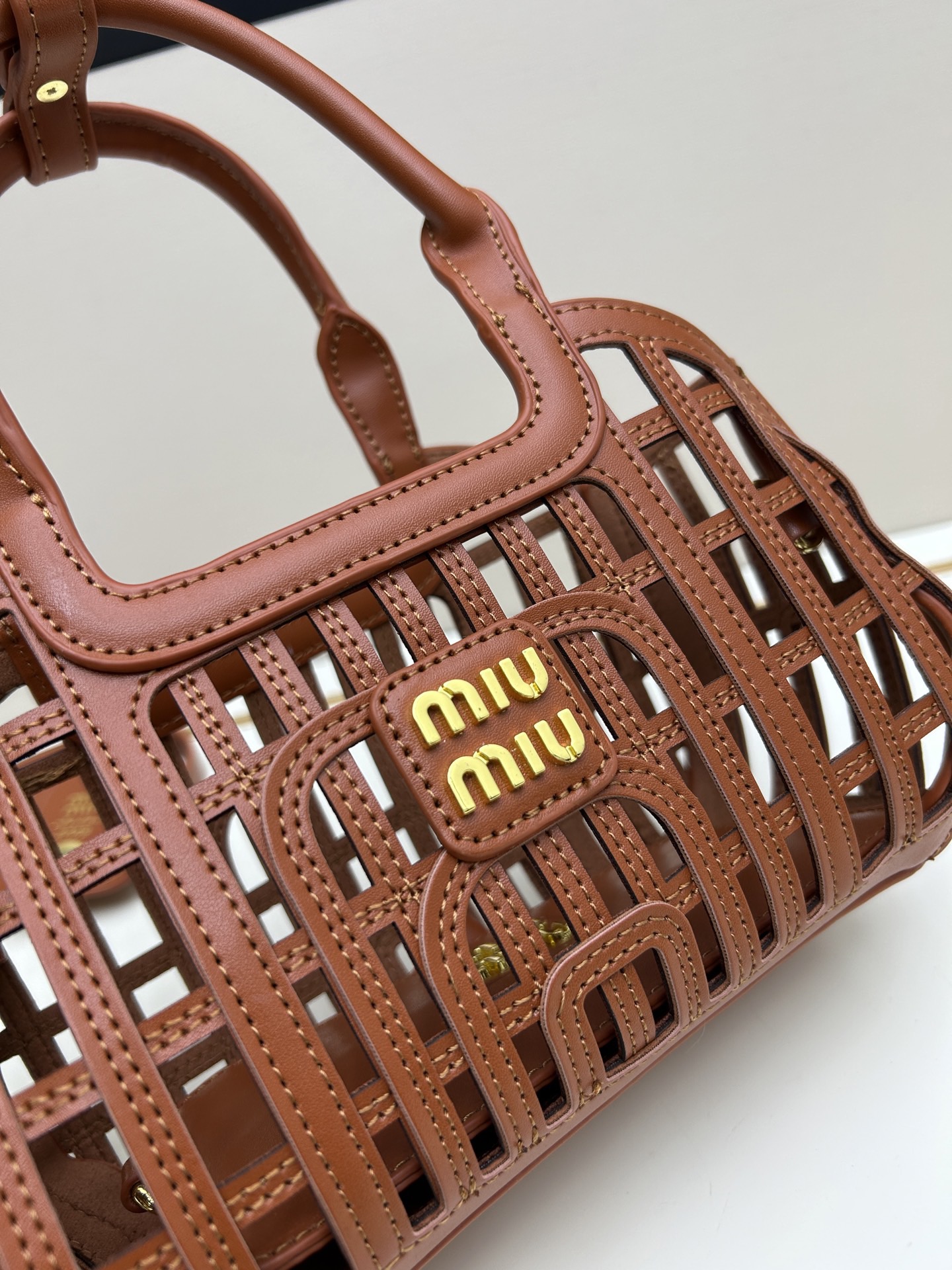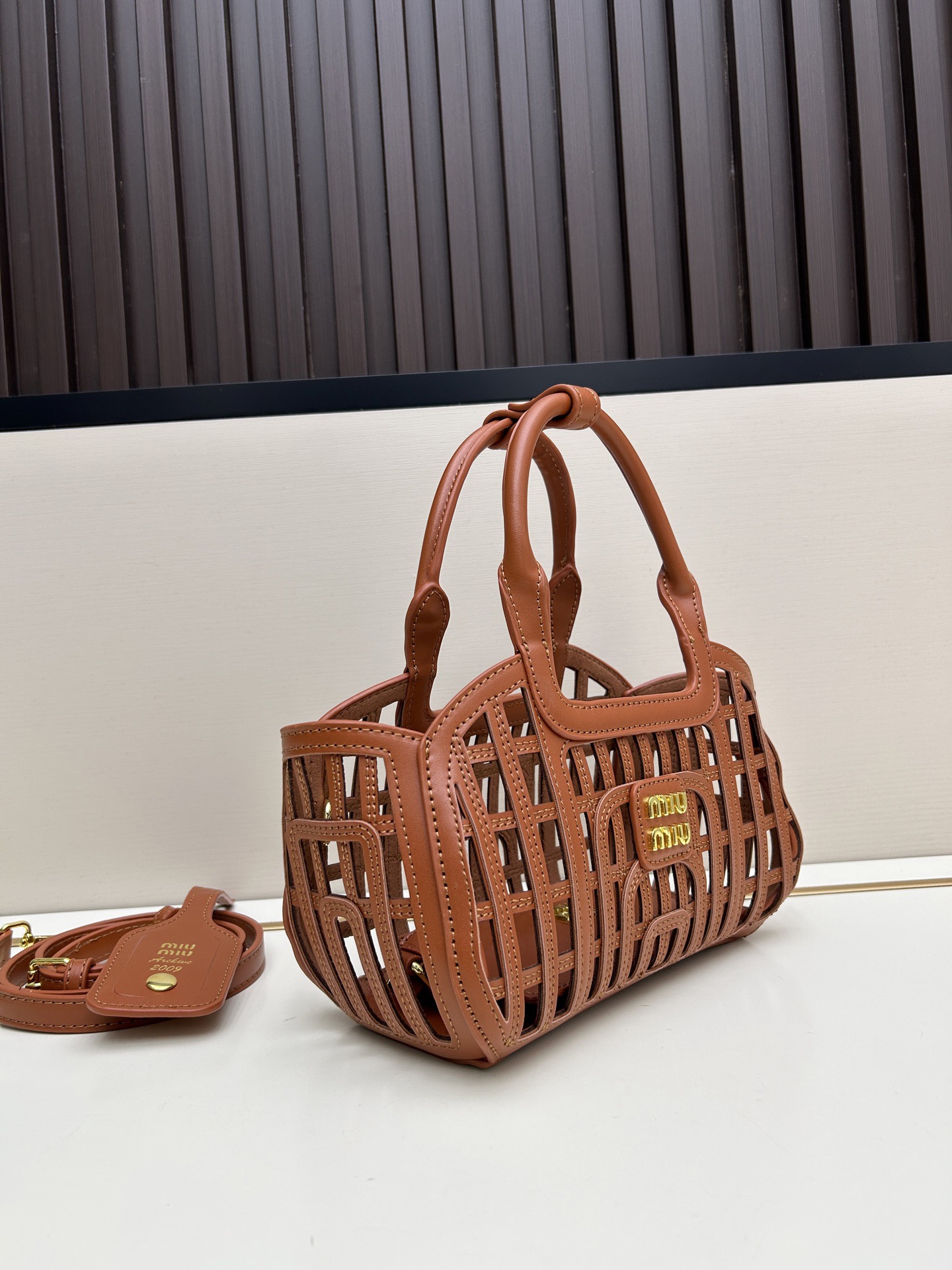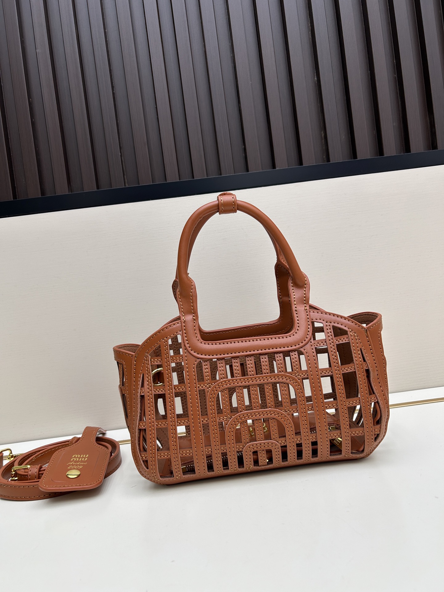 Miu Miu Brown Woven Grid Cutout Leather Tote Bag