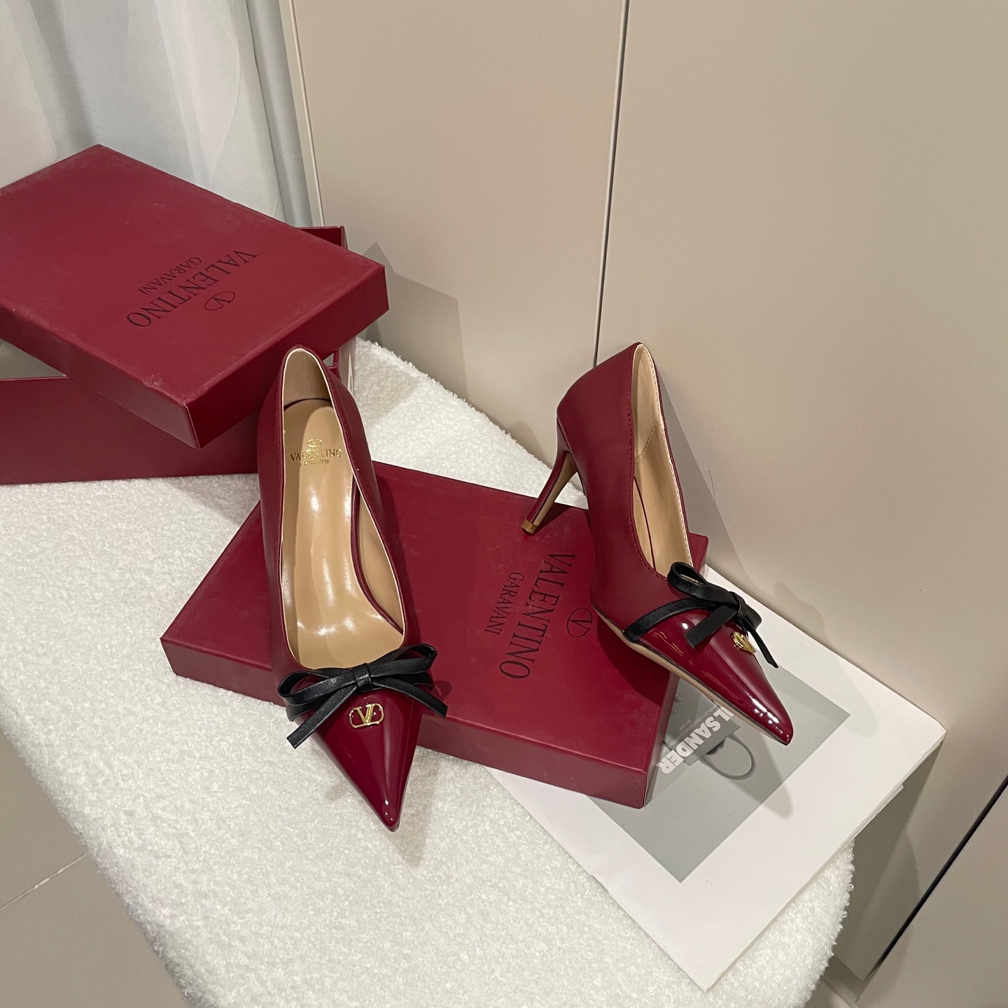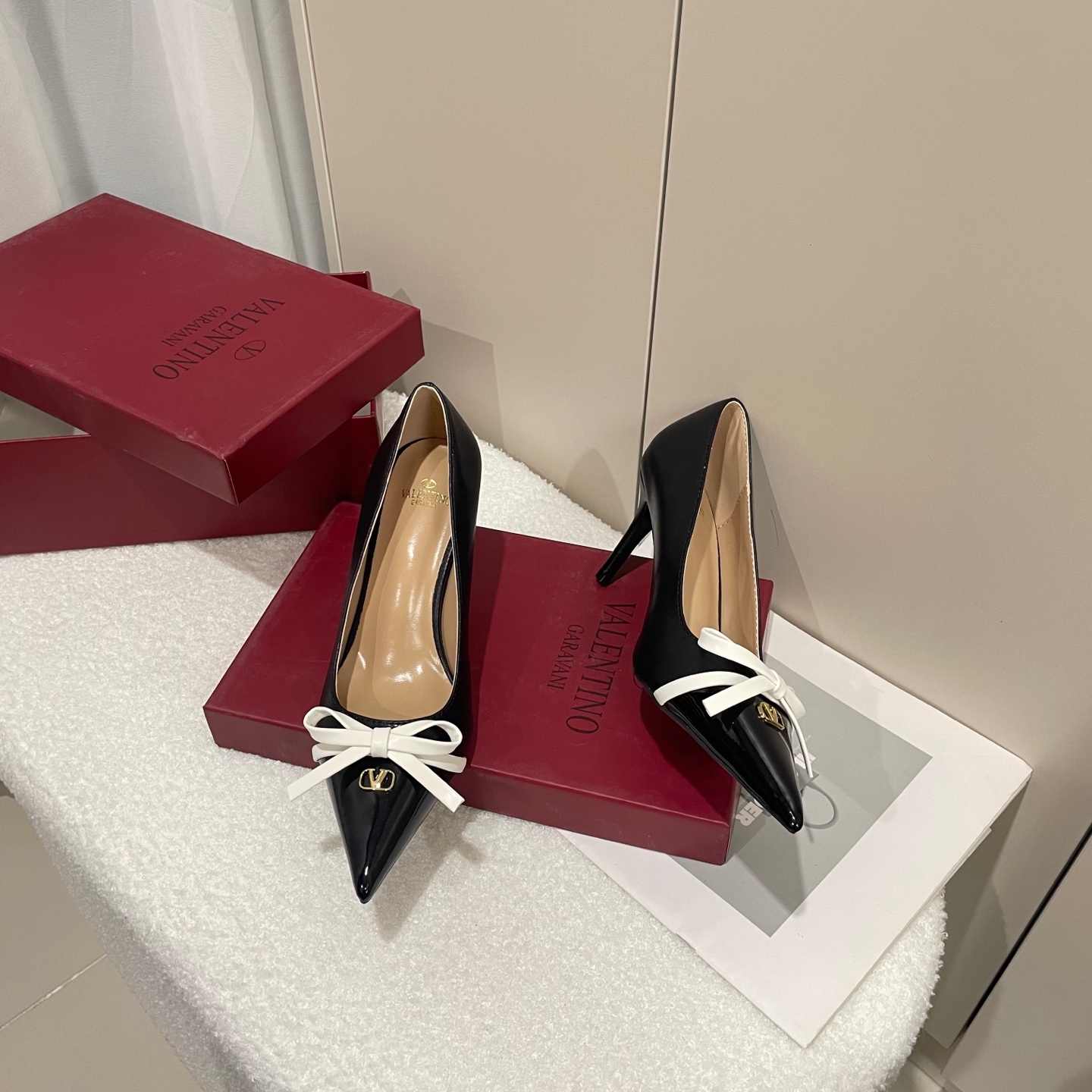 Valentino Garavani Micro VLogo Pointed Toe Contrast Bow Patent Leather Heels & Slingback Pumps