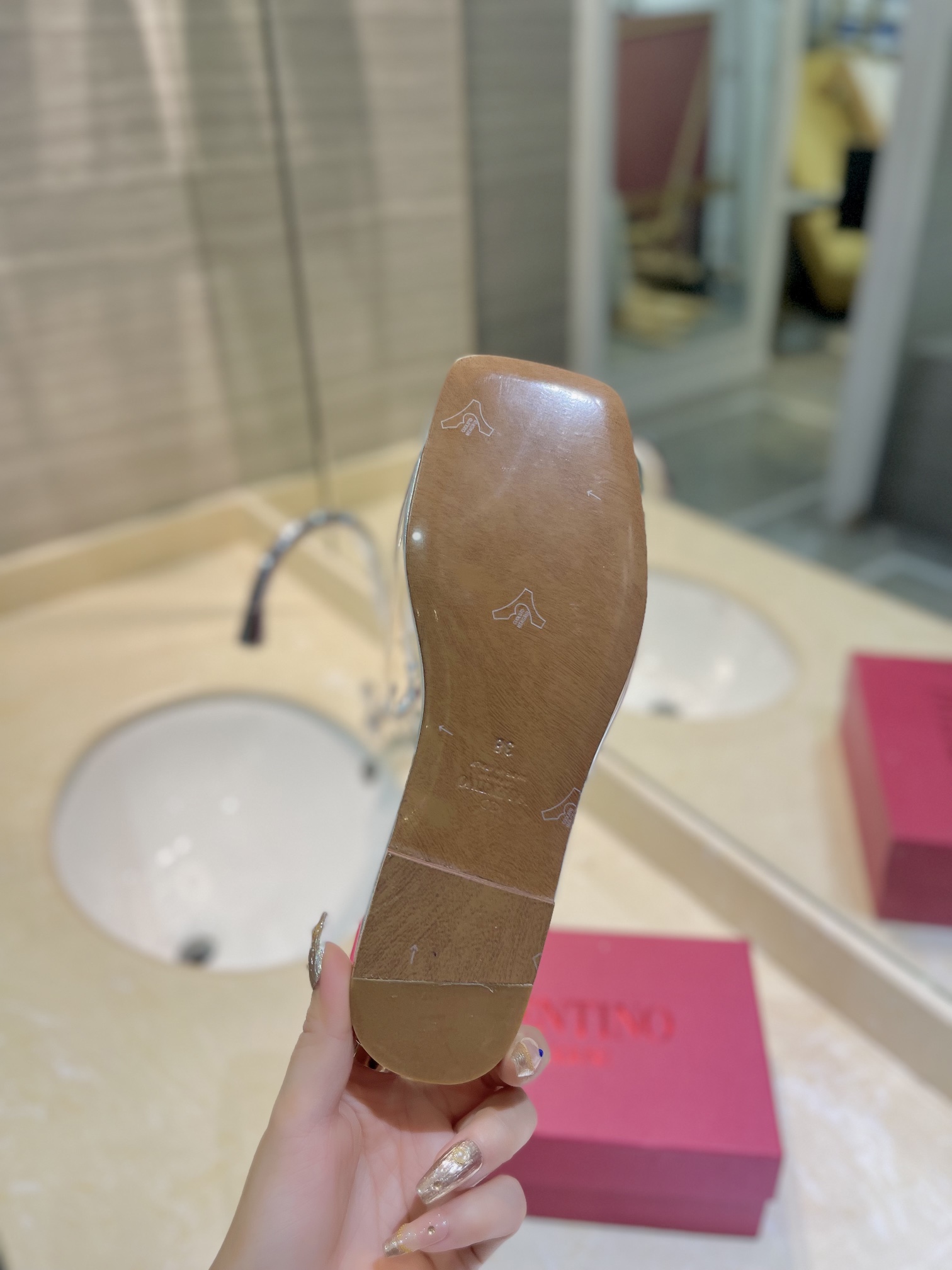 • Valentino Rockstud Spike Leather Square Crystal Stud Clear PVC Jelly Strap Square-toe Flat Slippers - KAIROO