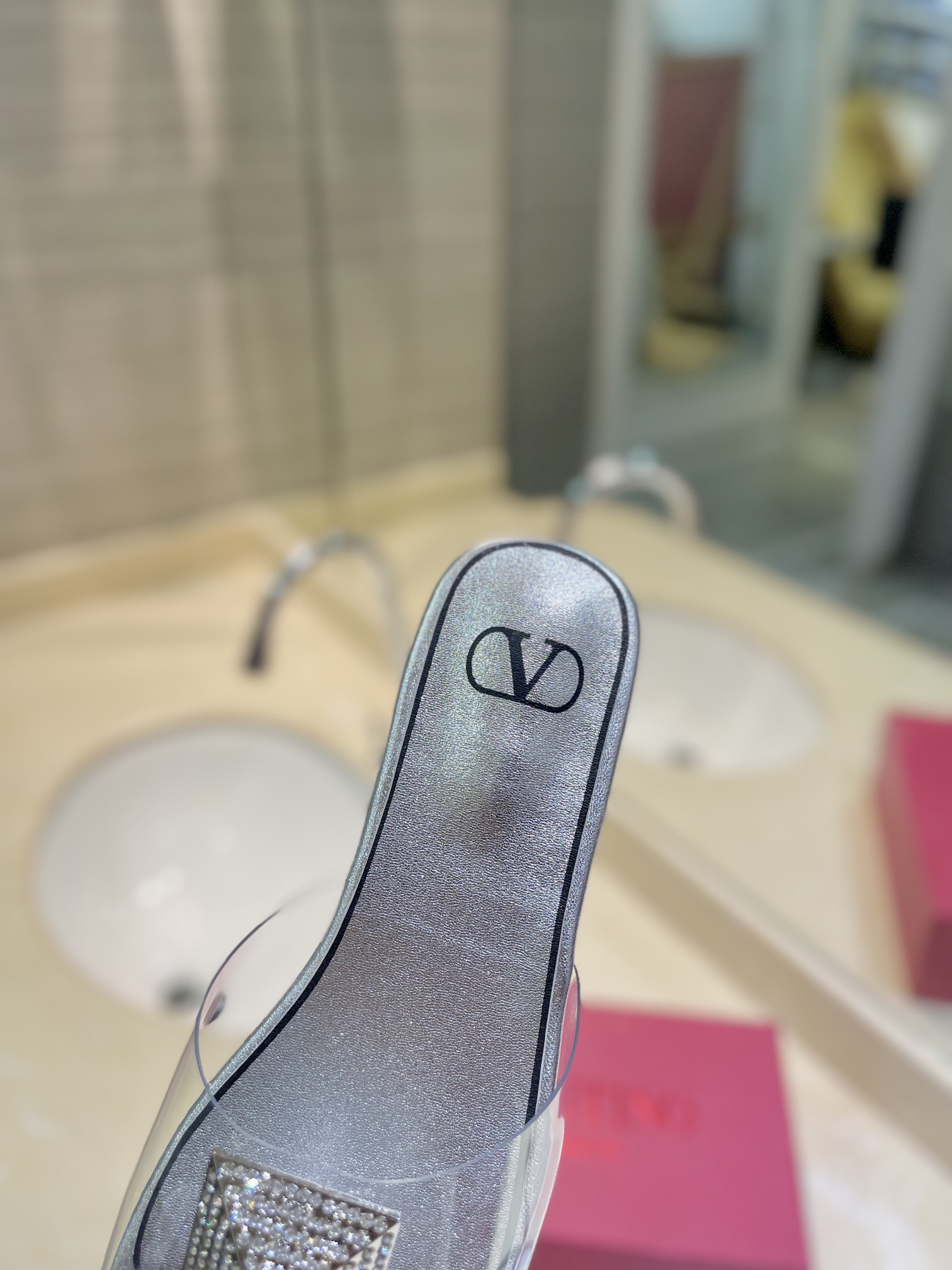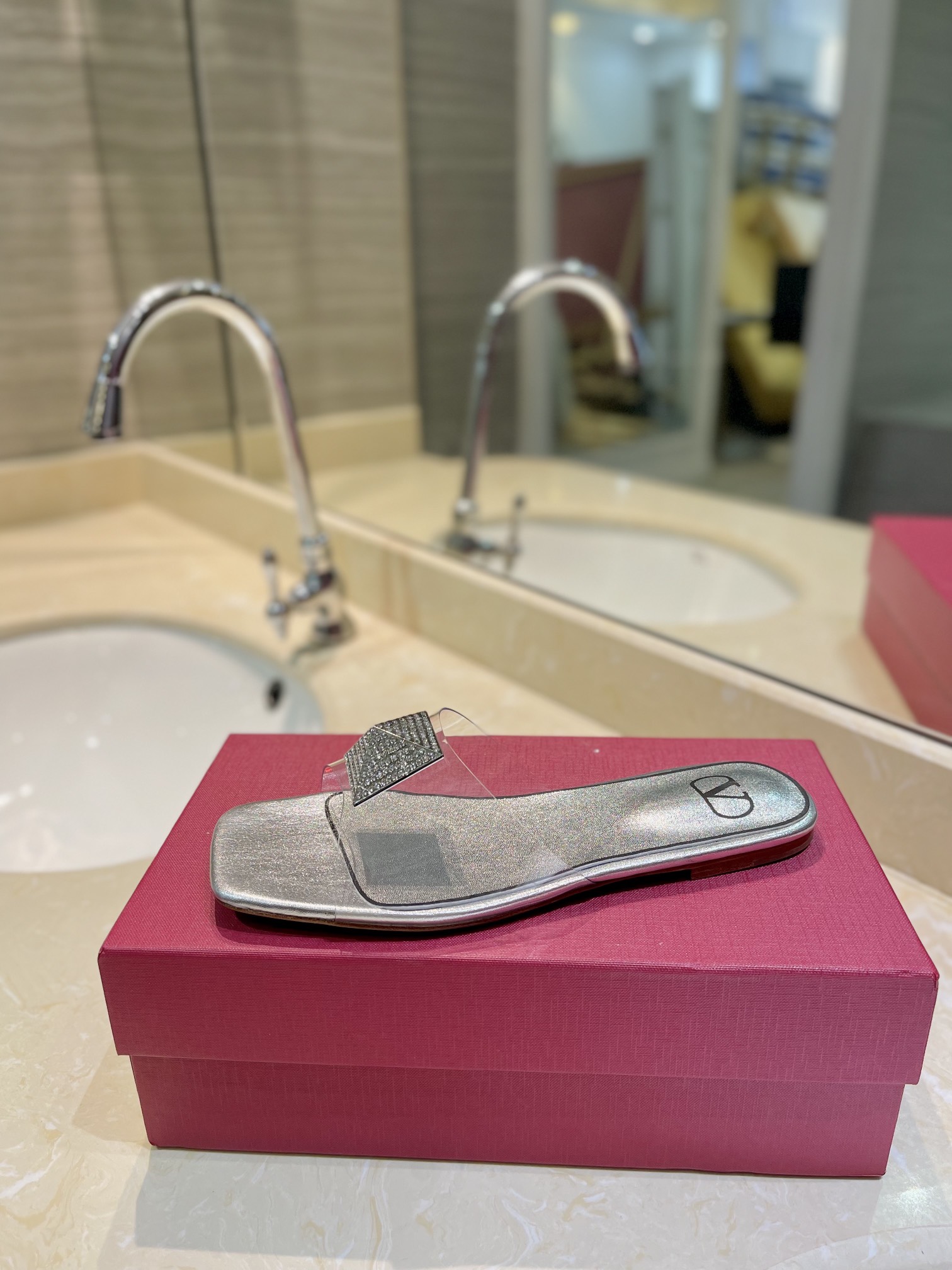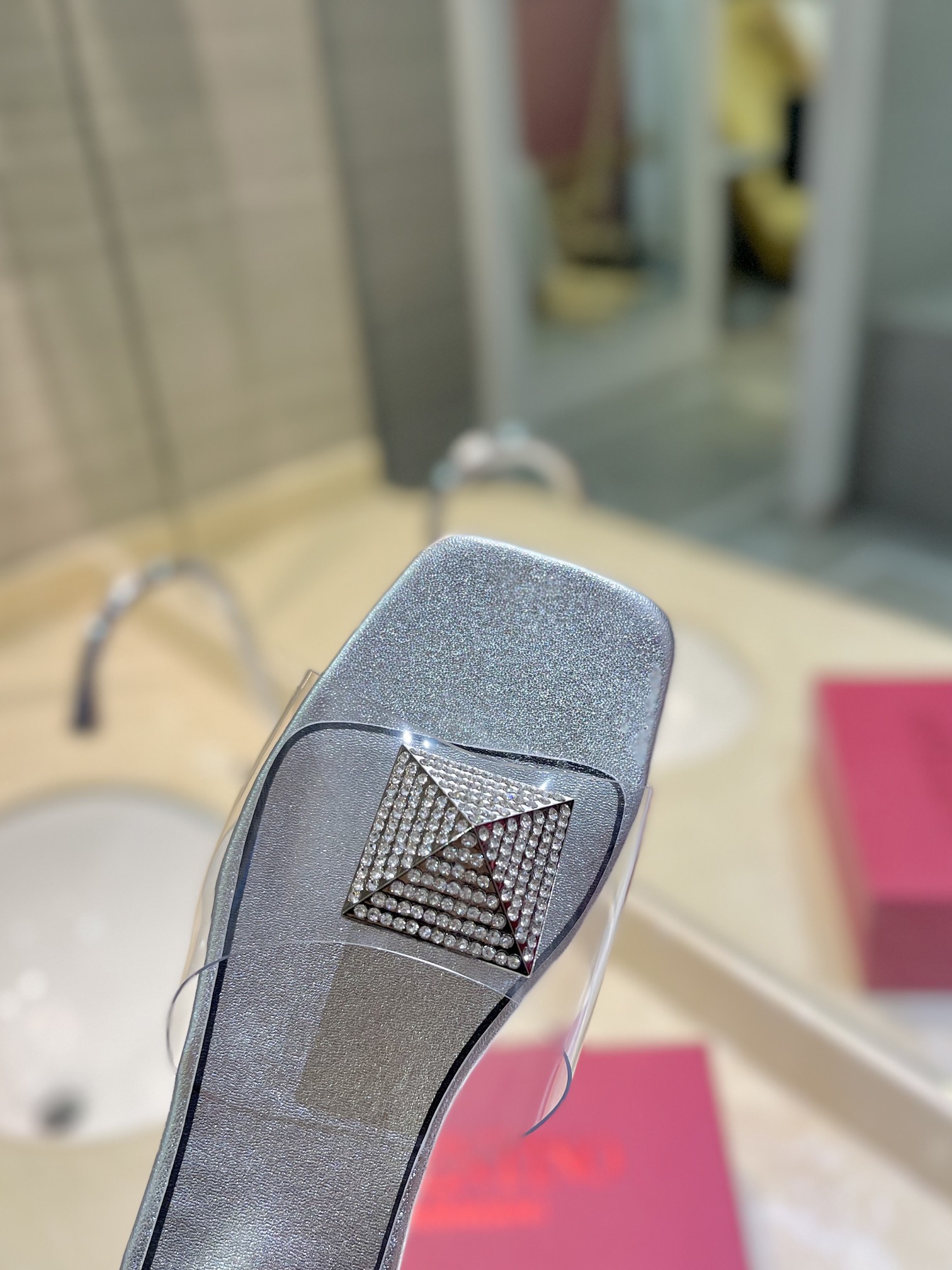 Home / Valentino Rockstud Spike Leather Square Crystal Stud Clear PVC Jelly Strap Square-toe Flat Slippers